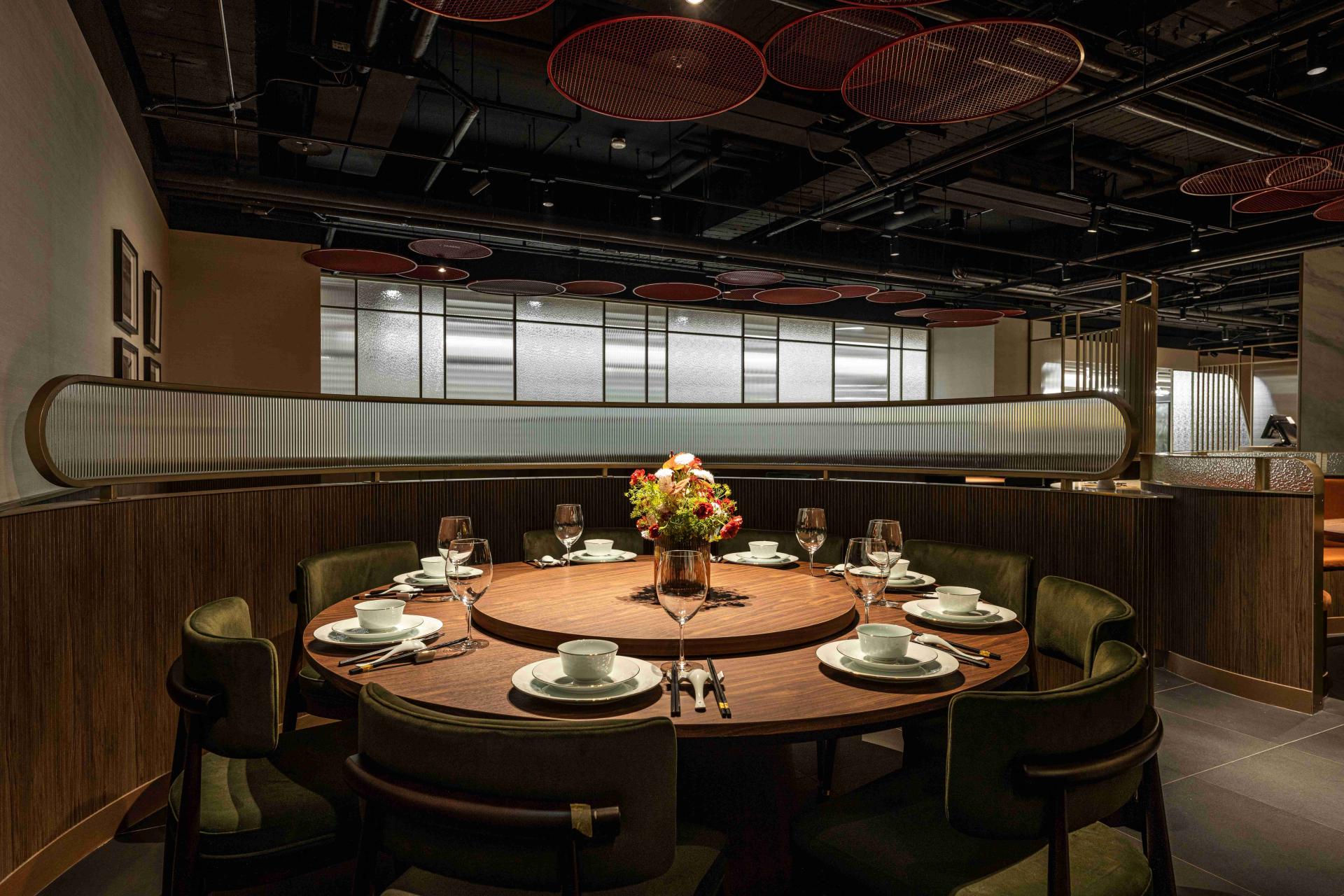 The design is a modern interpretation of the Chinese concept of "reunion" (團圓). While traditional round tables are present, the heart of the space features a serpentine arrangement of custom elliptical tables. This flowing form offers unparalleled flexibility, gracefully accommodating intimate dinners for two as well as larger family gatherings, ensuring no guest feels the awkwardness of an empty seat. The floor plan is strategically zoned, with flexible partitions and private rooms that can merge into a grand banquet hall, allowing the restaurant to adapt its scale for peak and off-peak hours without sacrificing ambiance.