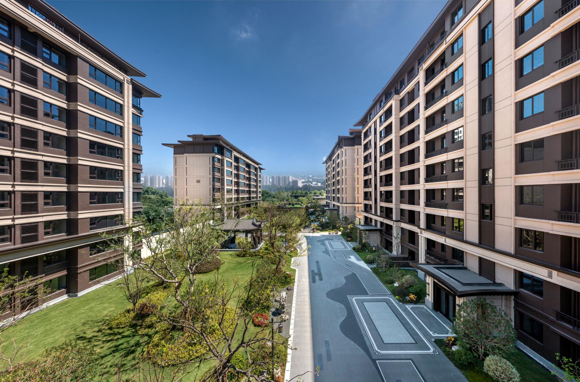The main entrance, modeled after the grandeur of the Forbidden City’s Hall of Supreme Harmony, spans approximately 40 meters in width and rises 7.3 meters in height. Passing through this monumental gateway, residents are greeted by layered garden landscapes, transforming the journey home into an elegant, soul-soothing experience.