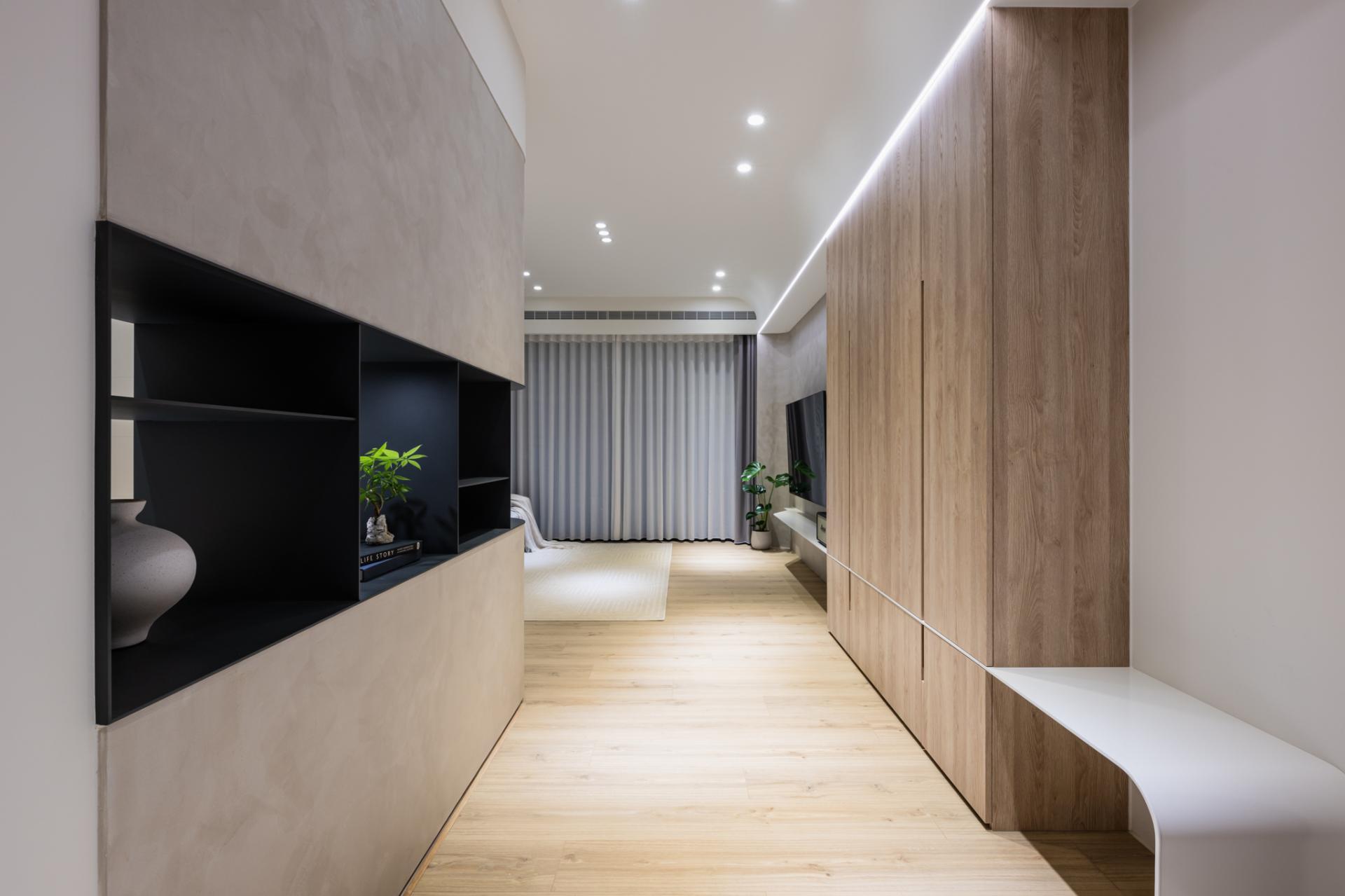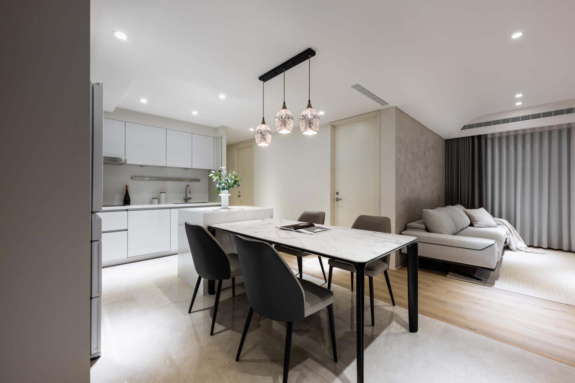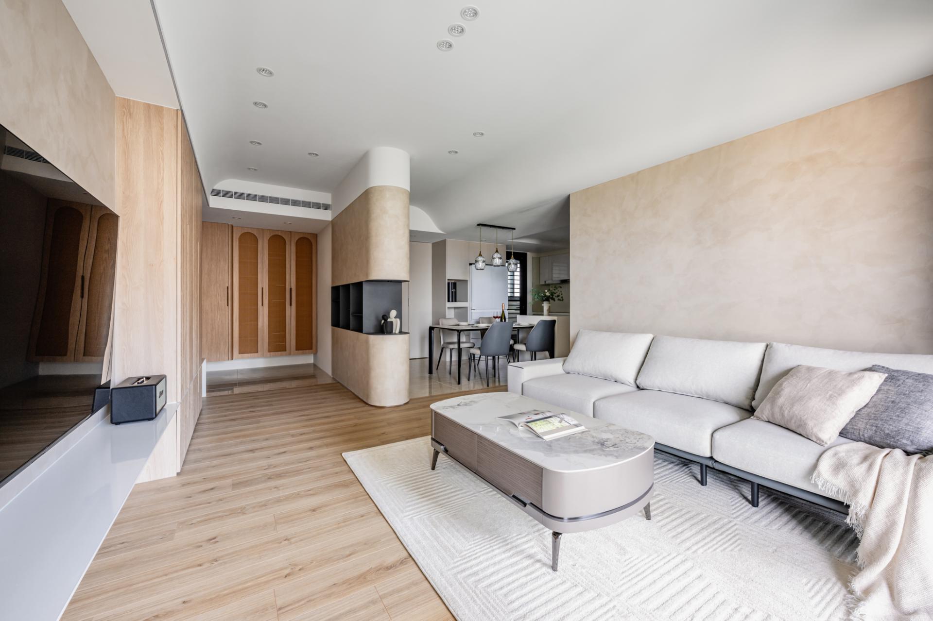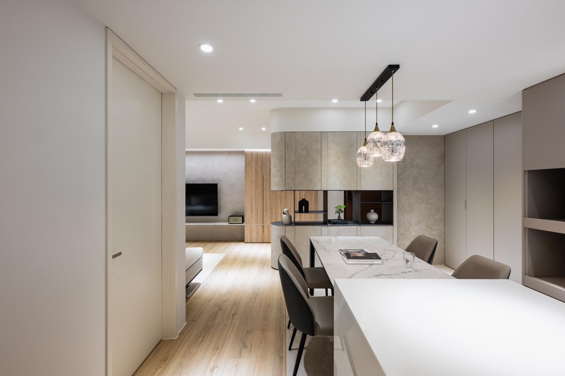 Concealed storage systems maintain visual purity, supporting calm and clarity in everyday life. Every detail—from the seamless kitchen-dining sequence to spa-inspired finishes in the bathroom—reinforces the concept of “functional softness,” where practicality is never at odds with beauty. The design is not a spectacle but a subtle choreography of light, texture, and proportion that elevates ordinary routines.