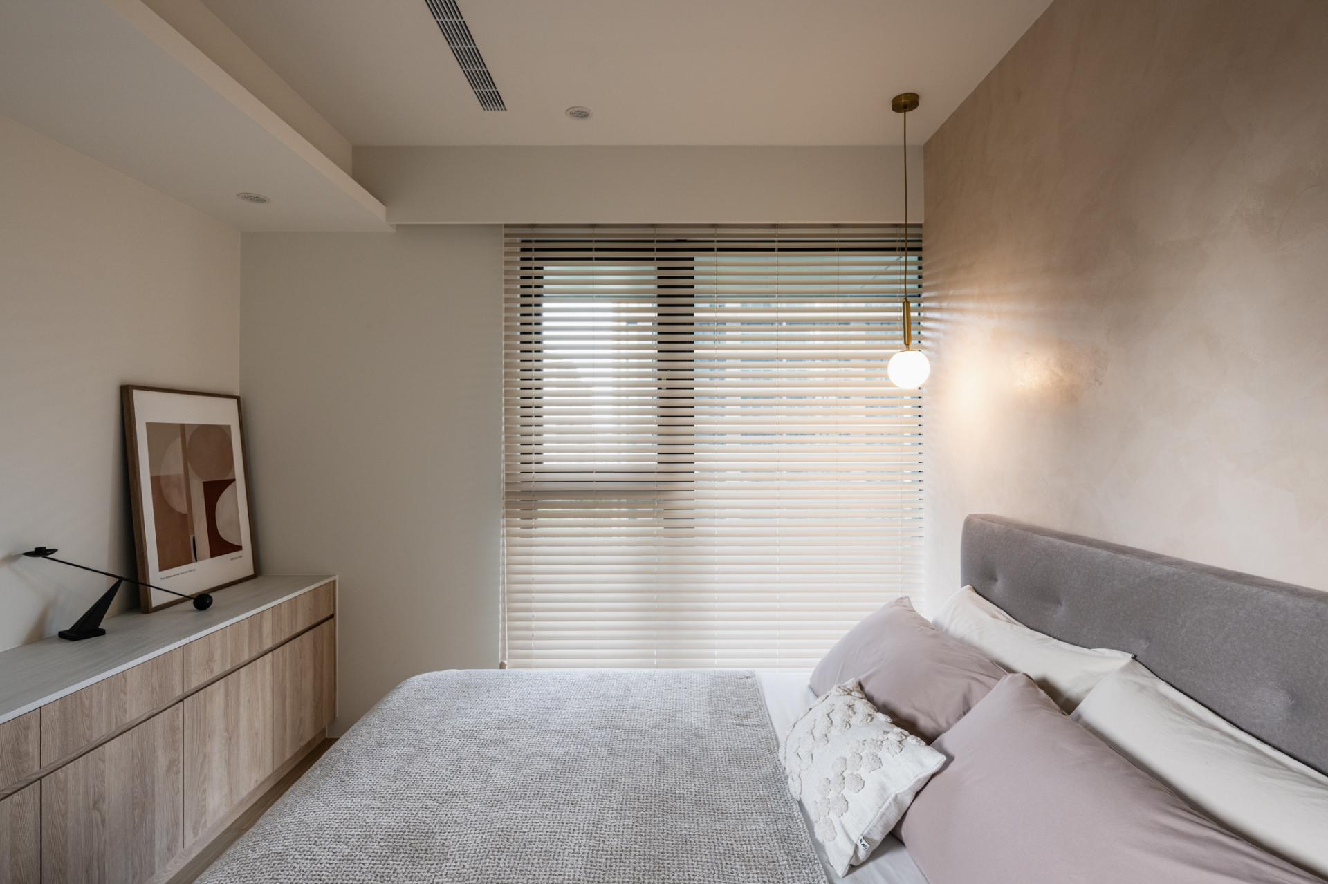 The material palette is deliberately understated, blending greige, oak, and stone into a tranquil canvas. These surfaces are animated by light: daylight filtered through sheer curtains creates a sense of openness, while ambient lighting at night transforms the home into an intimate retreat. Light thus becomes both a practical tool and an emotional medium.