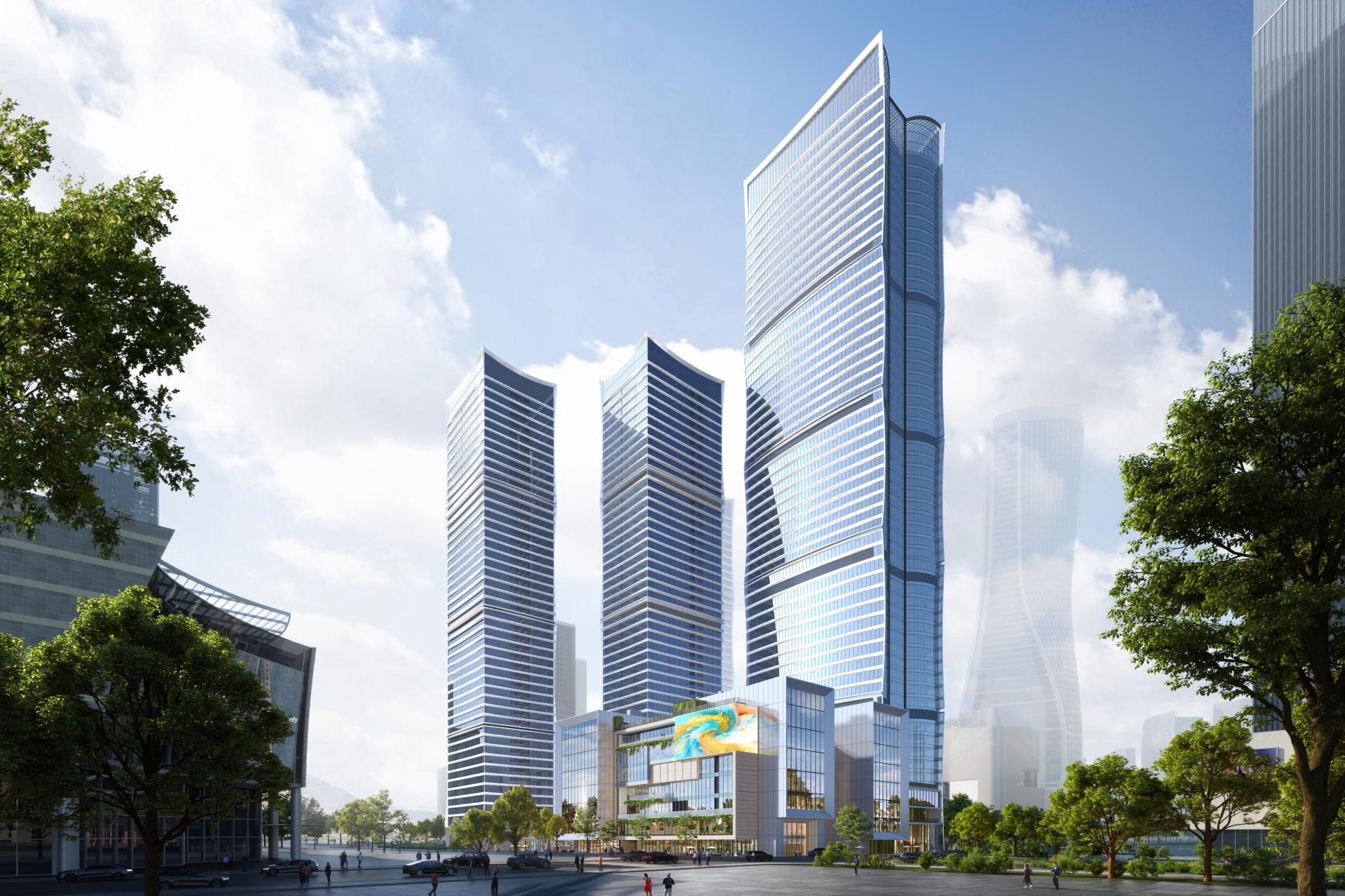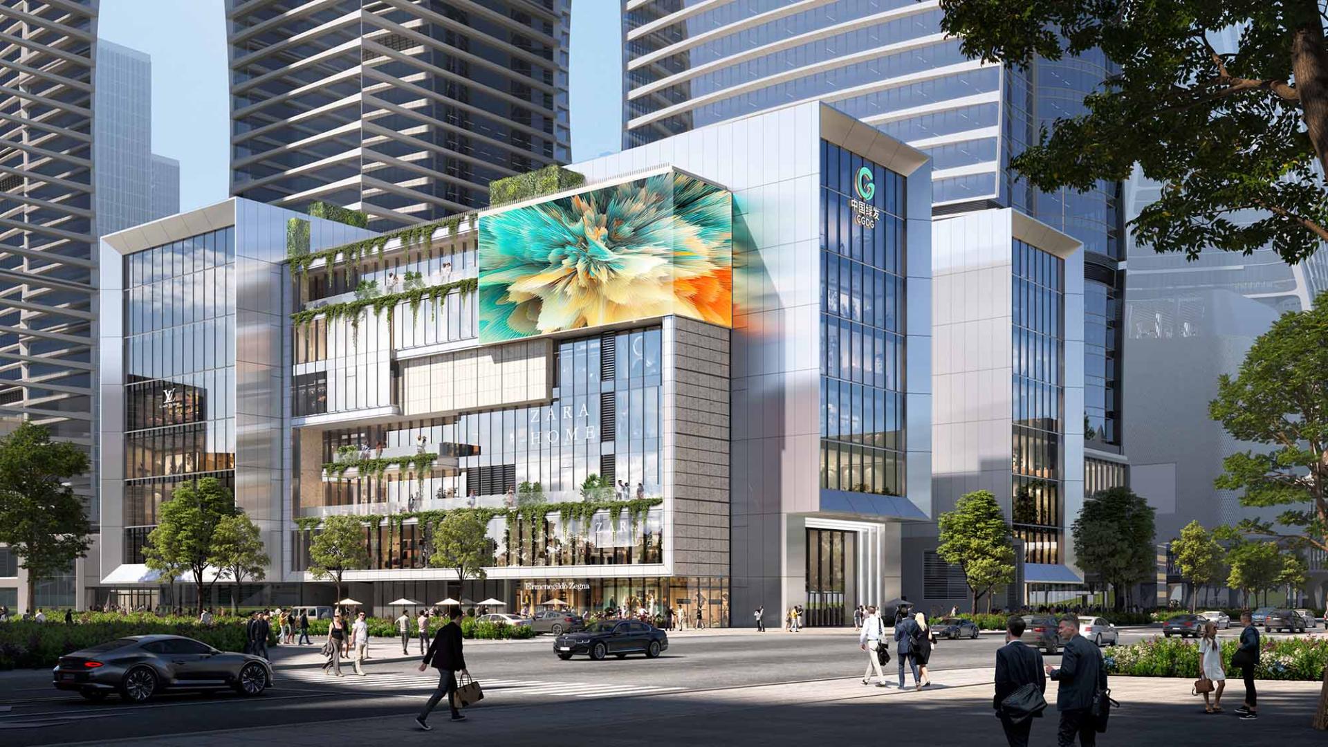The development features three residential towers, each approximately 190 meters tall, a 250-meter office tower, a retail podium with a shopping mall, and vibrant street-level retail spaces. Together, these elements create a dynamic urban complex that not only enhances the vitality of the CBD but also anchors it with a distinct identity.