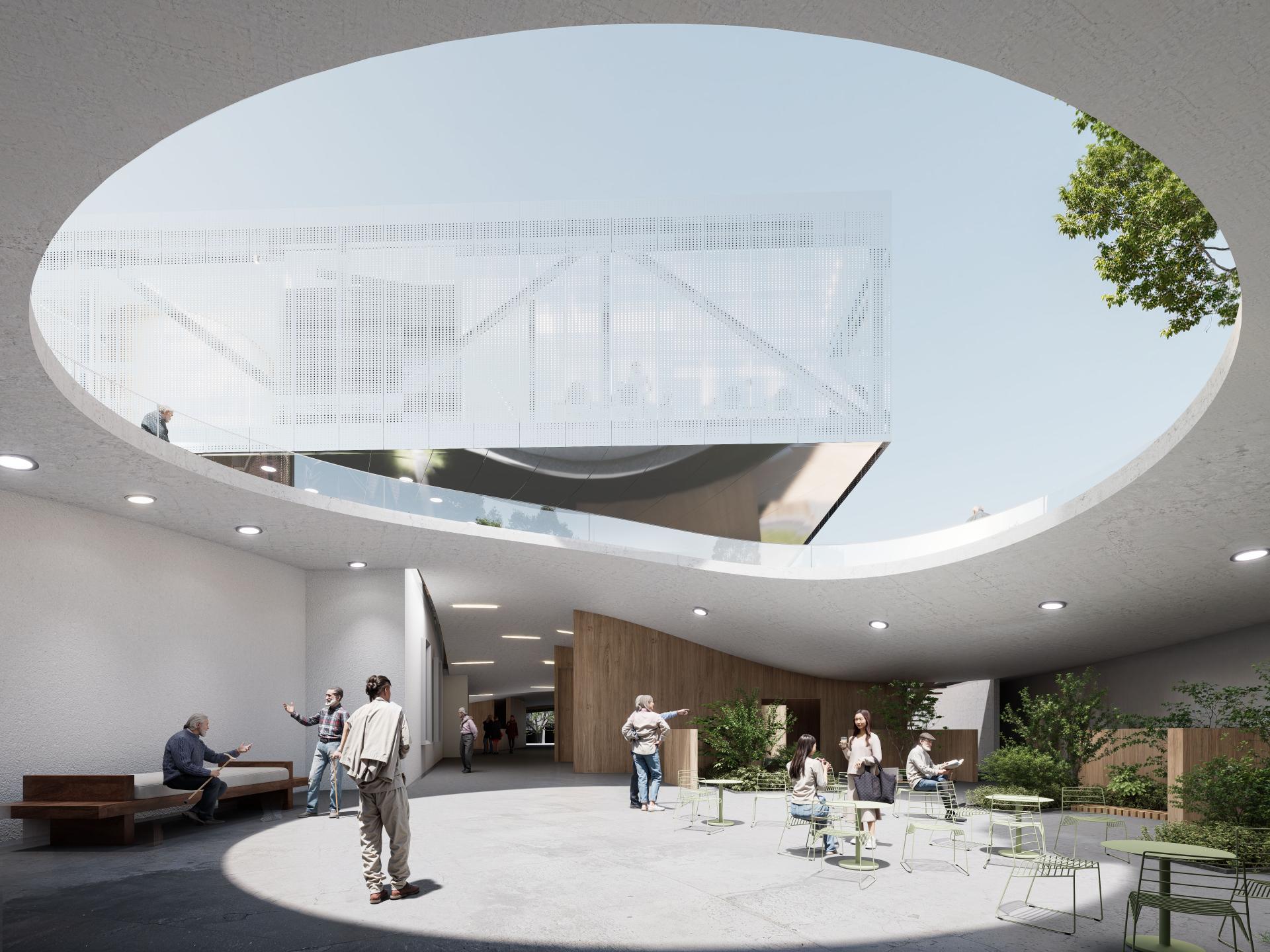 Generous openings are carved into the building’s shell, drawing daylight and fresh air deep into the interiors while framing outward views of the surrounding city. Through this calibrated porosity, the architecture becomes both container and connector — reflective of history yet animated by contemporary life. The result is a civic landmark that is at once solemn and active, where memory, culture, and community converge in a single architectural gesture.