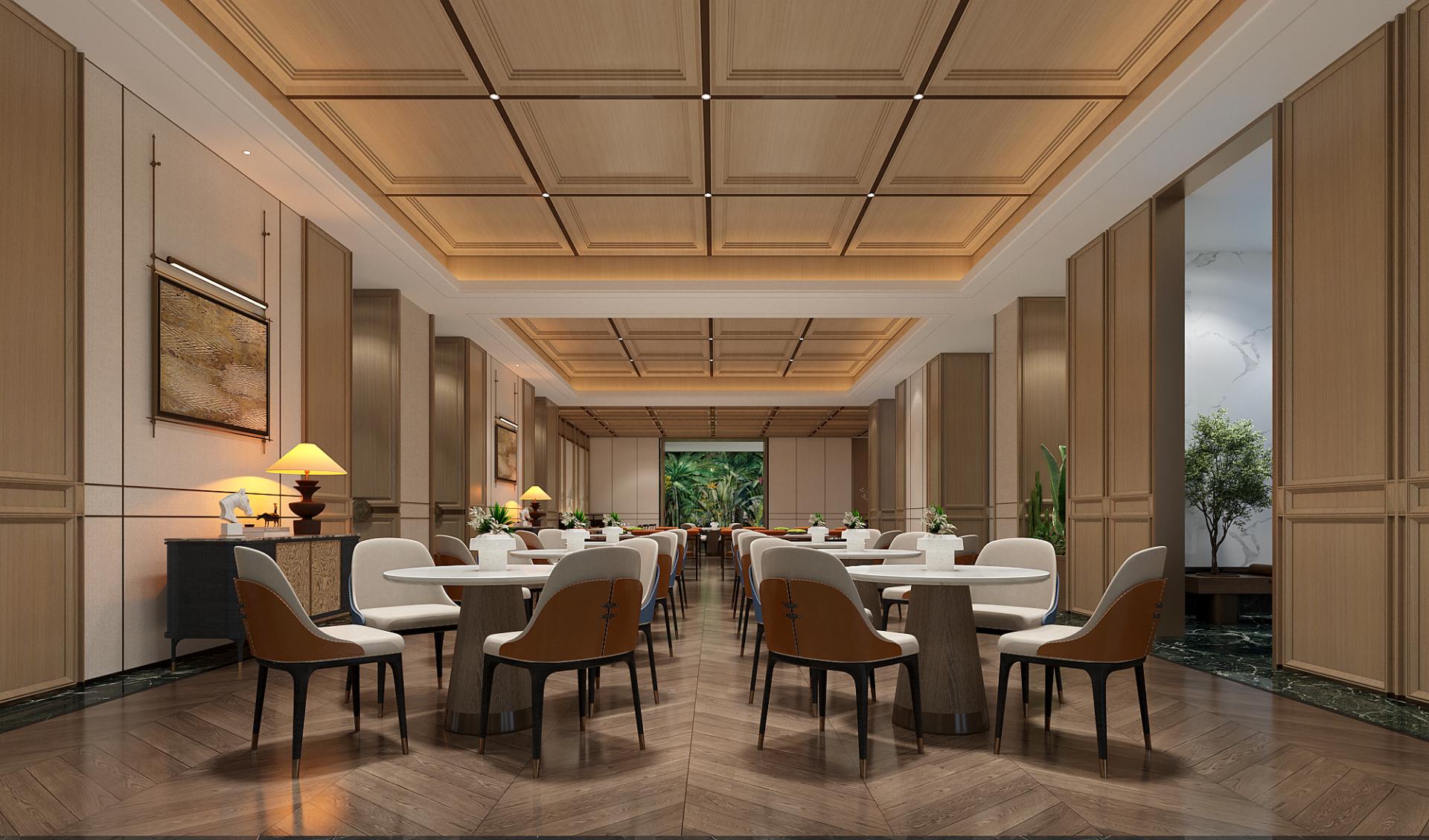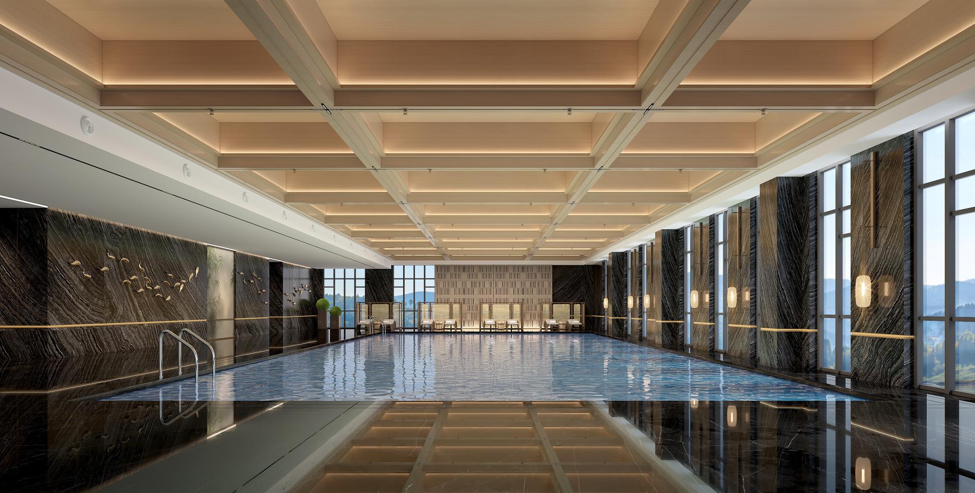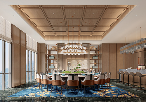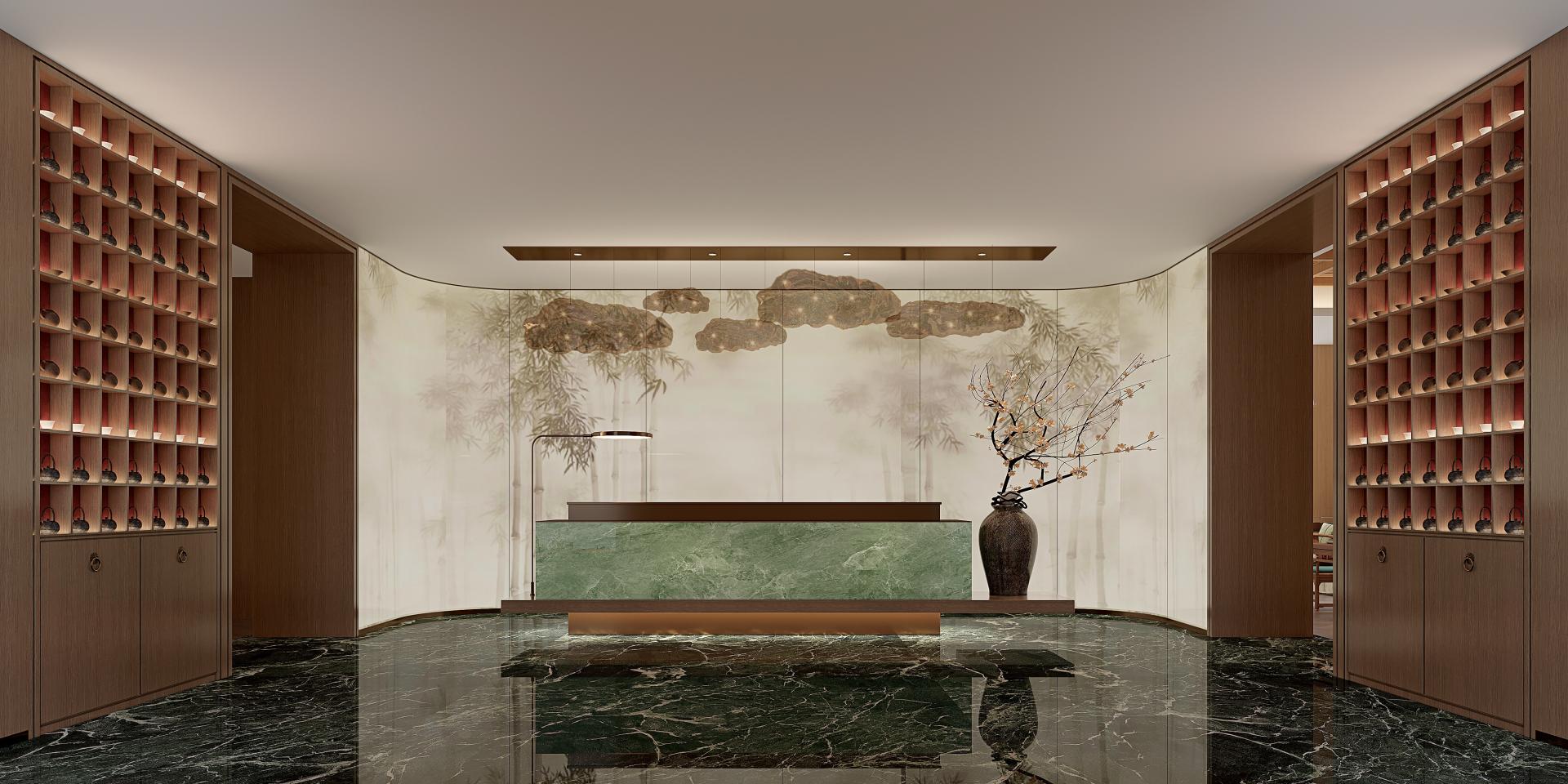 Each functional area reflects a distinct cultural identity. The lobby showcases galloping horse reliefs and a dome inspired by ancient wooden architecture, evoking Shuozhou’s vigor and legacy. The banquet hall incorporates standing-collar and double-breasted clothing elements from traditional Jin merchant attire, symbolizing elegance and refinement. Dining and reception areas feature soft color palettes and delicate furnishings, creating an atmosphere of understated sophistication, while the spa adopts white stone and greenery to deliver a natural oasis of relaxation.