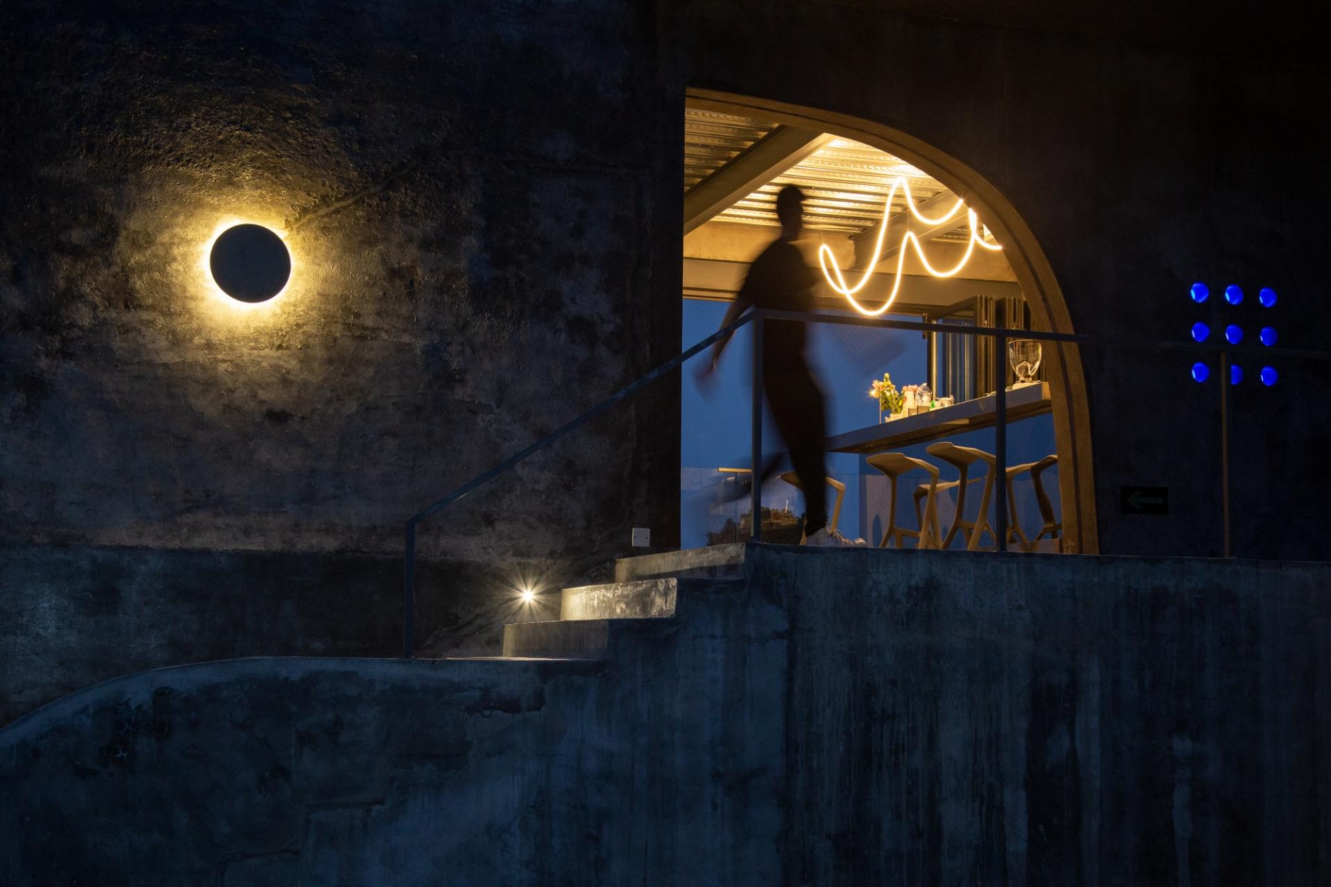 Local construction skills, available materials, and tight budgets kept the structure simple: more design delibera-tion, fewer building demands. The finish is deliberately rough; the atmosphere, hushed and solitary.