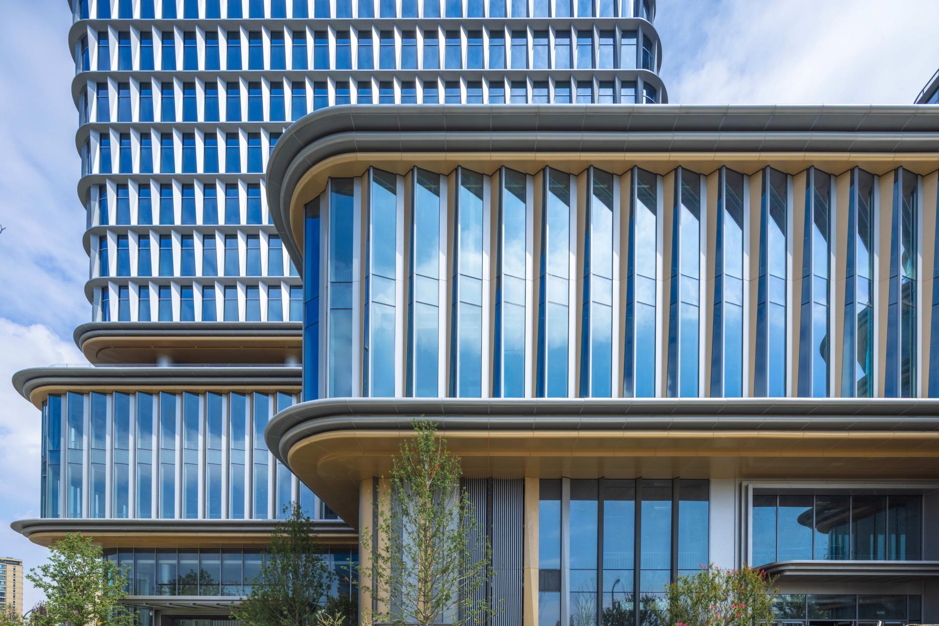 In sustainability, ventilated façades optimize airflow to reduce energy use, photovoltaic panels harvest solar energy, and flexible office layouts adapt to evolving needs. Material applications such as anodized aluminum façades and patented modular curtain wall systems enhance durability, efficiency, and aesthetic distinction.