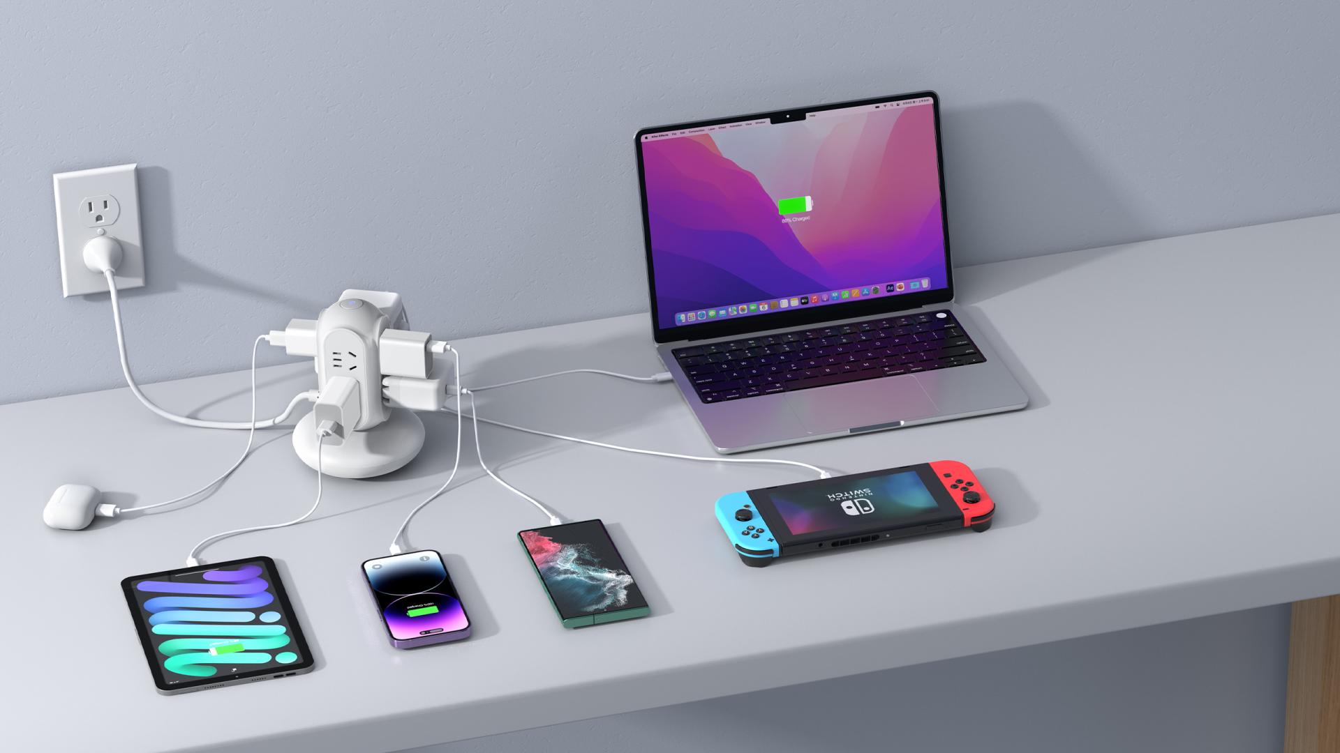 Ergonomic Design: The vertical sockets align with the natural trajectory of hand force, making plugging and unplugging more effortless. The vertical structure saves up to 50% of desktop space and remains neat even when fully occupied, delivering an experience that is effortless, safe, and tidy.