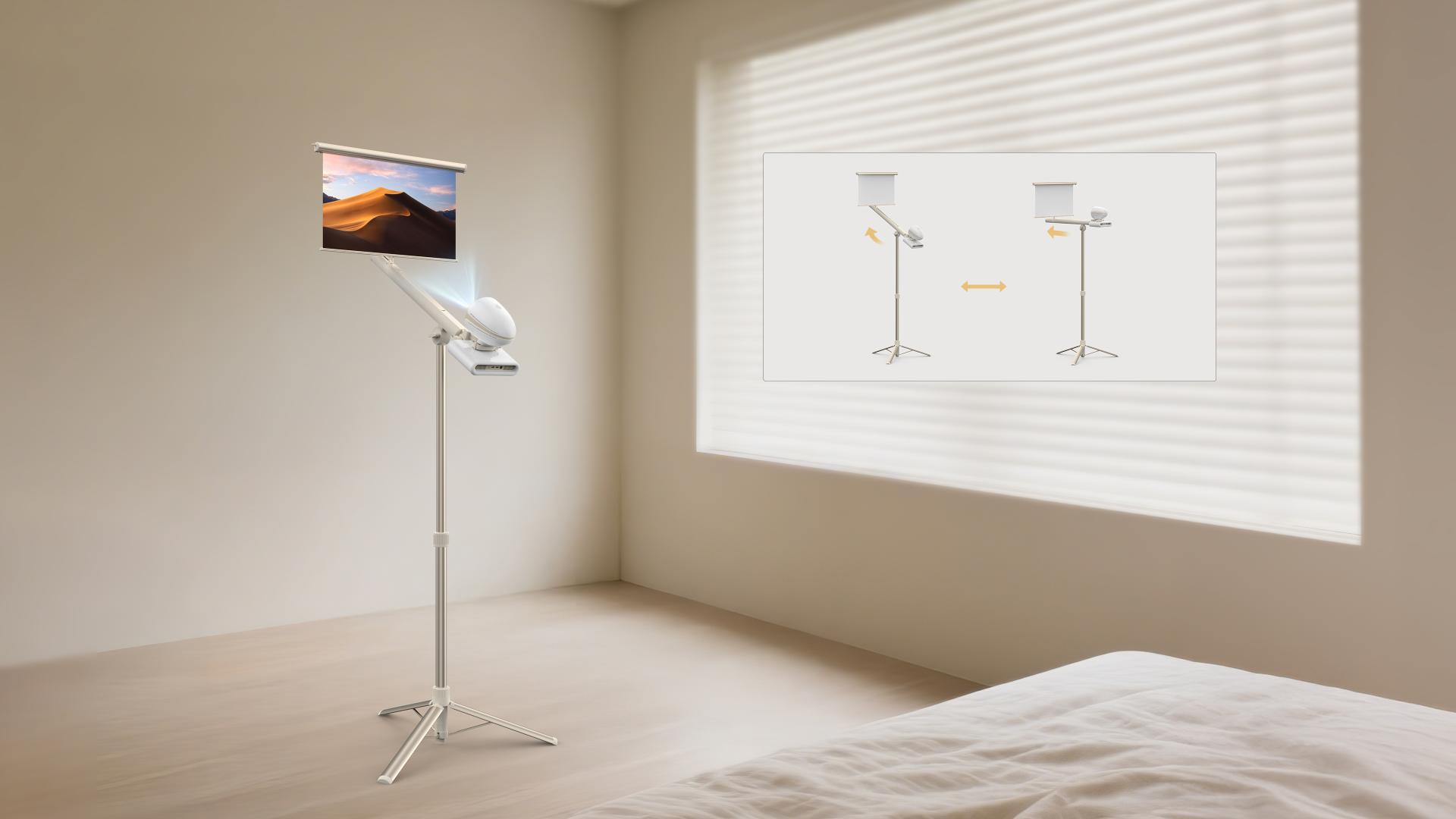 Flamingo is a revolutionary portable and smart projector featuring a split-body modular design that separates the heat-generating light engine from the mainboard. Equipped with a stand that has a built-in, retractable screen, it solves the classic trade-off between performance and thermal management. Offering flexible projection from 0.5 to 3 meters, it is ideal for diverse settings like bedrooms, the outdoors, and offices, delivering an out-of-the-box, large-screen experience that redefines the freedom of mobile projection. Flamingo's design is inspired by the "engineering aesthetics of vehicles," emphasizing a visual language of speed, precision, and stability. The upper light engine module draws from the streamlined form of high-performance motorcycle headlights, its multi-curved surface conveying efficiency and optical precision. The lower mainboard module references the "racetrack-oval" cross-section of a racing tire, projecting a sense of stability while cleverly concealing the cooling vents. Adhering to minimalist principles, the design eliminates all redundant lines, integrating the air inlet, speaker, and control panel into a single rear unit. The air outlet is unified with the front grille, achieving a highly integrated and clean aesthetic. Compared to conventional products, Flamingo achieves breakthroughs in three key dimensions: Structural Breakthrough: While traditional projectors use unibody cylindrical or boxy designs with concentrated heat, Flamingo pioneers a "split-body, floating light engine" structure that is both visually unique and thermally efficient. Thermal Breakthrough: Moving beyond the limited single-channel cooling of traditional models, Flamingo uses an innovative "dual-channel cooling system" with separate airflow for the light engine and mainboard, boosting brightness stability by 30%. Portability Breakthrough: Where traditional products require carrying a separate screen and stand, Flamingo integrates a 27-inch screen into its stand, offering true all-in-one portability and significantly reducing the gear needed for outdoor adventures. Flamingo’s design showcases breakthrough thinking in its user-focused details: Dynamic Tilting Hinge: An industry-first feature allowing to fine-adjust the light engine from -5° to +15°. This enables screen leveling in just 3 seconds on uneven surfaces, with no propping up required. The grooved design also serves as a comfortable, ergonomic grip.