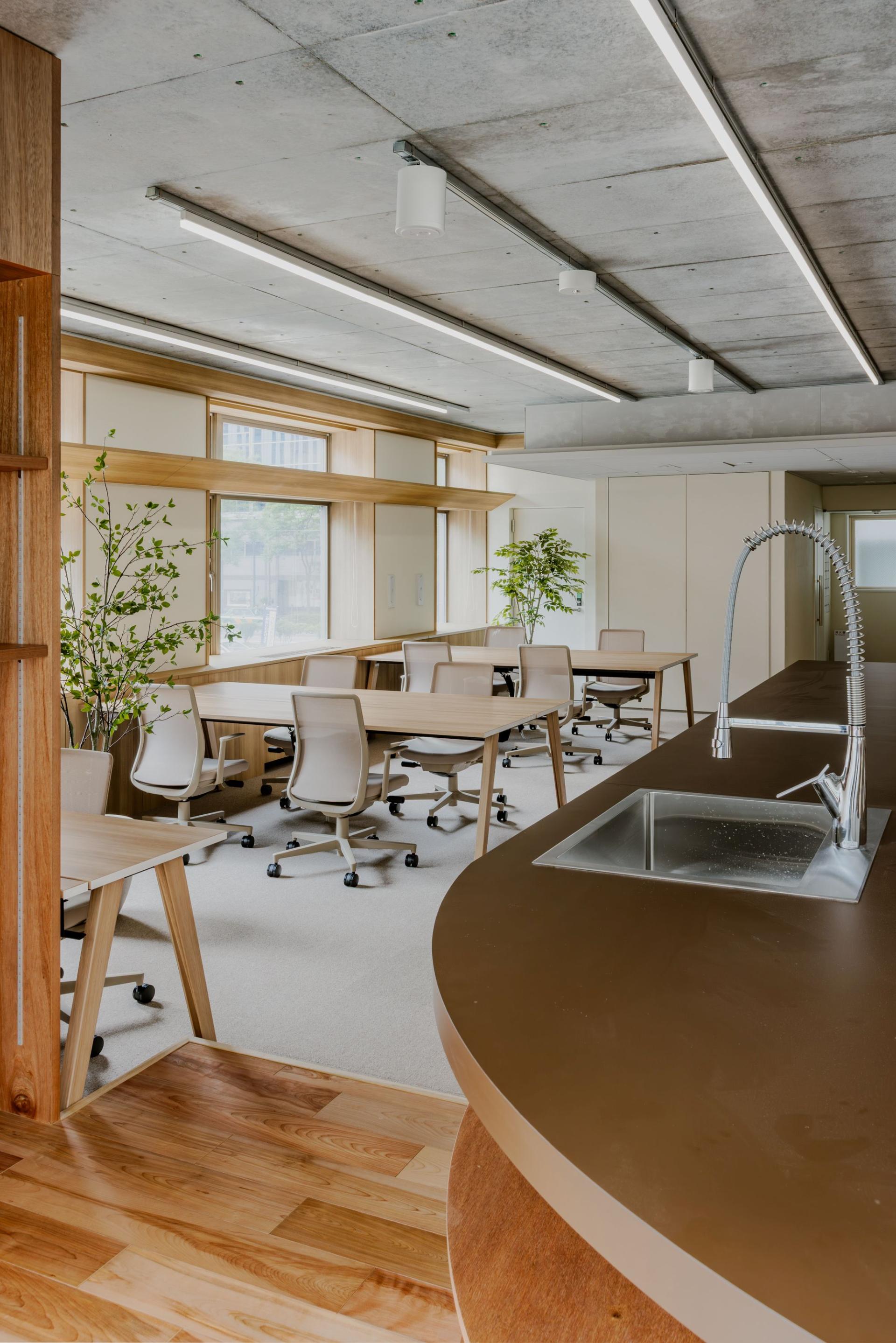 At the heart of this project lies the philosophy of “Office as a Home.” It is a proposal for a next-generation compact office by a Japanese homebuilder. An office that offers the comfort of a home, and a home that functions like an office. A space that embraces everything: living, working, conversing, eating, and resting. We have realized this space in the heart of the city.