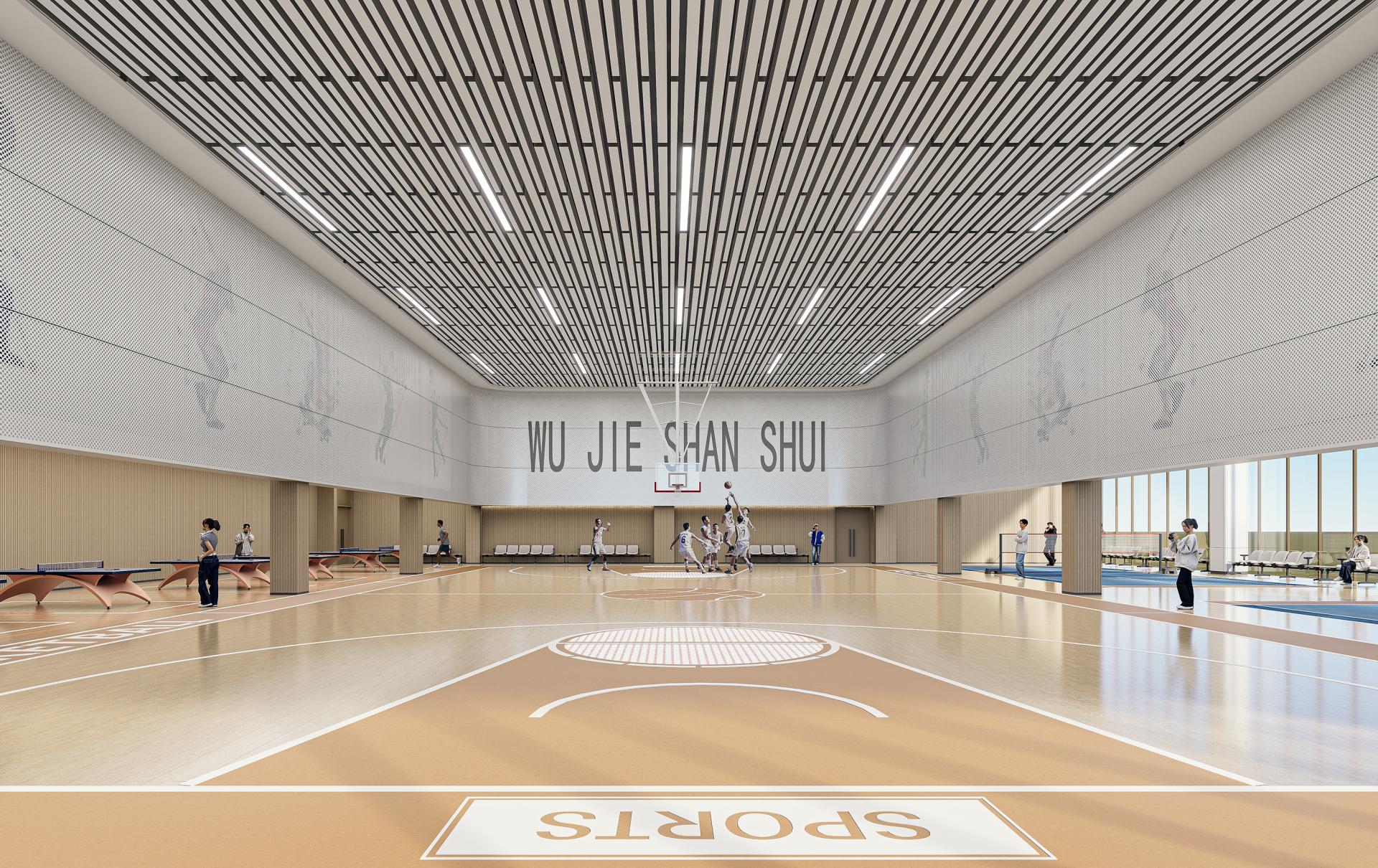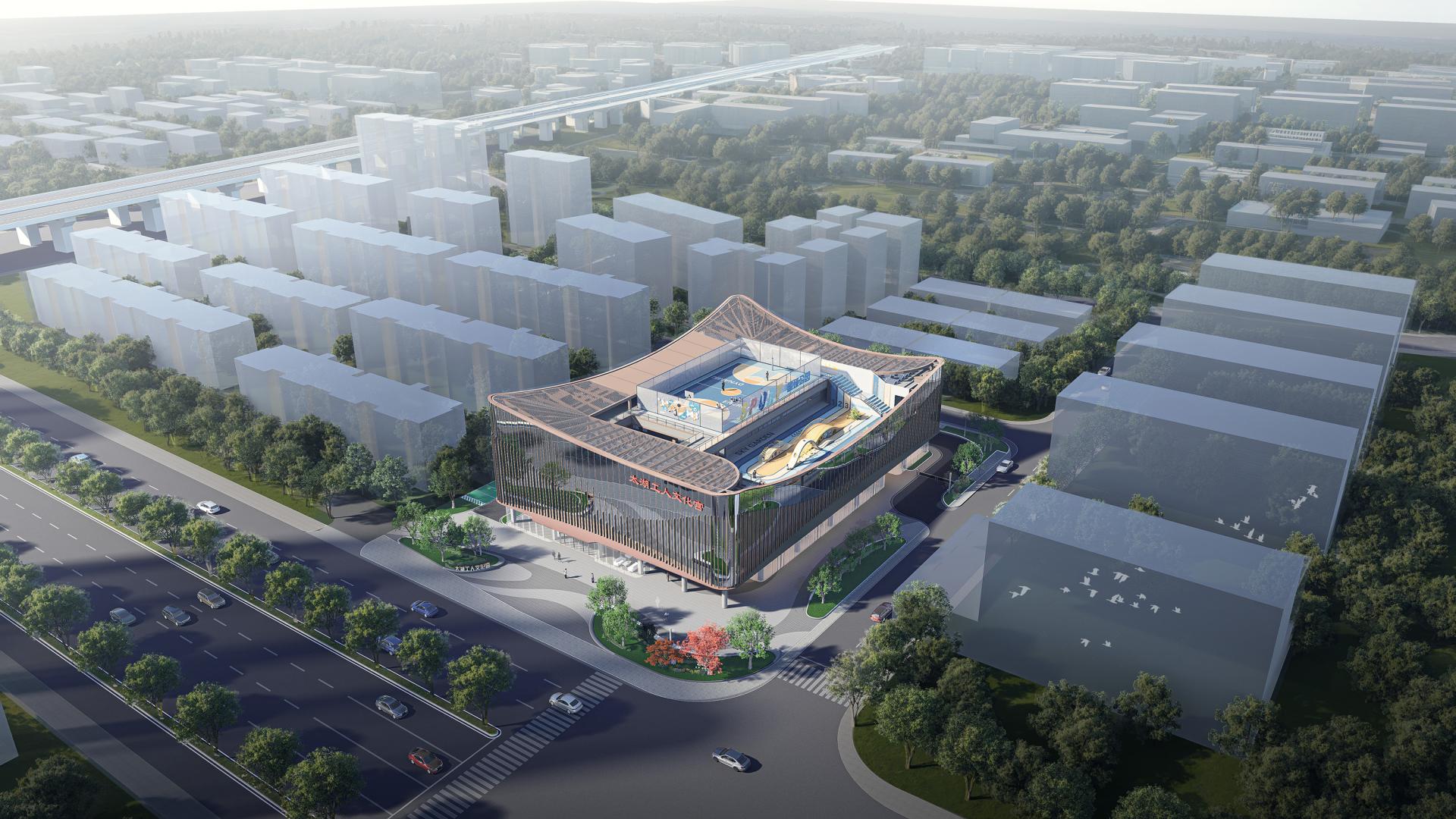 The design adopts a "multi-venue integration" strategy, fundamentally breaking away from the traditional, monotonous, and enclosed functional layout of conventional Workers' Cultural Palaces. By introducing natural light and sightlines through courtyards and skylights, commercial spaces, exhibition halls, sports venues, and educational offices are organically integrated into an interconnected complex. Spatial boundaries are intentionally blurred, allowing flexible conversion of venue functions and forming a vertically interwoven experience of intertwined sightlines and interpenetrating activities. Rather than being confined to a single space, citizens can view exhibitions while engaging in sports or immerse themselves in commercial vibrancy during breaks from training, thereby redefining an open, interactive, and ever-refreshing urban cultural living room.