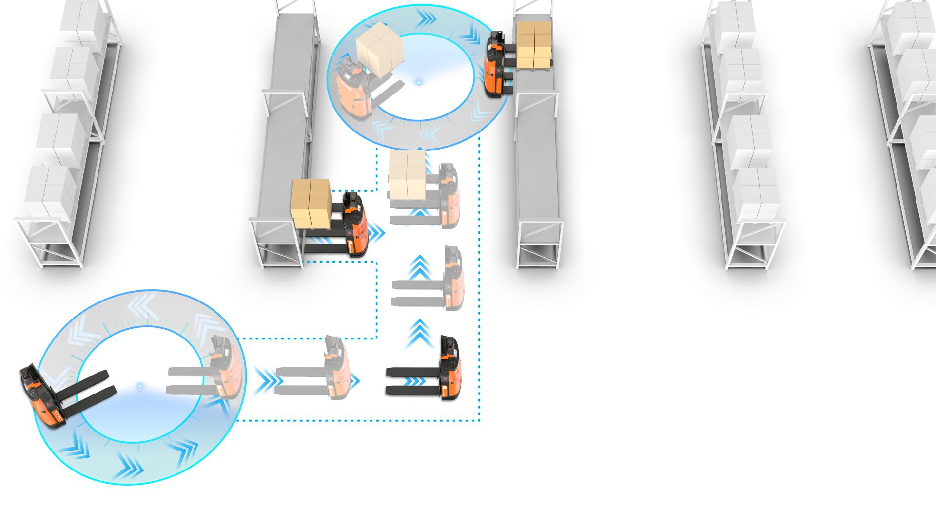 F5 IGV is designed for fast and safe stacking and transportation of goods. It features 360° omnidirectional movement capability, requires a minimum aisle width of only 2,037mm, and offers positioning accuracy of less than 5mm, making it suitable for operations in narrow spaces. Equipped with 360° laser obstacle avoidance, safety bumpers, and real-time obstacle circumvention, it provides a comprehensive safety protection mechanism. Combined with intelligent pallet recognition, 5G communication, and multi-vehicle coordinated scheduling, it delivers a safe and reliable intelligent logistics solution for users.