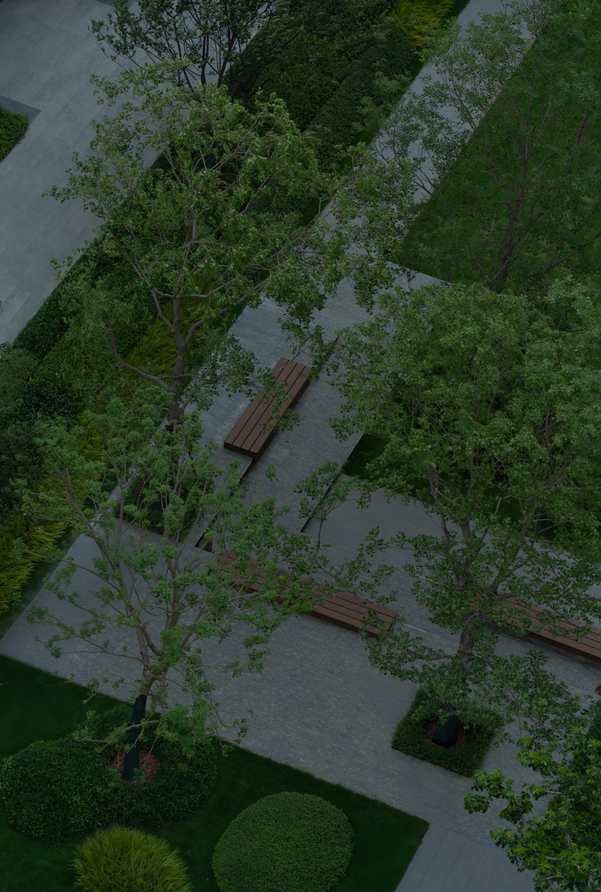 The project is located in the high-speed rail new city in the southern part of the city center, in the core area of the city, and is a model for the integration of industry and city in the future area. Adjacent to parks, with superior natural resources, mature urban facilities, and high-quality educational resources, with key school districts nearby; At the same time, Jinjiang has a long history and prosperous culture, known as the hometown of the famous top scholars and prime ministers in history, with the reputation of "advancing to the top of the eighteen Confucian scholars". Based on the long cultural history of Jinjiang, the landscape is designed with the theme of "Urban Masterpieces, Scholars, and Scholars", transforming the learning experiences of the students in the academy into living scenes. Integrating the cultural elements of the top scholar with the landscape, bringing the forest into the garden and the mountains and waters into the embrace, constructing an overall garden landscape structure consisting of three axes, two rings, four major parks, and six living scenes, establishing a new highland of urban book forest life. The landscape proposes a "three-axis" design approach, which includes the main east-west horizontal landscape axis and two secondary north-south vertical landscape axes within the community. The landscape revolves around the three axes, and the story line is integrated into the community in a layered and progressive manner with the theme garden along the axis. Create an artistic conception of urban book forest based on forest landscape. Based on the needs of the owners, the concept of "two rings" is proposed around the central area of the landscape. Firstly, the runway is integrated with the functional landscape to create a healthy runway that links multiple functional spaces in the community. Secondly, connect the slow paced landscape courtyard spaces within the community to create a leisurely stroll loop under the forest. Experience the comfortable experience of sports and leisure in the forest. The "Four Gardens" refer to the combination of landscape within the community cluster space with specific groups of people, creating a themed garden experience space.