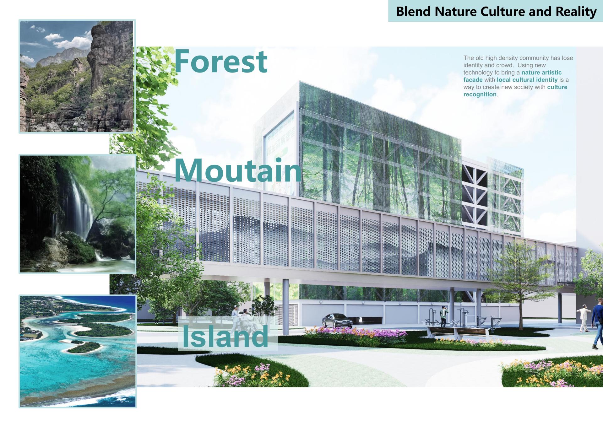 The parking building is located between the hospital's residential area and the treatment area, characterized by limited space, parking difficulties, and a cluster of old buildings. Inspired by natural forests, the design recreates the scenery of local Yuntai Mountain. Perforated panels are used to simulate the interplay of light and shadow in the woods, allowing patients to feel the healing power of nature as soon as they arrive. The main facade features a distinctive LED screen, symbolizing the co-existence of technology and humanistic care.