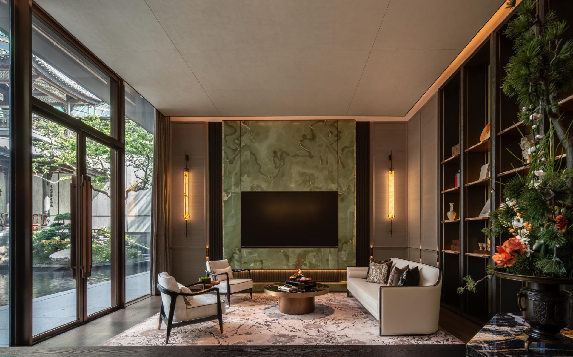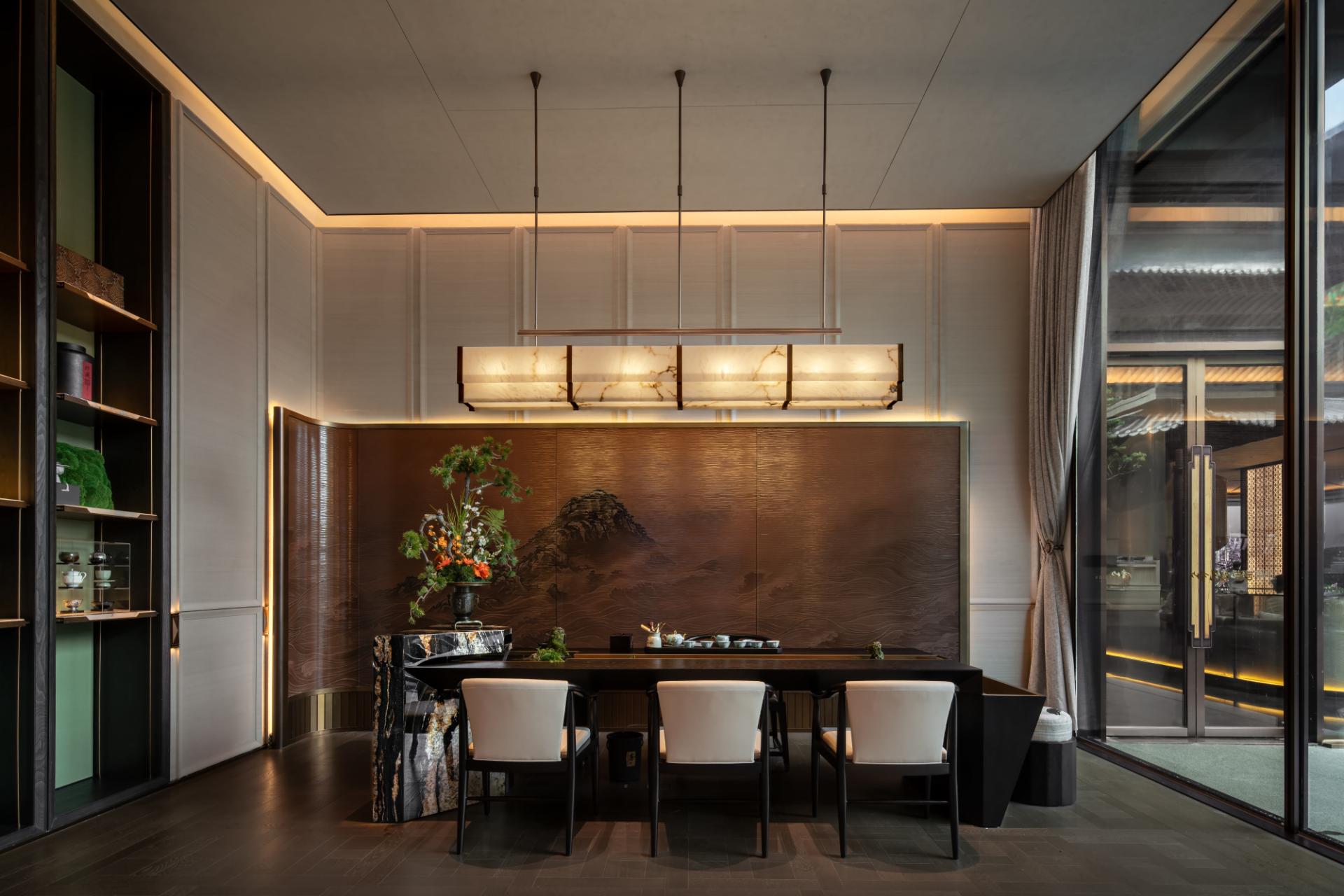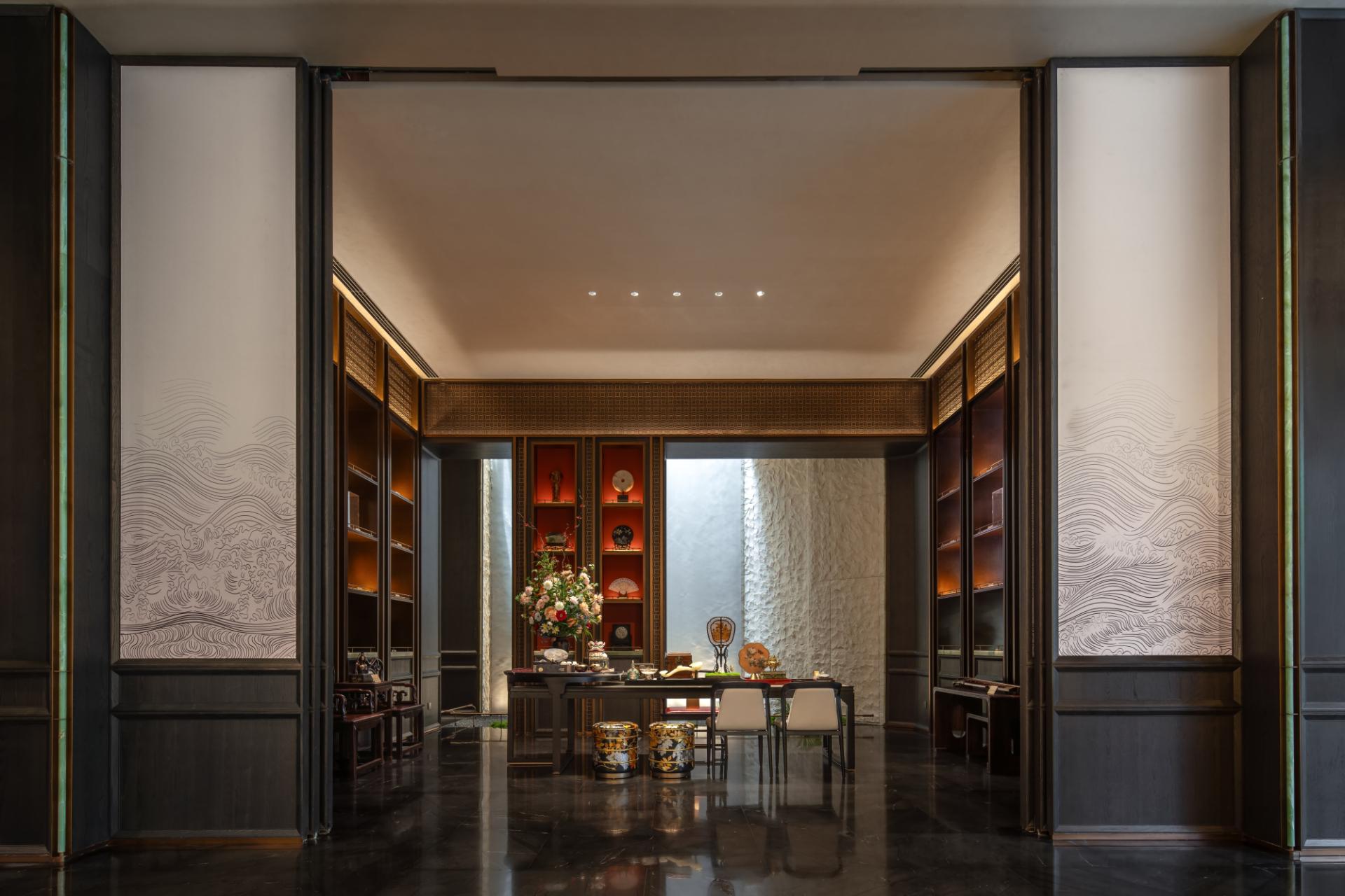 Sunken Club: The approximately 2,000㎡ clubhouse covers tea rooms, private banquet halls, gyms, children's book bars, and other functions, linking with institutions to create an art gallery, enhancing the quality of life in the circle.