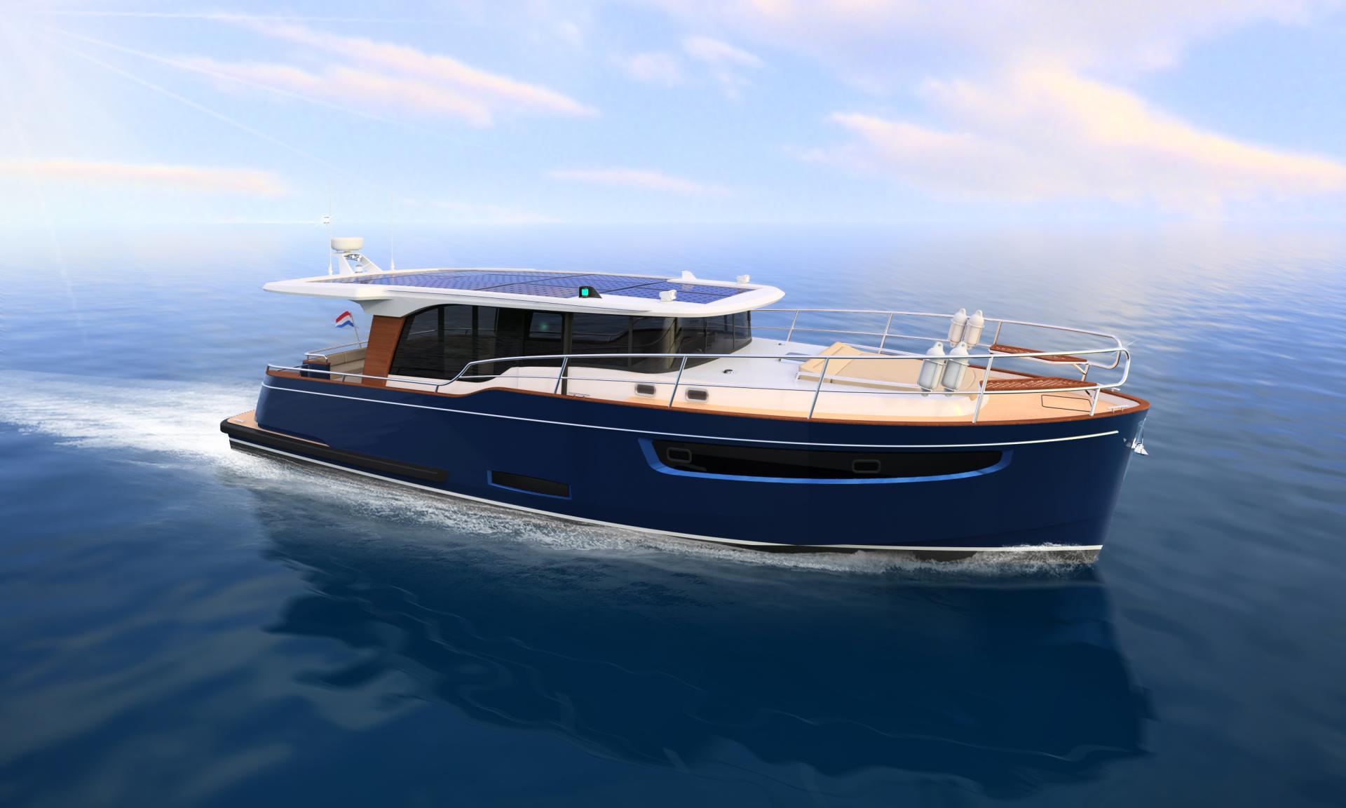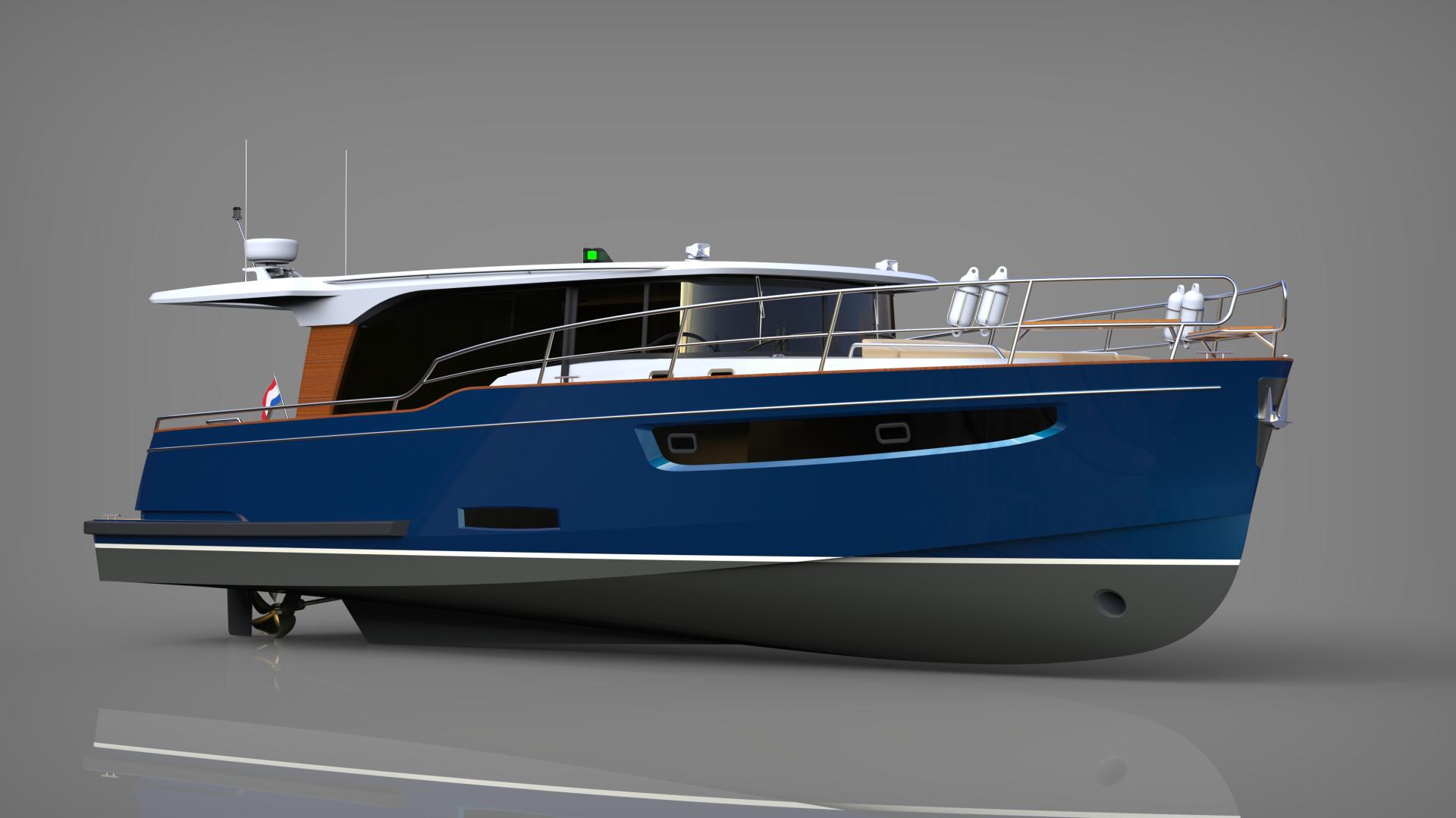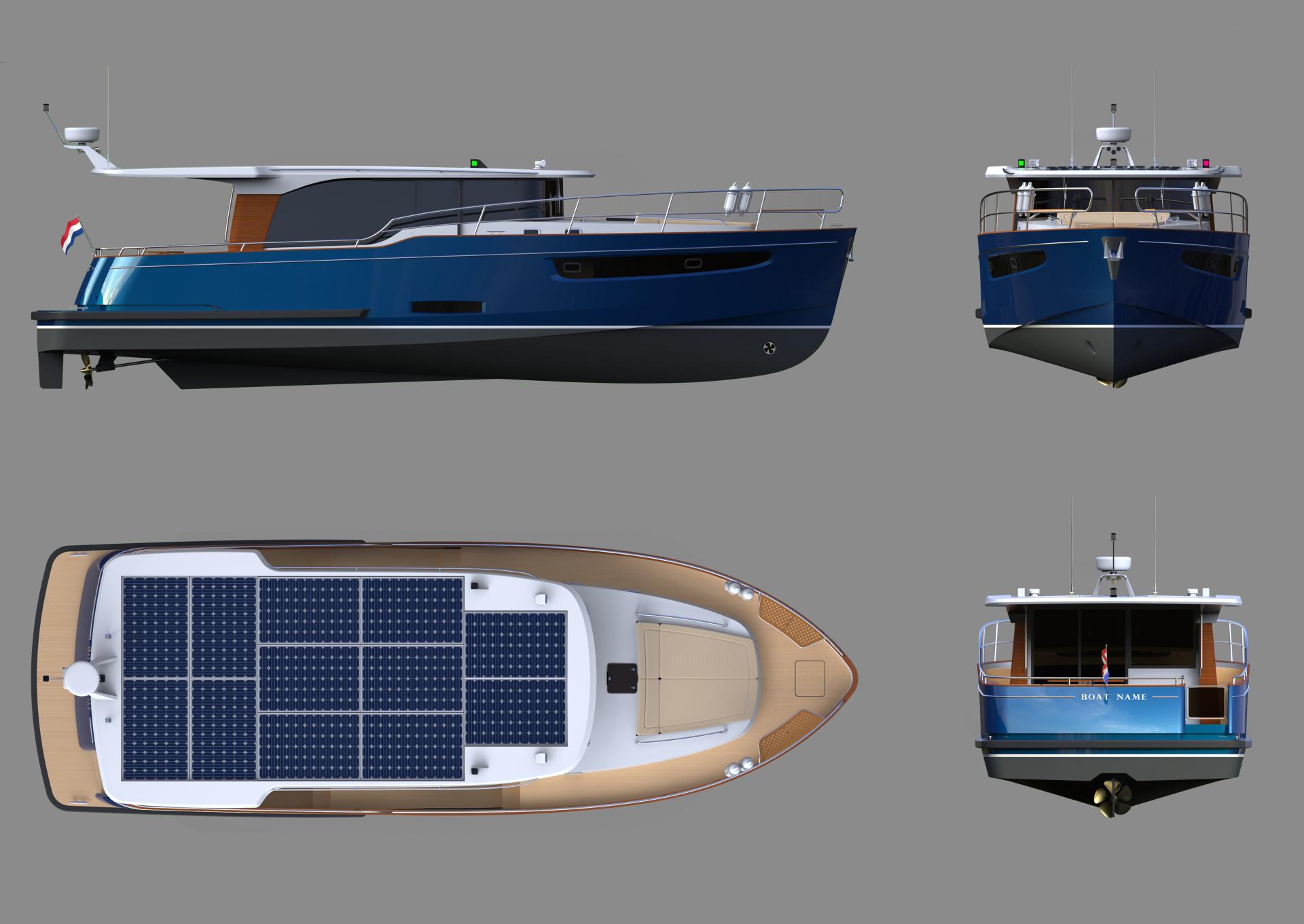 Neo-classic motor yacht, gentlemen’s' yacht designed for hybrid propulsion (electrical and diesel). The yacht features spacious saloon, galley, sauna, master bedroom, guest cabin, bathrooms, crew quatres, aft deck with seating, bow deck with sunbeds. Dimensions: length 13.98m, beam 4.70, displacement fill load 18t, engine 200hp hybrid, RCD Cat.B.