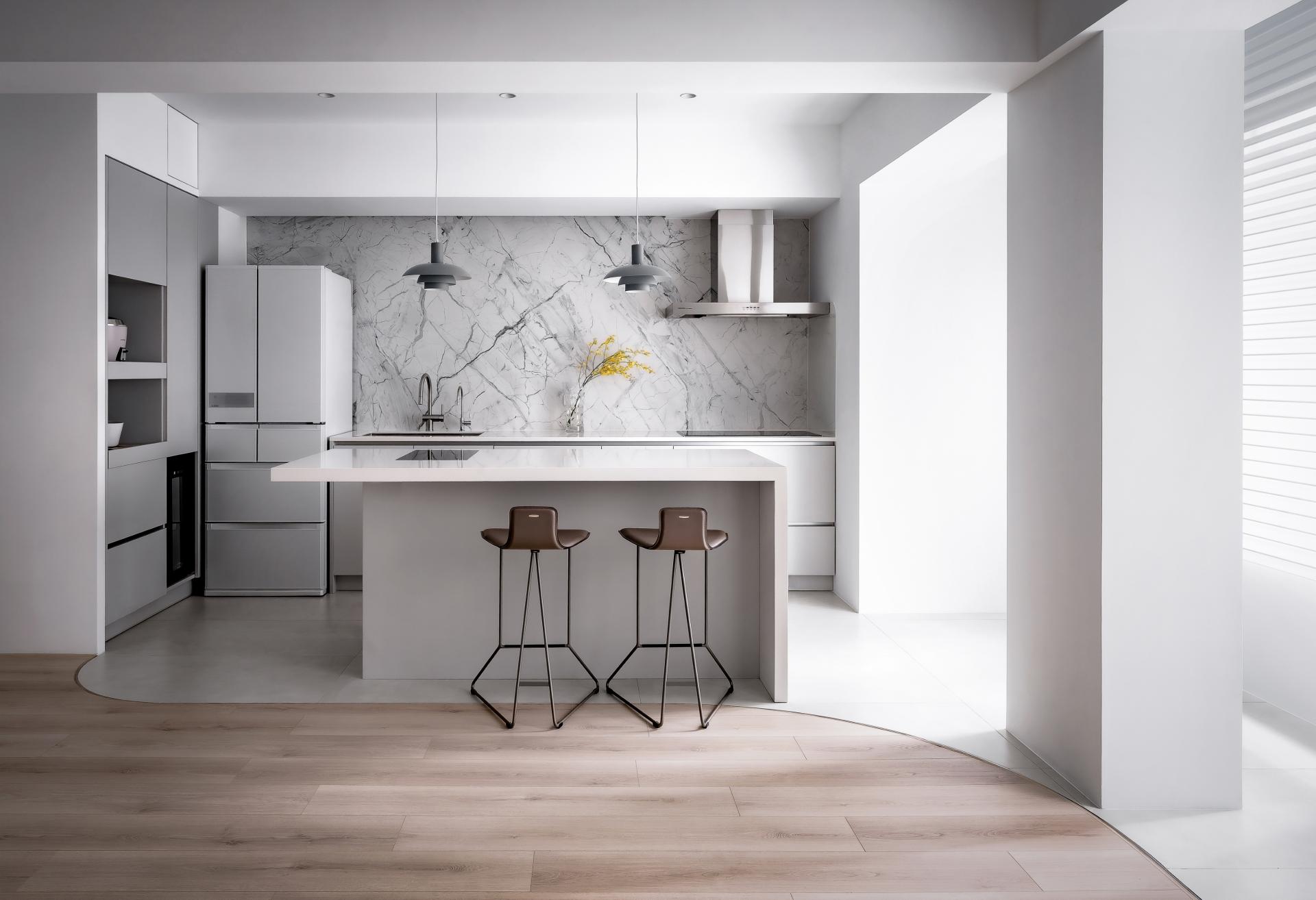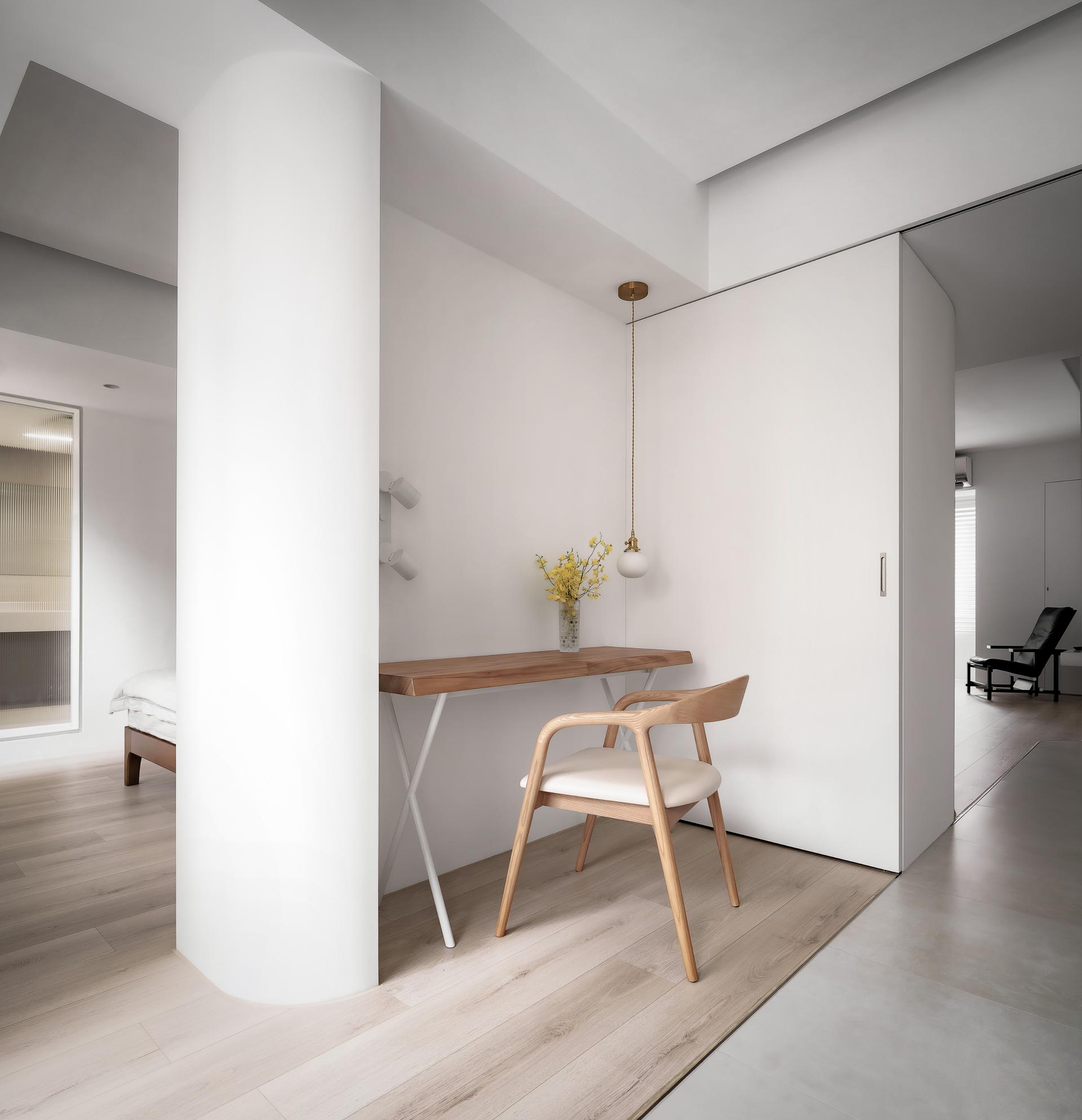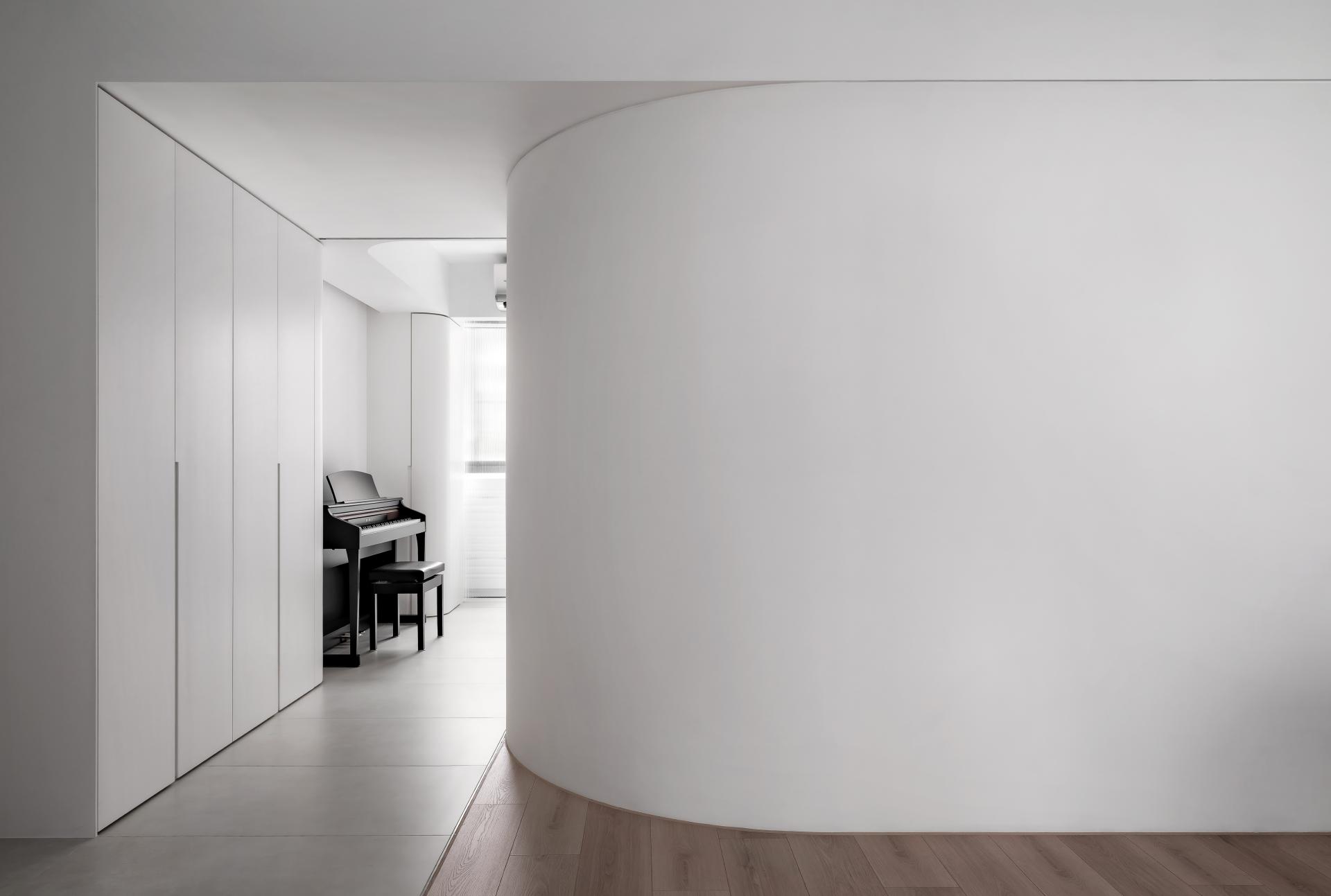 Tender Ray transforms a compact apartment into a minimal sanctuary of calm. A sculptural white curved wall connects and defines all areas—living, dining, and multifunctional spaces—while enabling natural light to animate the surfaces. Storage and structure are concealed, allowing a dialogue between form, light, and materiality. The project represents harmony between architectural clarity and emotional softness.