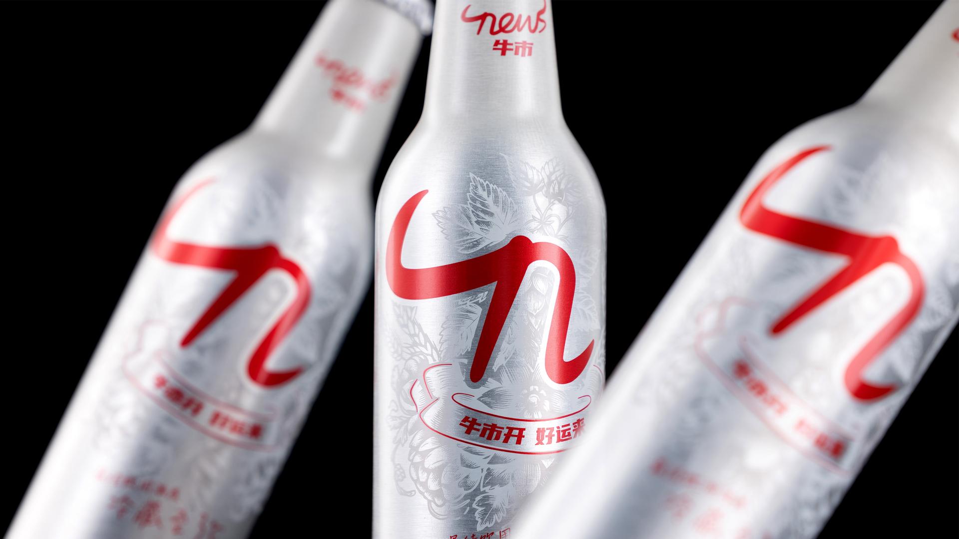 In this project, the brand “n” serves as both the initial letter and a stylized bull horn, echoing the theme “Bull Market Brings Good Fortune” and symbolizing a rich, full-bodied taste; surrounded by hops and barley, the clean retro lines highlight natural purity, making every toast a highlight moment.