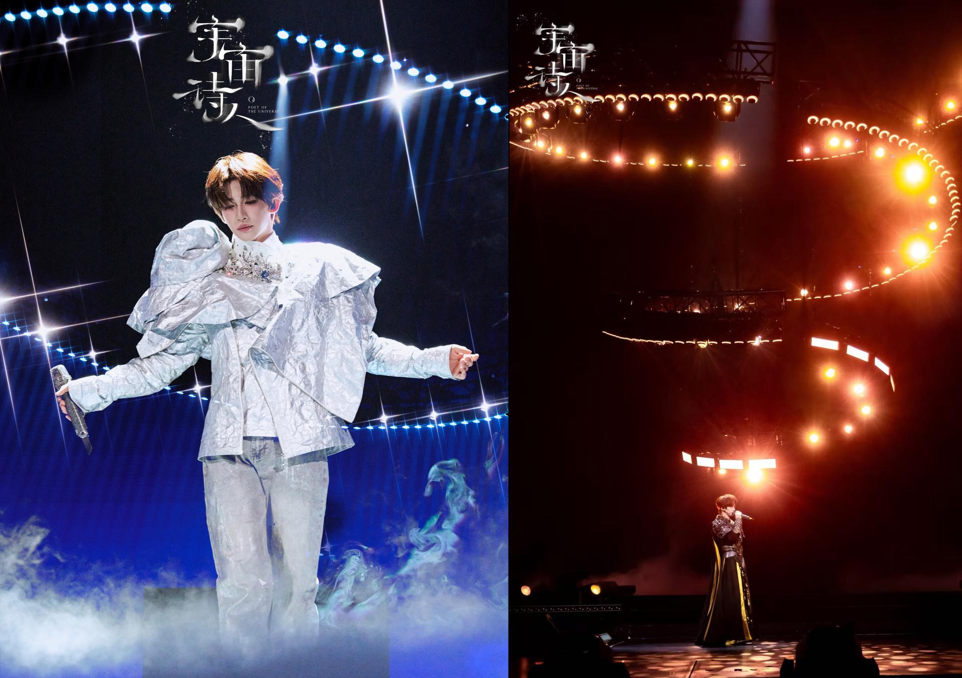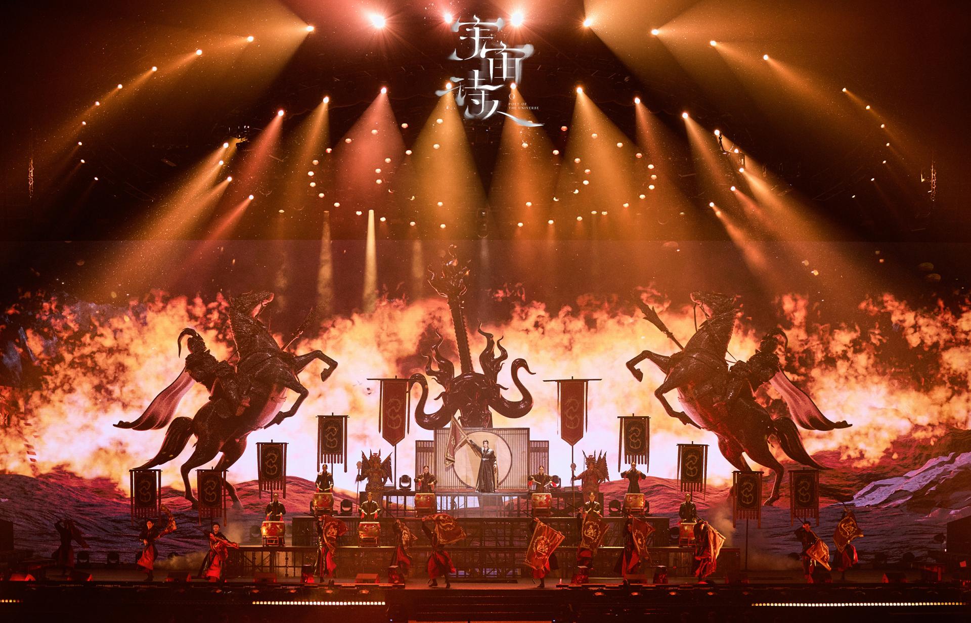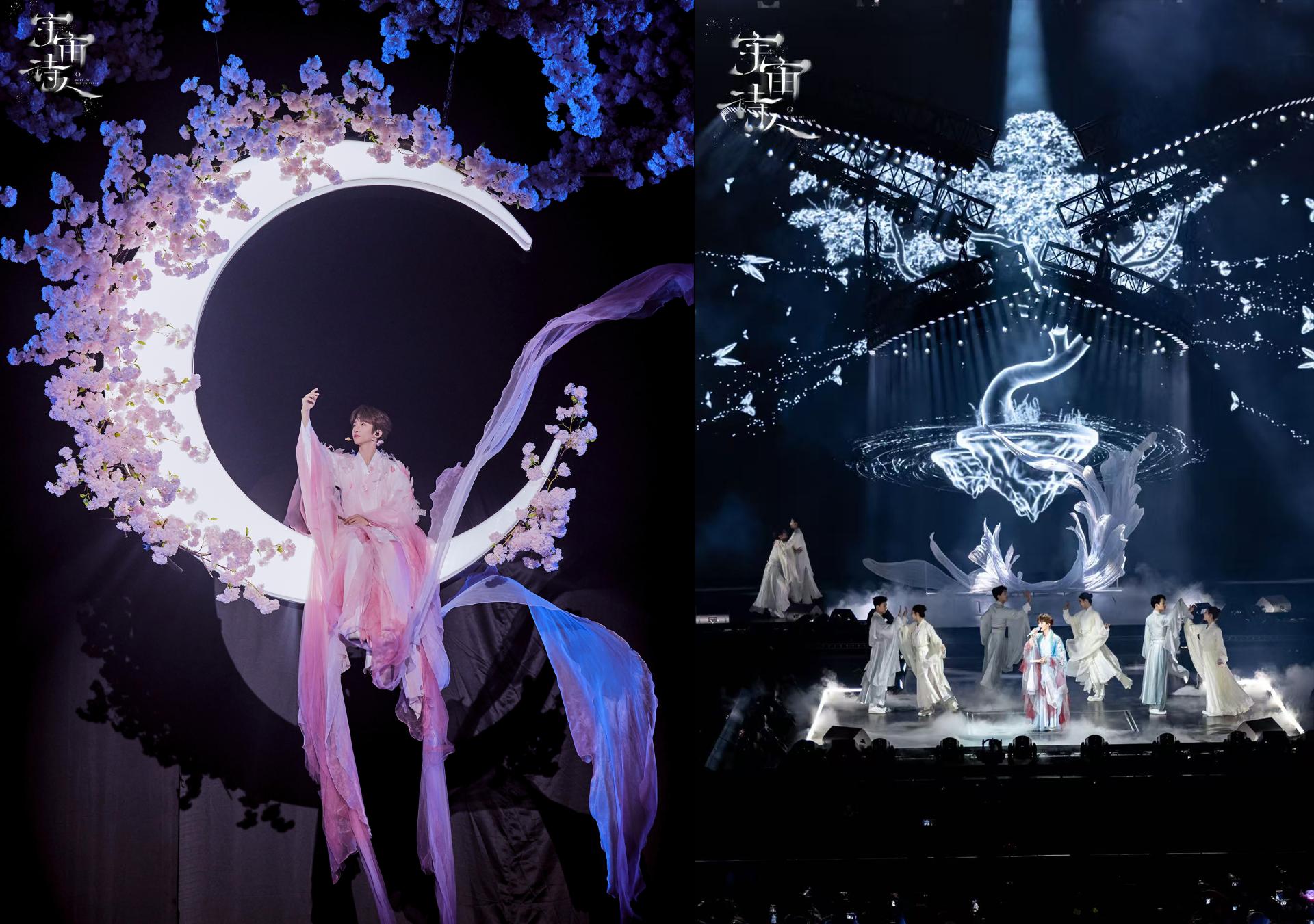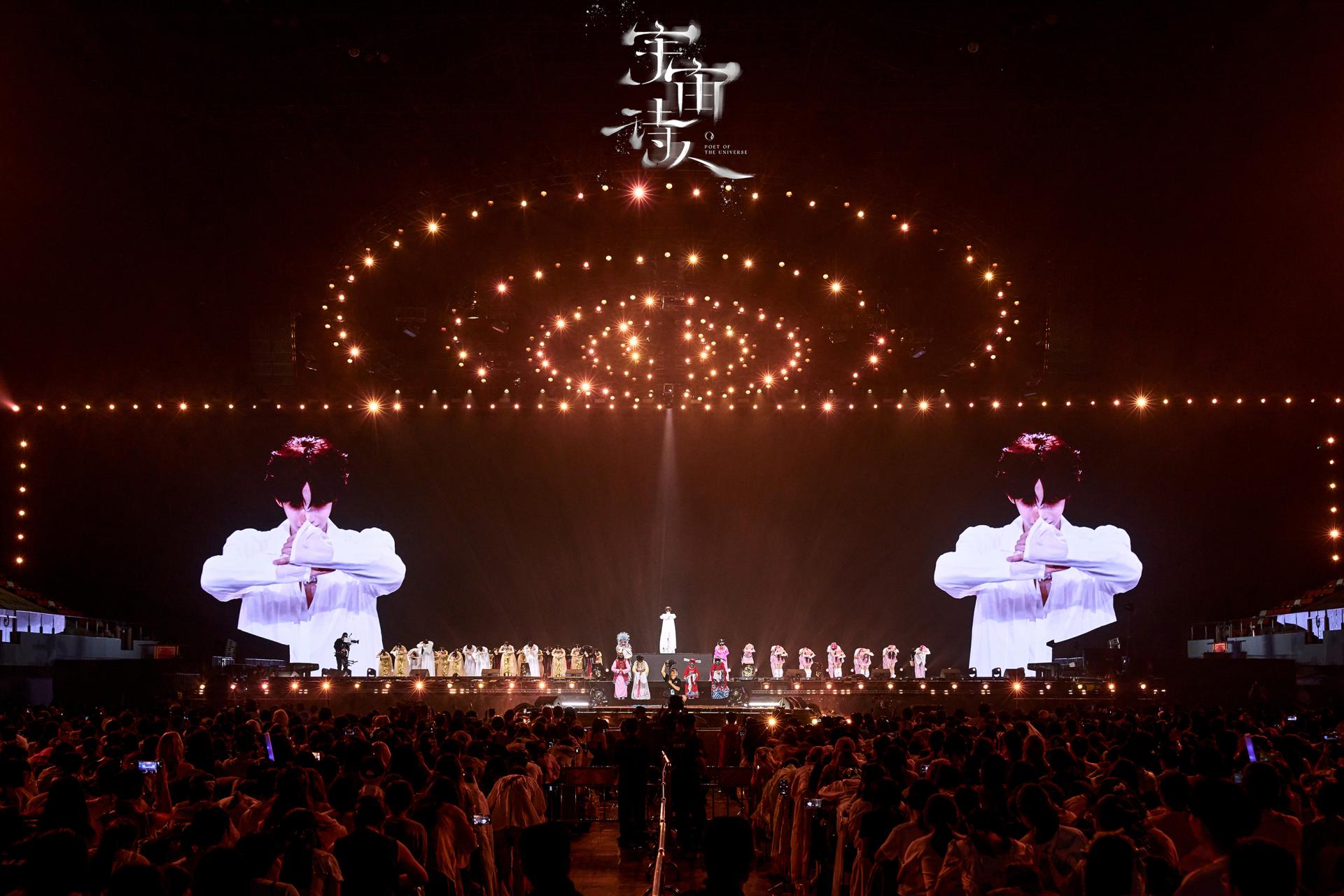 The stage design emphasizes the [duality and unity] of stage space, mechanics, performance, and set design. It skillfully balances the boundless vastness of the Western [Cosmos] with the romantic resilience of the Oriental [Poet]. Combined with the artist's performances across [Traditional] and [Modern] dual chapters, it leads the audience to explore the heritage of civilizational diversity under the vast universe.