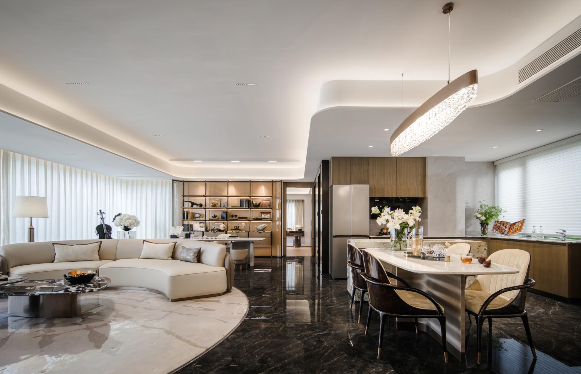 Guided by the philosophy of “elegant luxury with restraint,” the project creates a high-quality living space that remains hidden amidst the bustle yet returns to tranquility. Light and shadow dance here, where simplicity conceals opulence; graceful lines flow with poise, revealing prestige within serenity. The space maintains the warm undertones of “memories of time,” featuring a palette of beige, light brown, and caramel tones. Natural wood, microcement, and metallic accents are seamlessly integrated to create an atmosphere that is warm, comfortable, and distinctly sophisticated. We focus on meticulous detailing and the interplay of materials, expressing refinement through understated elegance and conveying warmth through comfort. This transforms the home into a sanctuary for the soul, offering residents a healing experience akin to savoring a delicious meal.