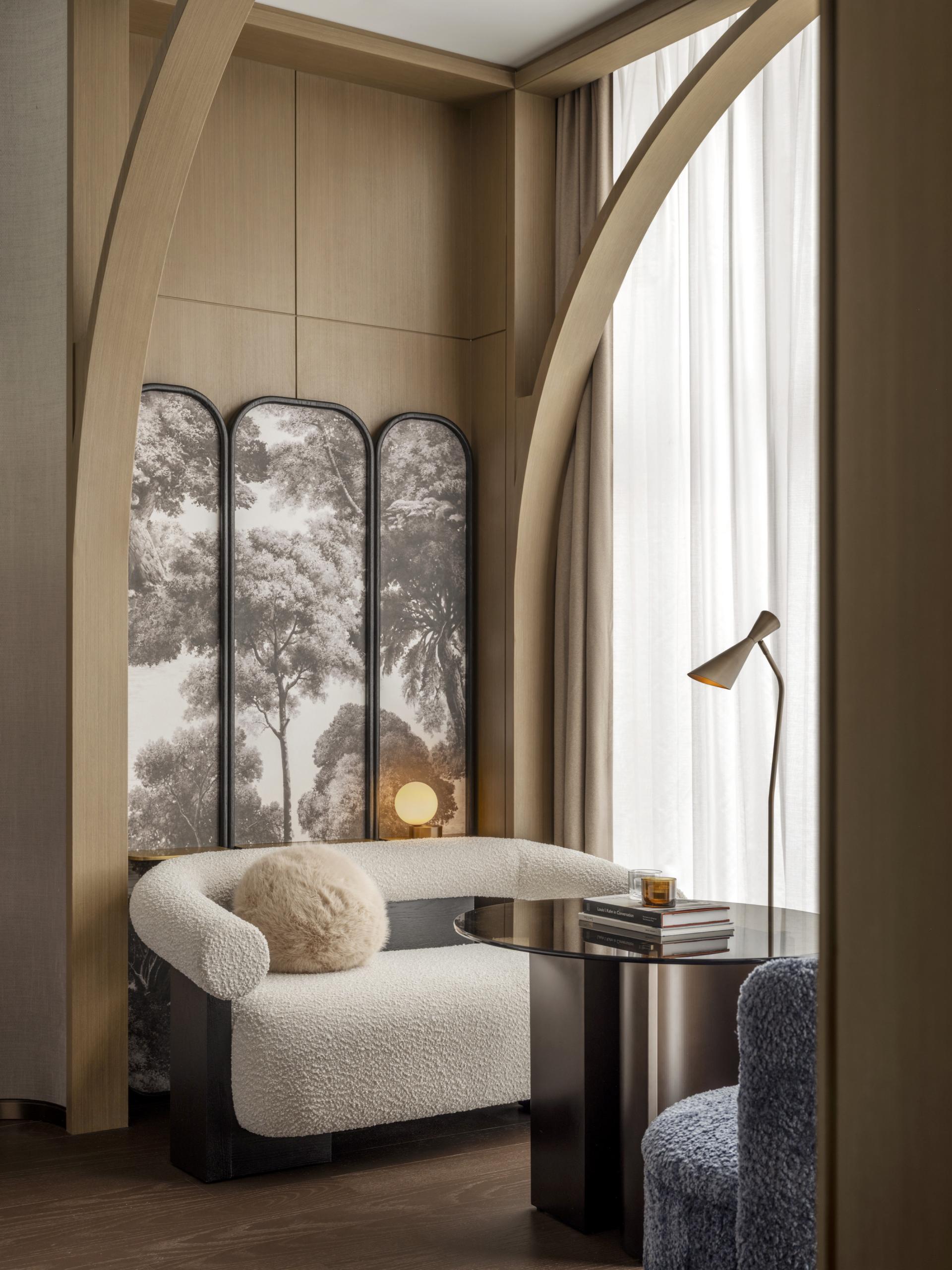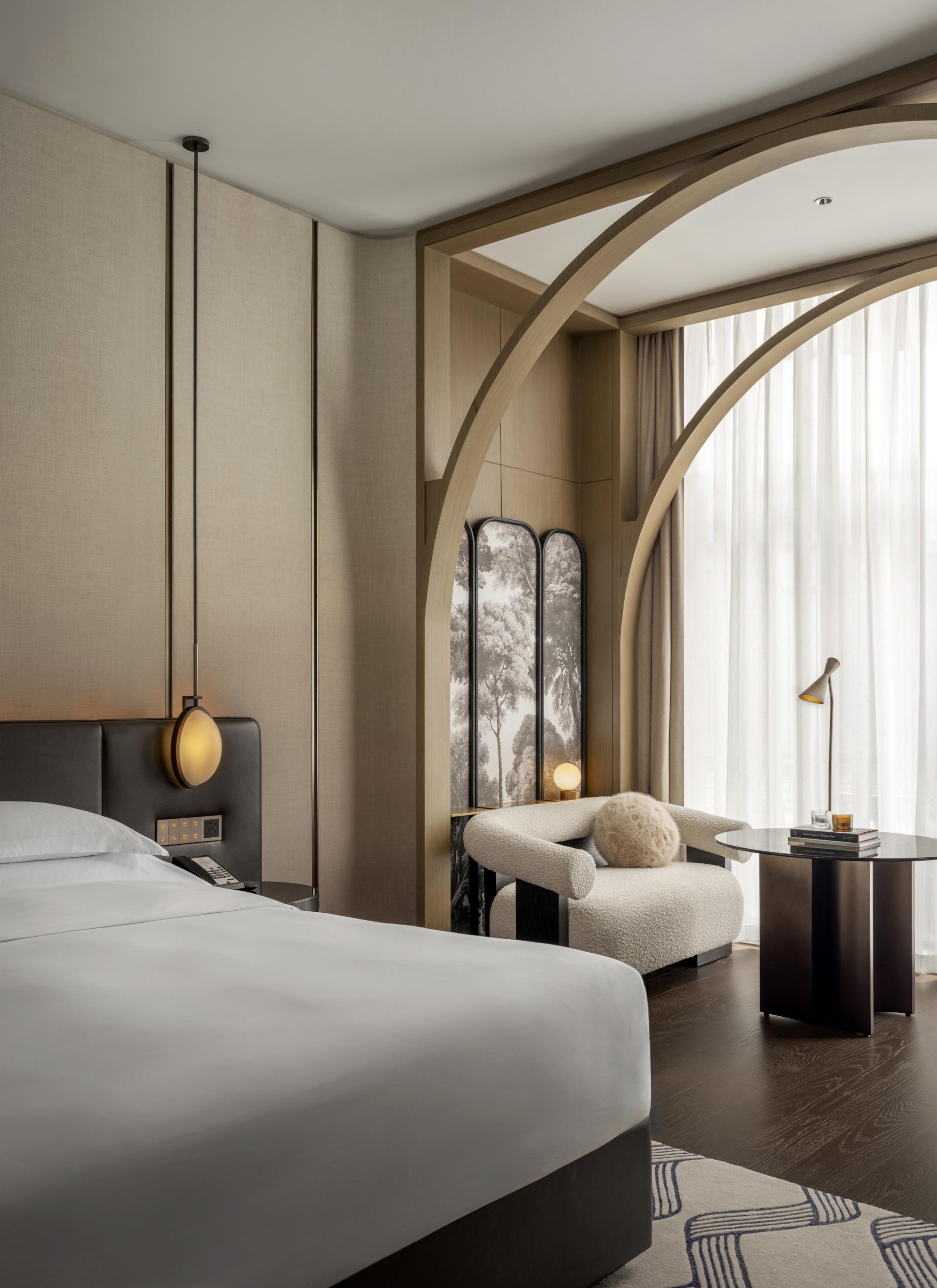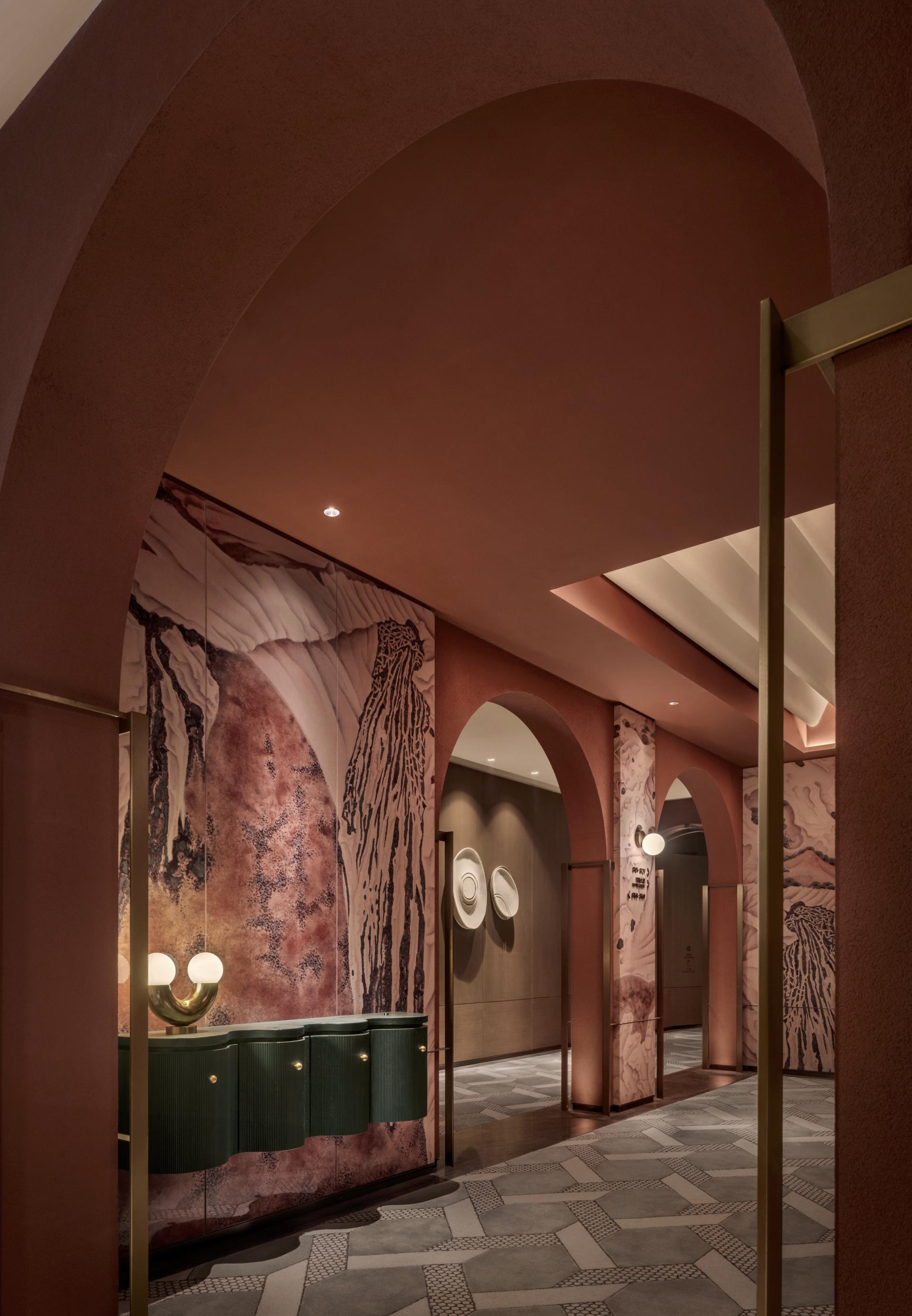 Set along the historic Grand Canal in Wuxi, Hotel Indigo Qing Ming Qiao draws inspiration from the city’s layered past and its dynamic present. The design captures the bold spirit of the neighborhood, where the centuries-old Qingming Bridge remains a symbol of connection and continuity. Taking cues from Wuxi’s legacy of silk, ceramics, and commerce, the interiors blend rich materials, saturated tones, and intricate detailing to create a visual language that feels both rooted and forward-looking. Public spaces are infused with energy—unexpected contrasts, sculptural elements, and curated textures invite guests to explore and engage—while guestrooms offer moments of refinement and local storytelling. Throughout the hotel, the canal’s influence flows not just in narrative, but in movement, pattern, and rhythm, weaving a strong sense of identity into every corner. The result is a vibrant, layered experience that celebrates Wuxi’s cultural heritage with contemporary sophistication and playful edge.