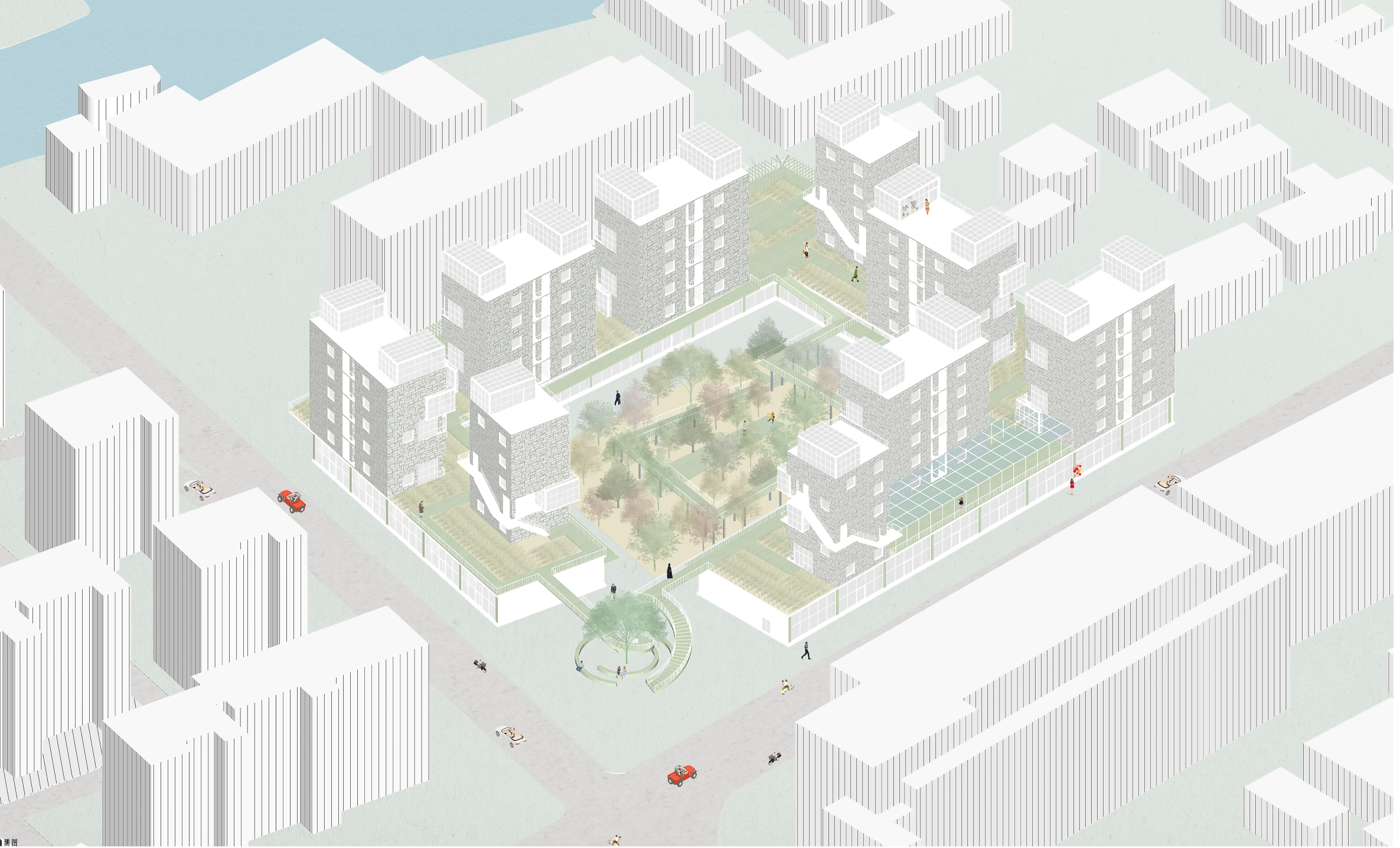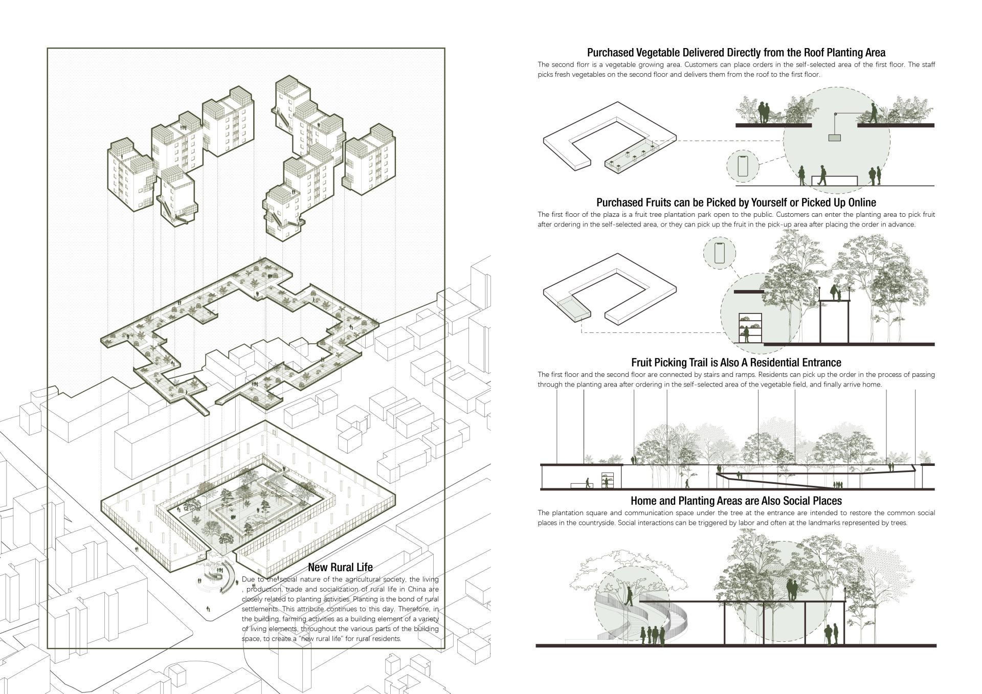 As a traditional farming society, Chinese social settlement orginated from the village. This project intends to generate a collective housing with local significance by deconstrcting and translating the social model of traditional Chinese villages.
