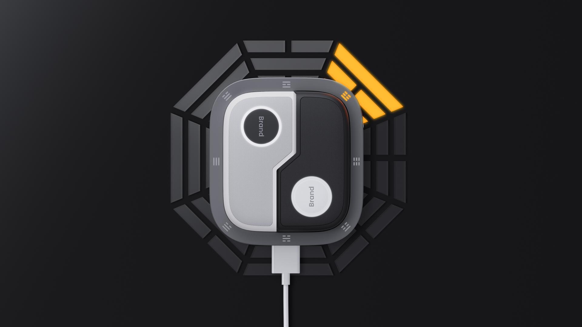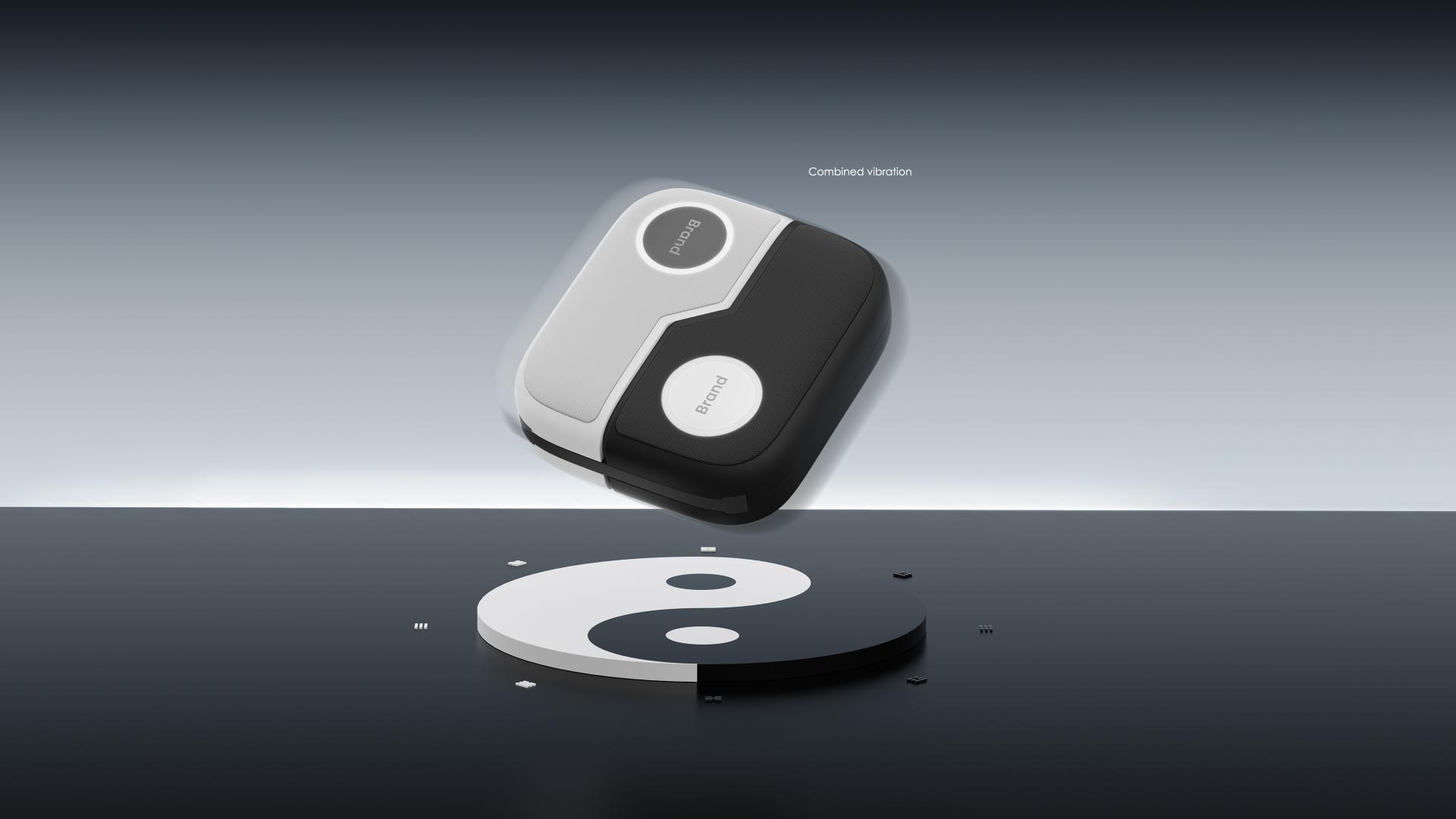 Inspired by the concept of yin-yang interdependence, the device features a symmetrical, streamlined design. Its gray-white gradient body reflects technological rationality, complemented by a vibrant orange ripple-patterned strap for enhanced style and recognizability. The modular structure supports versatile combinations, with a detachable strap and black-white modules that aid meditation, promoting a focused and balanced state. The design blends Eastern aesthetic imagery with practical functionality, adapting to diverse daily scenarios.