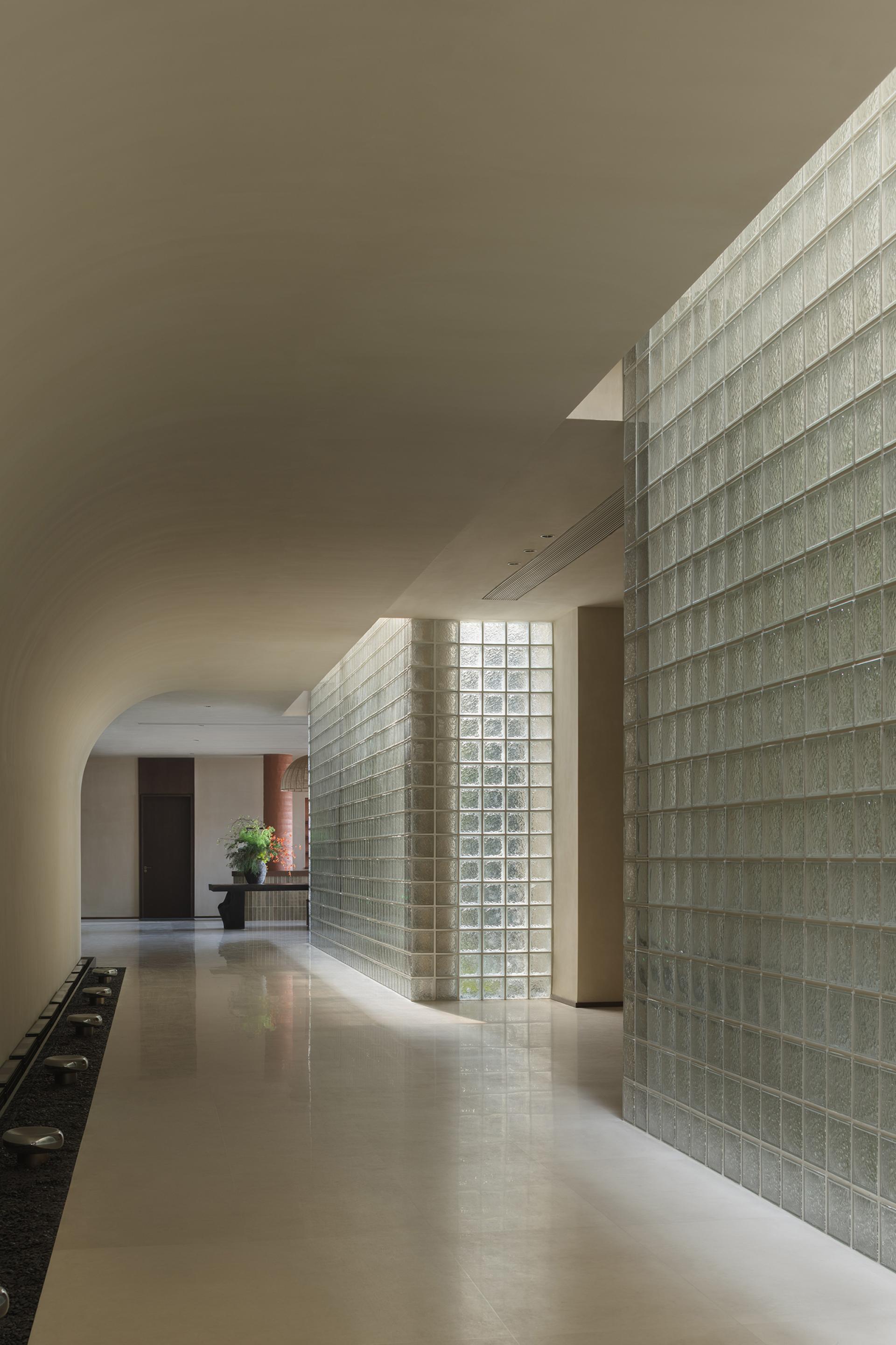 Architecturally, curved volumes echo the forms of surrounding mountains and water, with local sandstone and ultra-clear glass blending the resort into its setting. Interiors layer natural materials with shifting light and shadow, while outdoor landscapes include mirror-water courtyards, lakeside paths, forest trails, and interactive art installations. The result is a full-process artistic journey—from an artistic water curtain wall at the entrance to private in-room art nooks and immersive outdoor scenes.