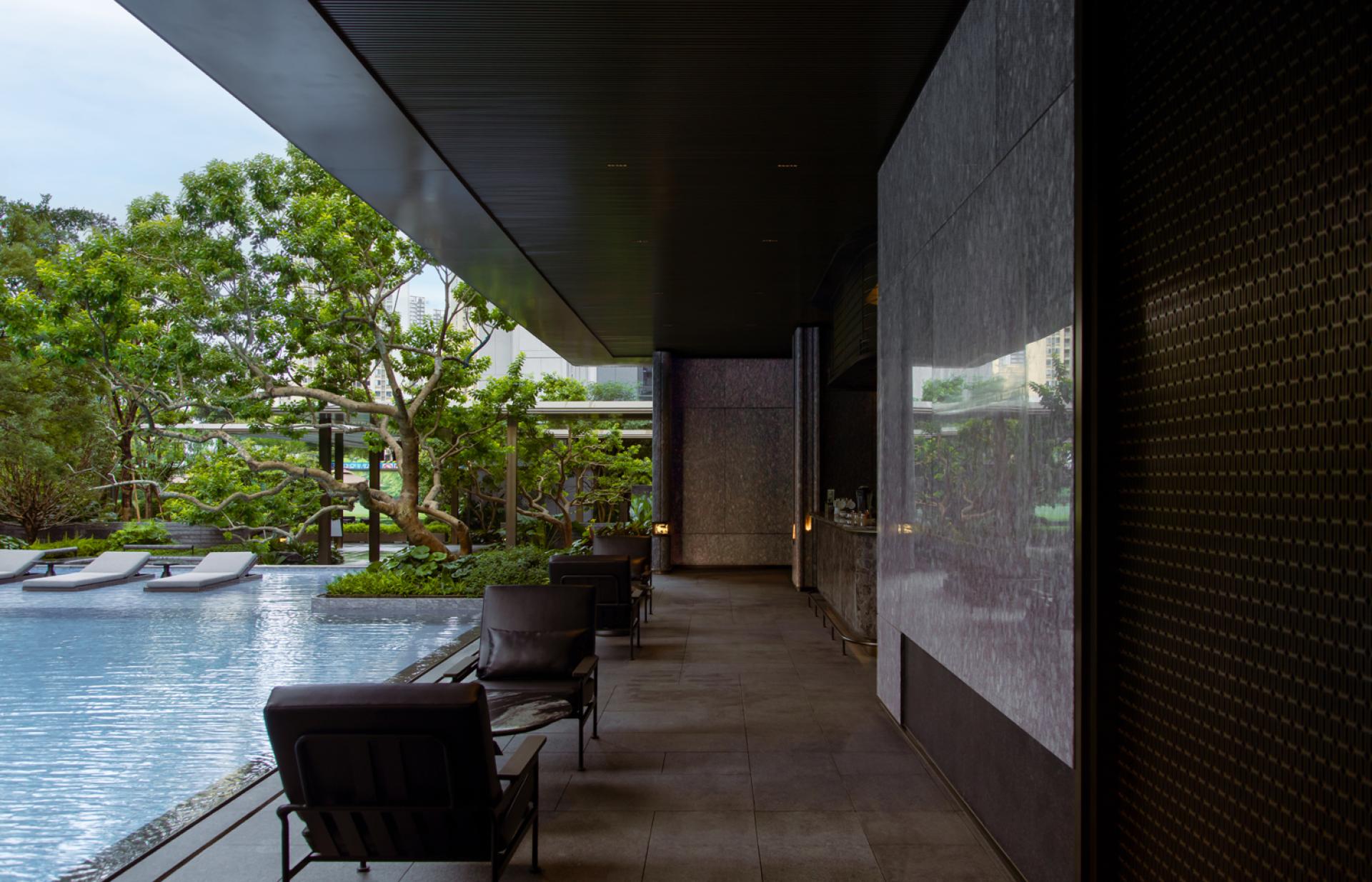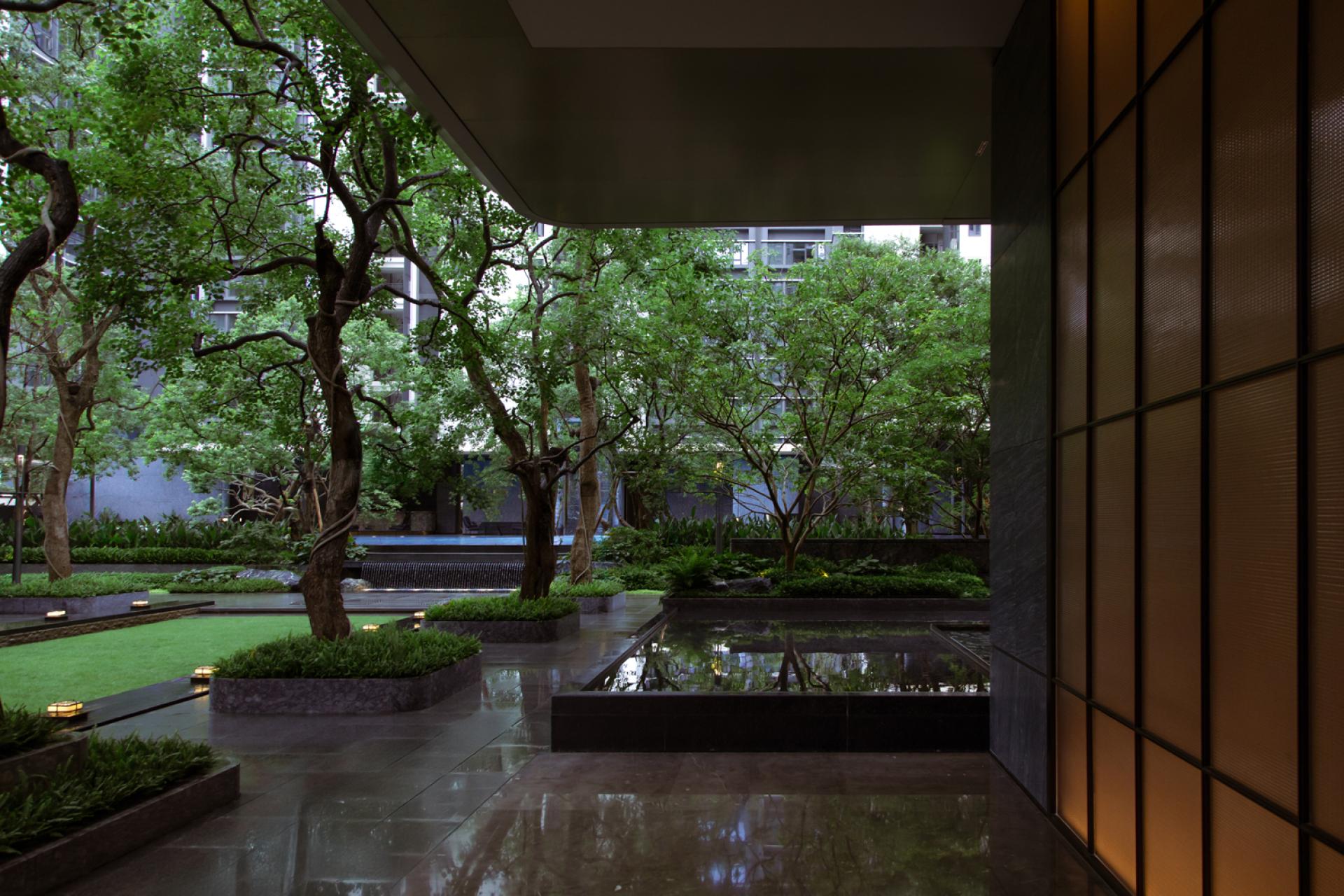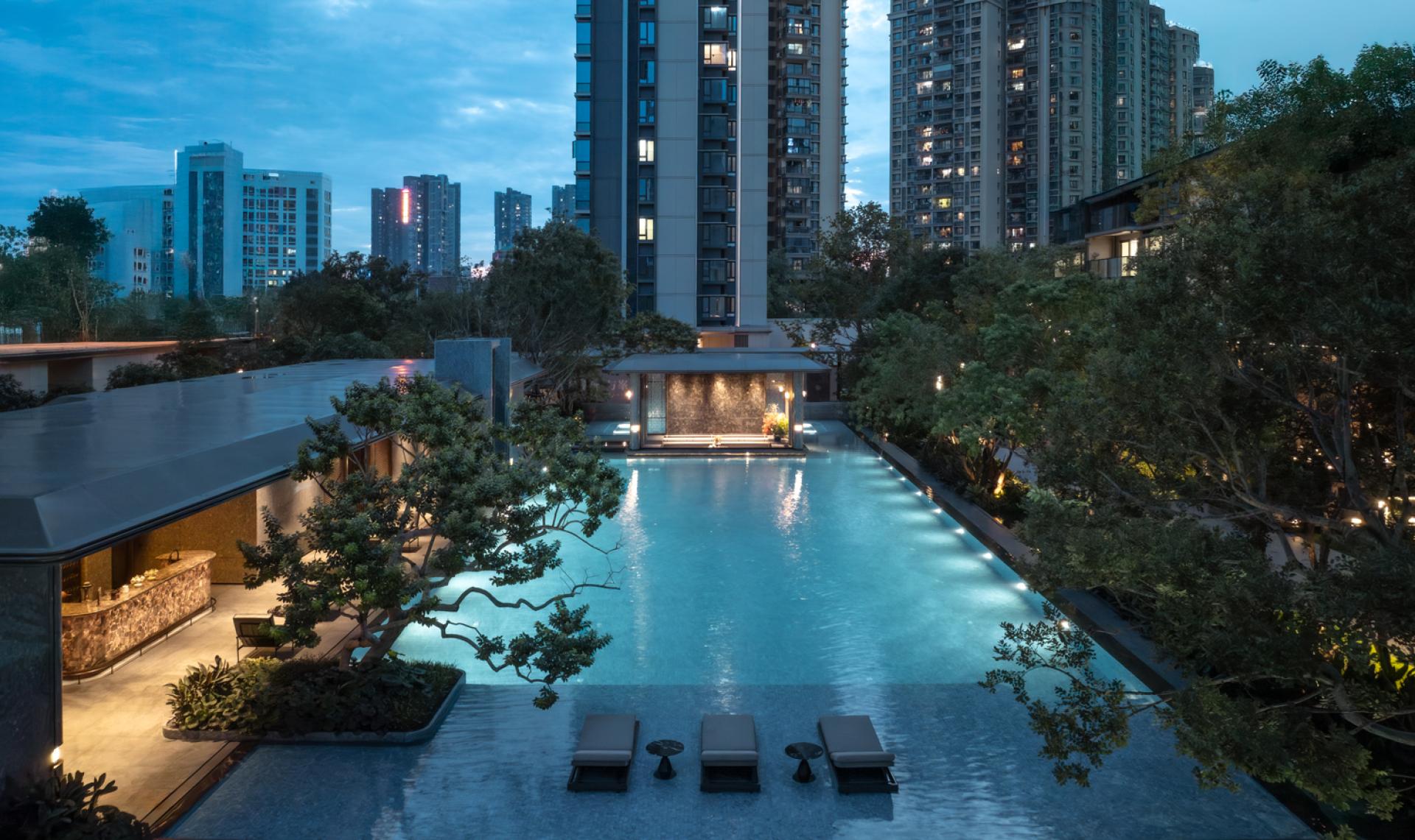 This project is situated in the core area of Bai’e Tan CBD, leveraging its comprehensive urban amenities and natural resources to create a modern, high-end residential experience that harmonizes with nature and resonates with local culture. The design concept, "One Axis, Two Cores, Eight Landscapes," utilizes a linear spatial organization, with a water feature and a central lounge serving as the functional and visual core. It interprets elements of Lingnan culture in a modern way, culminating in eight immersive landscape scenes, achieving an organic blend of hotel-style refined landscaping, natural ecosystems, and vibrant community life. Located in the heart of Bai’etan CBD, the project boasts complete surrounding amenities. The development includes approximately 50,000 square meters of commercial space, encompassing a shopping mall, supermarket, restaurants, and entertainment facilities, catering to daily living needs. Conveniently located near Dongjiang North Road and Dongjiang South Road, the project is 800 meters from Kengkou Station on Metro Line 1, providing easy access to multiple business districts and key locations in the city center, as well as the Ring Road Expressway and Guangzhou-Huaihua Expressway. Furthermore, the Dongjiang asset portfolio also includes a planned 400,000-square-meter waterfront commercial strip, integrating pedestrian walkways and elevated leisure spaces, creating an all-weather, accessible lifestyle destination. The community's northern boundary borders a tributary of the Huadi River, forming a natural water feature, with approximately 18,000 square meters of green space. The landscape design, inspired by high-end hotel landscaping concepts, features a "One Axis, Two Cores, Eight Landscapes" framework, with a swimming pool and a multi-functional lounge as key elements, aiming to integrate modern community functions with natural ecology. The design emphasizes spatial order, visual perspectives, blurring the boundaries between indoor and outdoor spaces, and the contemporary interpretation of Lingnan cultural elements.