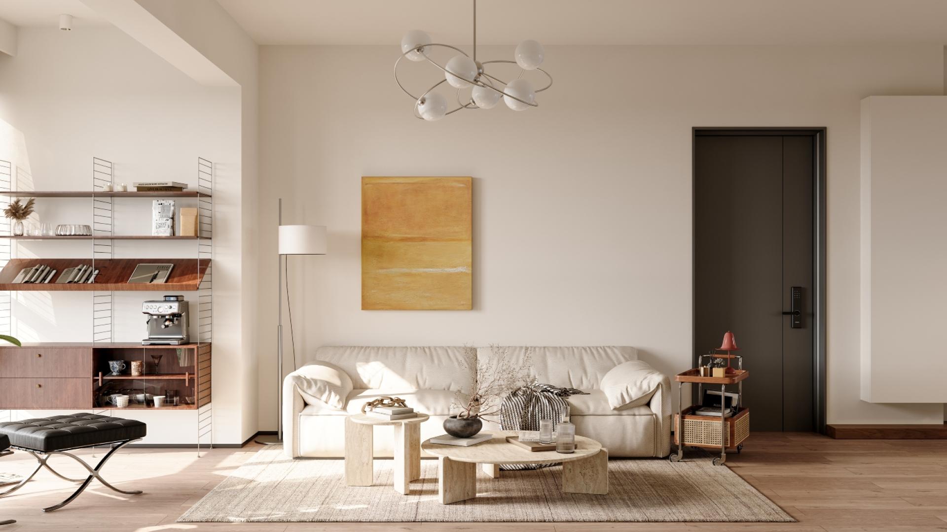 A neutral base livened by gentle accents produces a quiet yet animated atmos-phere. Warm tones dominate, creating intimacy and friendliness; textiles and accessories provide chromatic depth and visual spark.