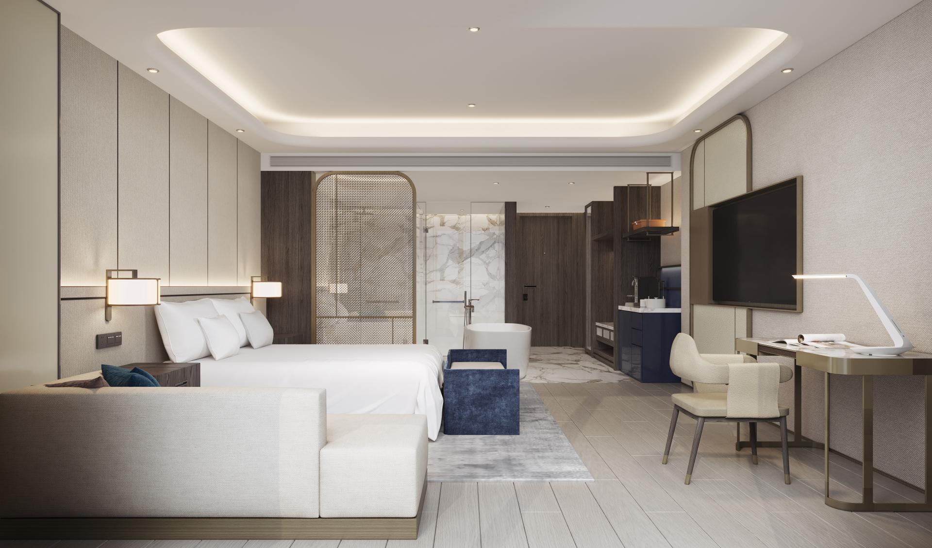 The hotel draws inspiration from the arched contours of the ancient Great Wall, weaving this fluid form throughout every corner of the space to create a seamlessly dynamic flow. The iconic Guangwu Great Wall's Moon Gate is reimagined as a striking design highlight at the lobby entrance, serving as a breathtaking visual focal point. Furthermore, historical elements like the brick walls of Guangwu Great Wall in Shanyin and the lattice screens of Chongfu Temple in Shuocheng are reinterpreted through modern craftsmanship, transformed into glass bricks and metal screens—achieving a masterful blend of classical charm and contemporary aesthetics.