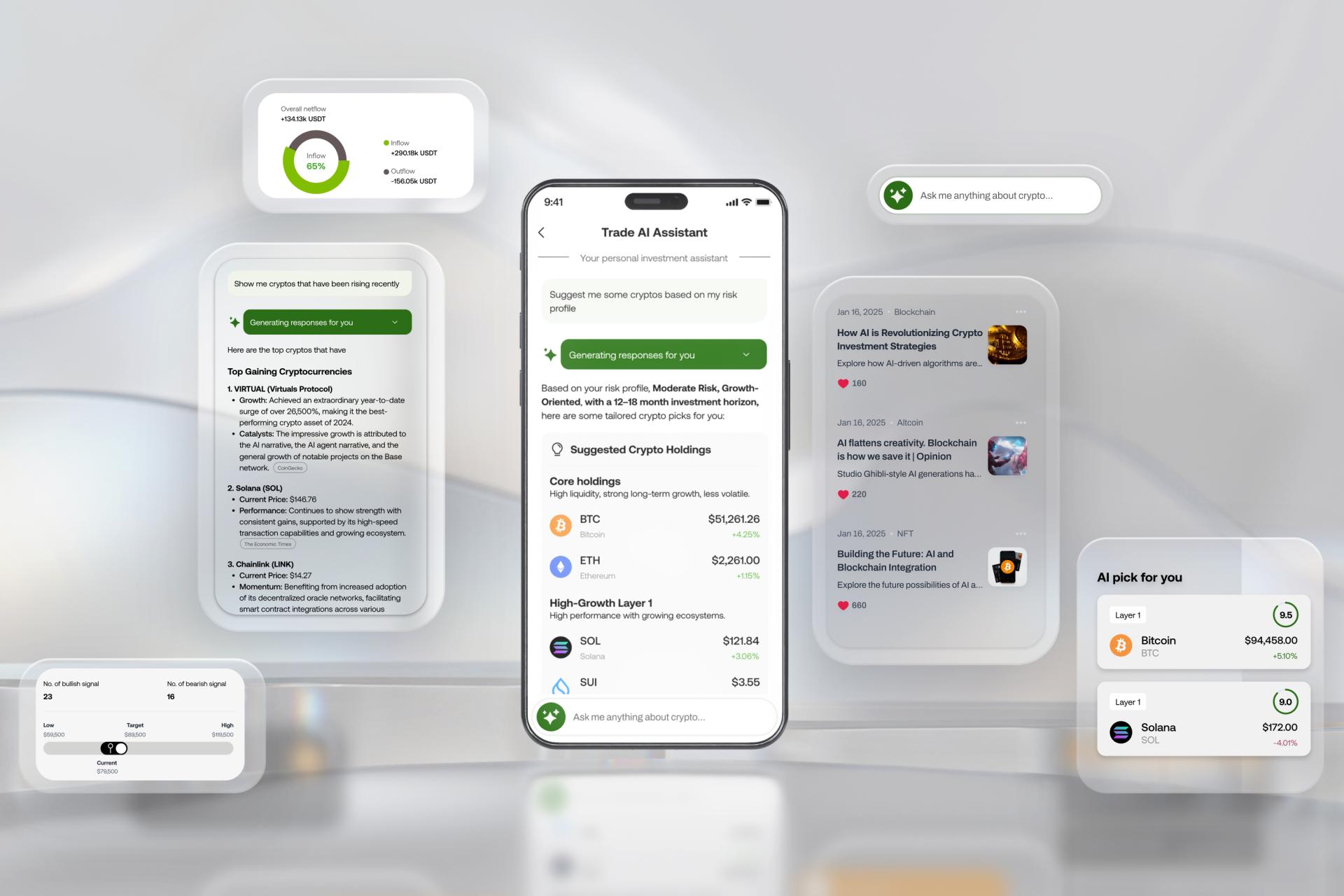 This AI-powered investing experience simplifies crypto decision-making for all users. It analyzes real-time market signals, social sentiment, and on-chain data to generate personalized insights, risk profiles, and actionable suggestions. Integrated with a conversational assistant and interactive visualizations, it helps users trade with confidence, learn continuously, and make informed investment choices—all within an intuitive, user-centric interface.