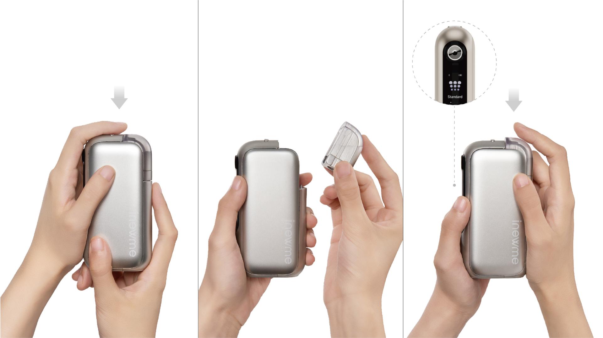 NanoHydra Pro is the first portable facial hydrator with an LCD display, integrating functional software cues and an intuitive interface for a refined user experience. Its ergonomic curved body ensures comfortable handling, while the anodized aluminum alloy construction combines elegance with durability. NFC-enabled magnetic capsules allow fast, precise replacement and automatic mode recognition, while the anti-leak design ensures clean, worry-free use. Compact, travel-friendly, and seamlessly integrating the hydration capsule into the device’s body, NanoHydra Pro balances modern aesthetics with practical reliability—delivering professional-level hydration anywhere.