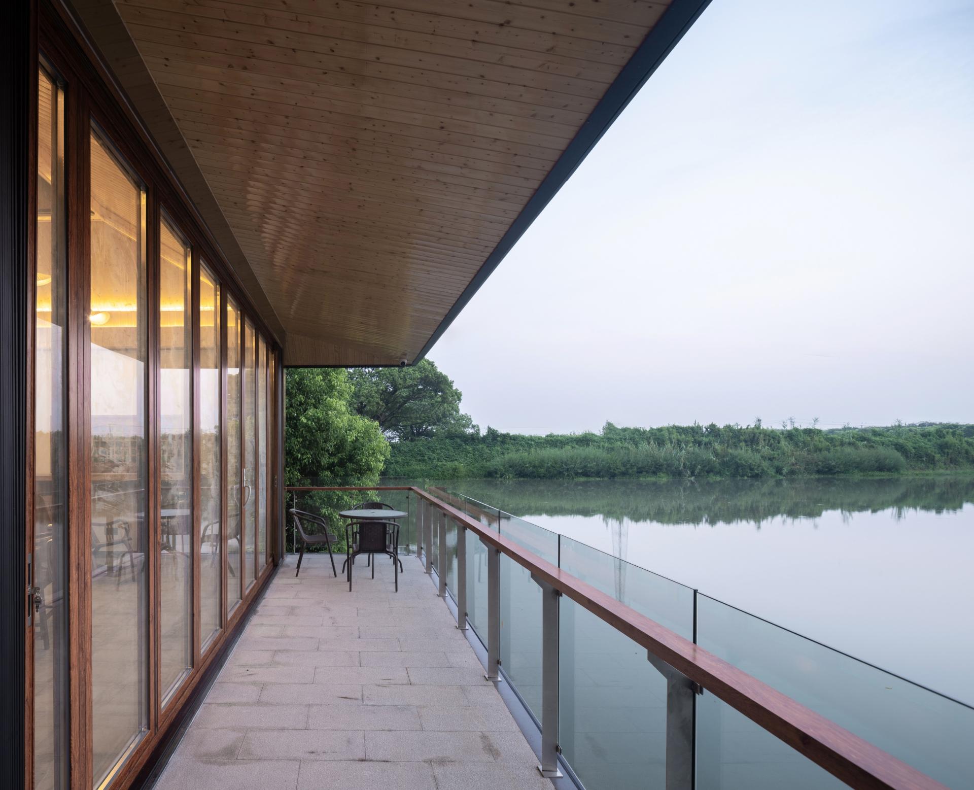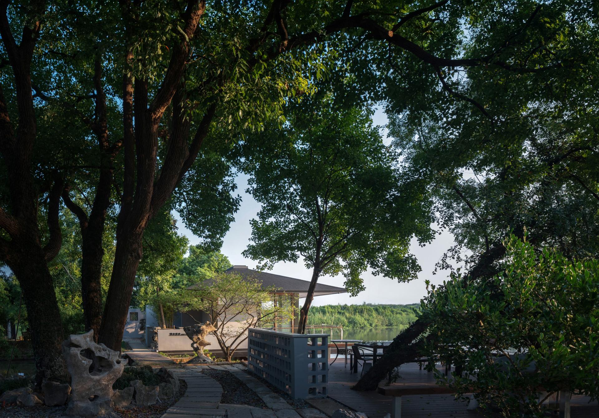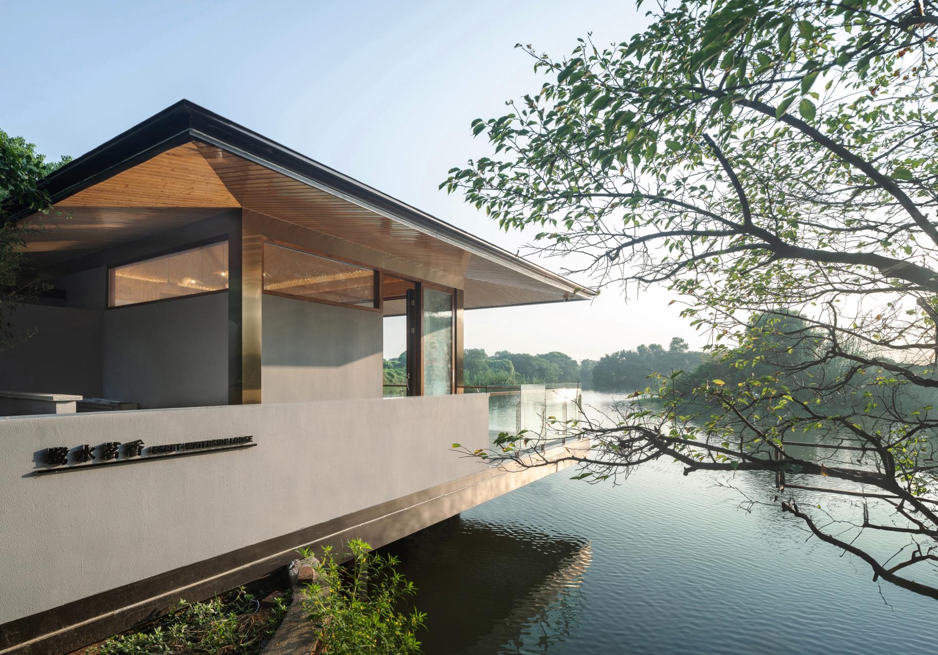 The main building of teahouse adopts the symbol of traditional Chinese architecture sloping roof for interpretation. The main building adopts simple and smooth lines, which echo the waves on the lake, demonstrating the harmonious integration of modern architecture and natural environment. The interior design adopts an unbounded design, emphasizing dialogue with nature. The large french window introduce natural light to make the indoor space bright and transparent. At the same time, indoor decoration uses natural materials such as bamboo, wood, stone, etc., creating a peaceful and comfortable atmosphere. In addition to enjoying tea, guests can appreciate the beautiful scenery of the lake through the window and feel the tranquility and harmony of nature.