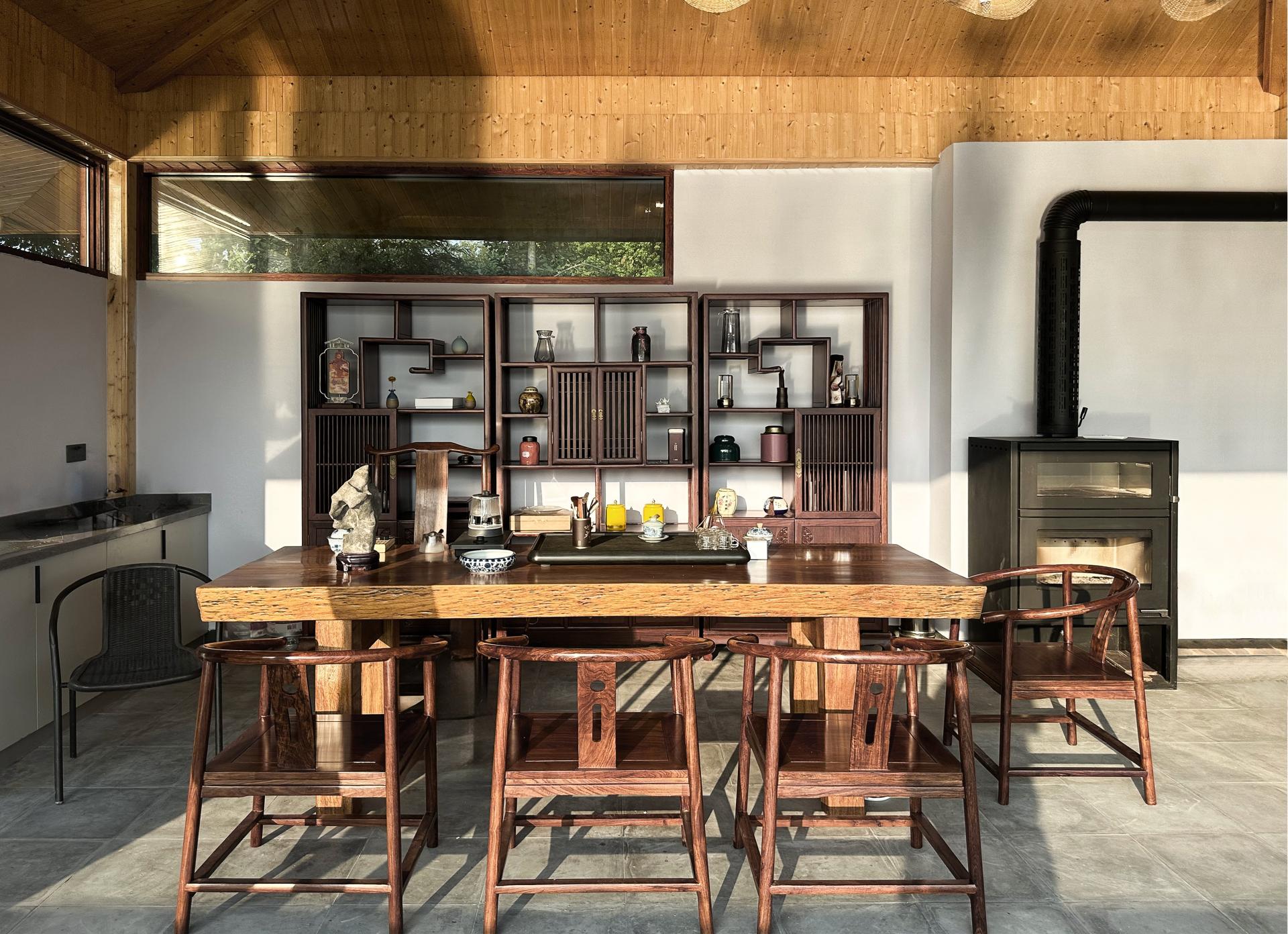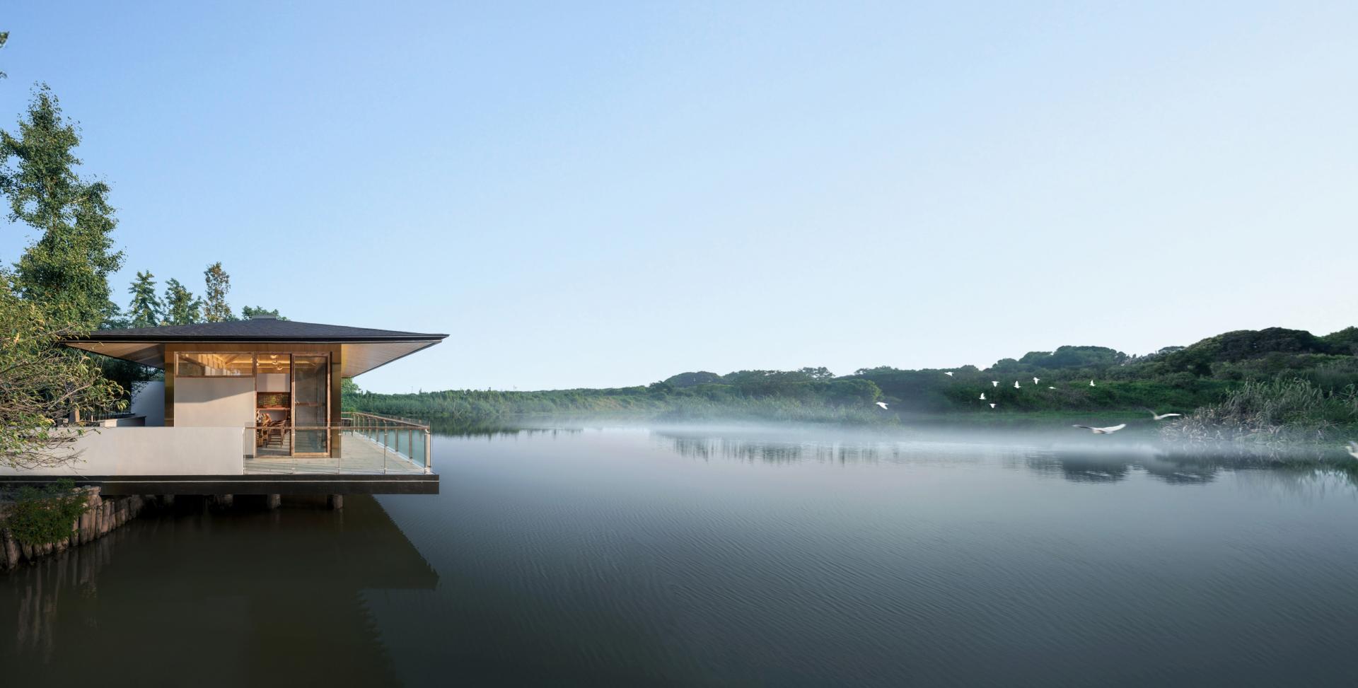 Egret・waterside lodge, a modern building located by the rippling waters is not only an elegant place to enjoy tea, but also a window for inheriting and promoting traditional culture in modern cities. Taking advantage of the natural landscape of "one pond and three mountains", the tea room combines classical garden imagery with modern design concepts to create a peaceful and profound cultural atmosphere.
