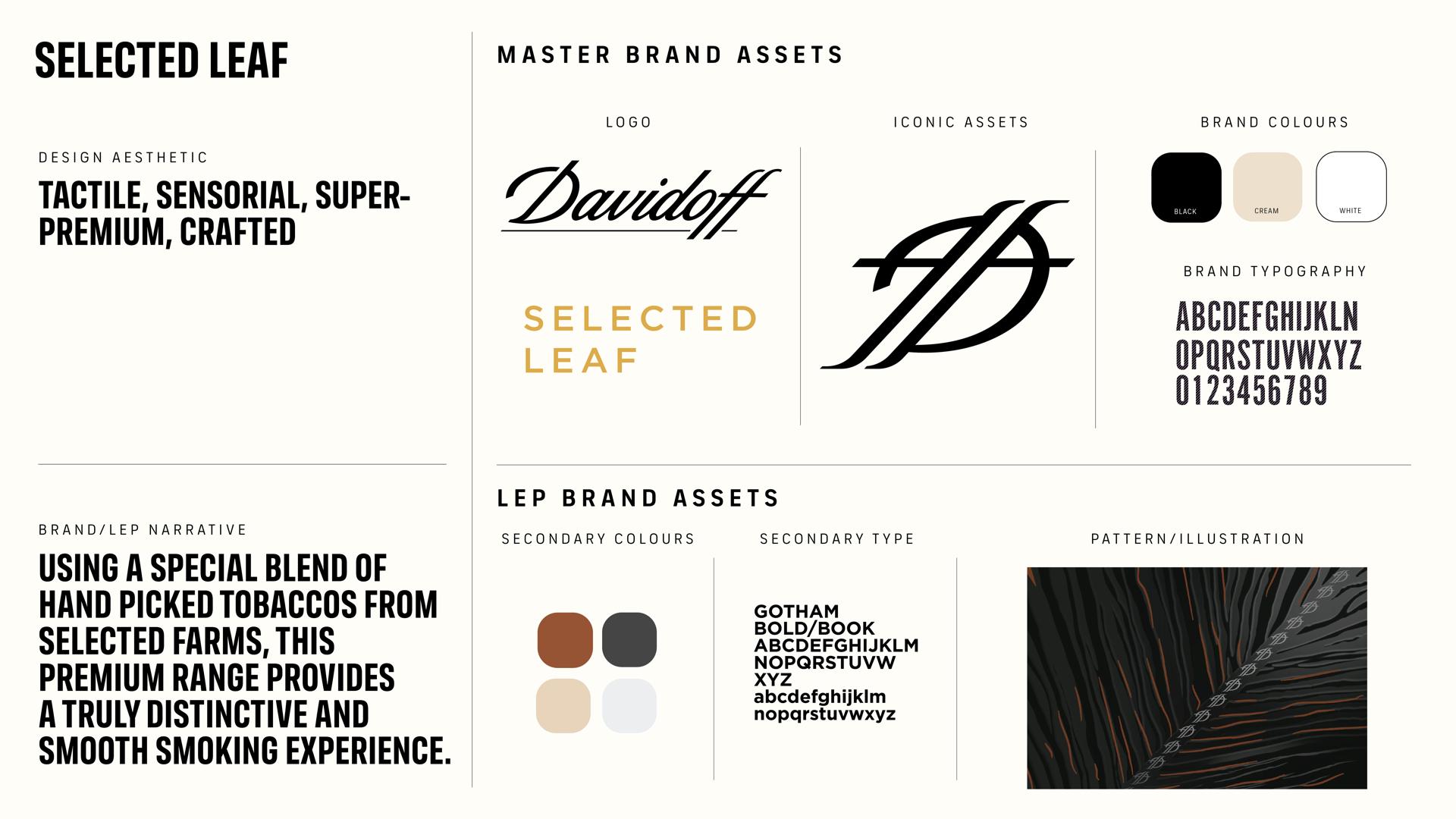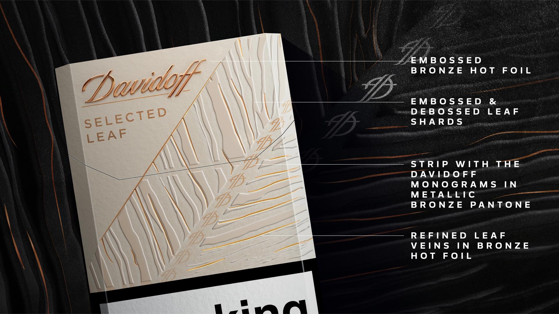 Davidoff Selected Leaf Packaging Design: creating an exclusive range for the discerning consumers of Global Duty Free that offer a super-premium smoking experience to reaffirm Davidoff as a refined, crafted product of exceptional quality.