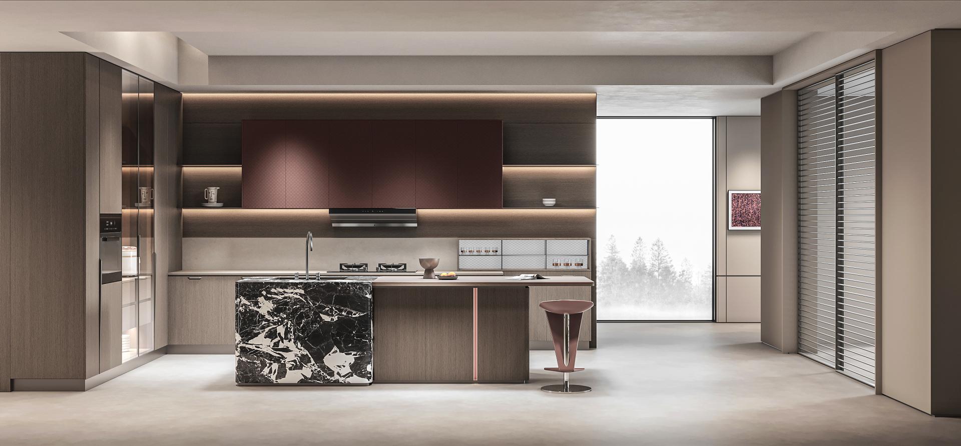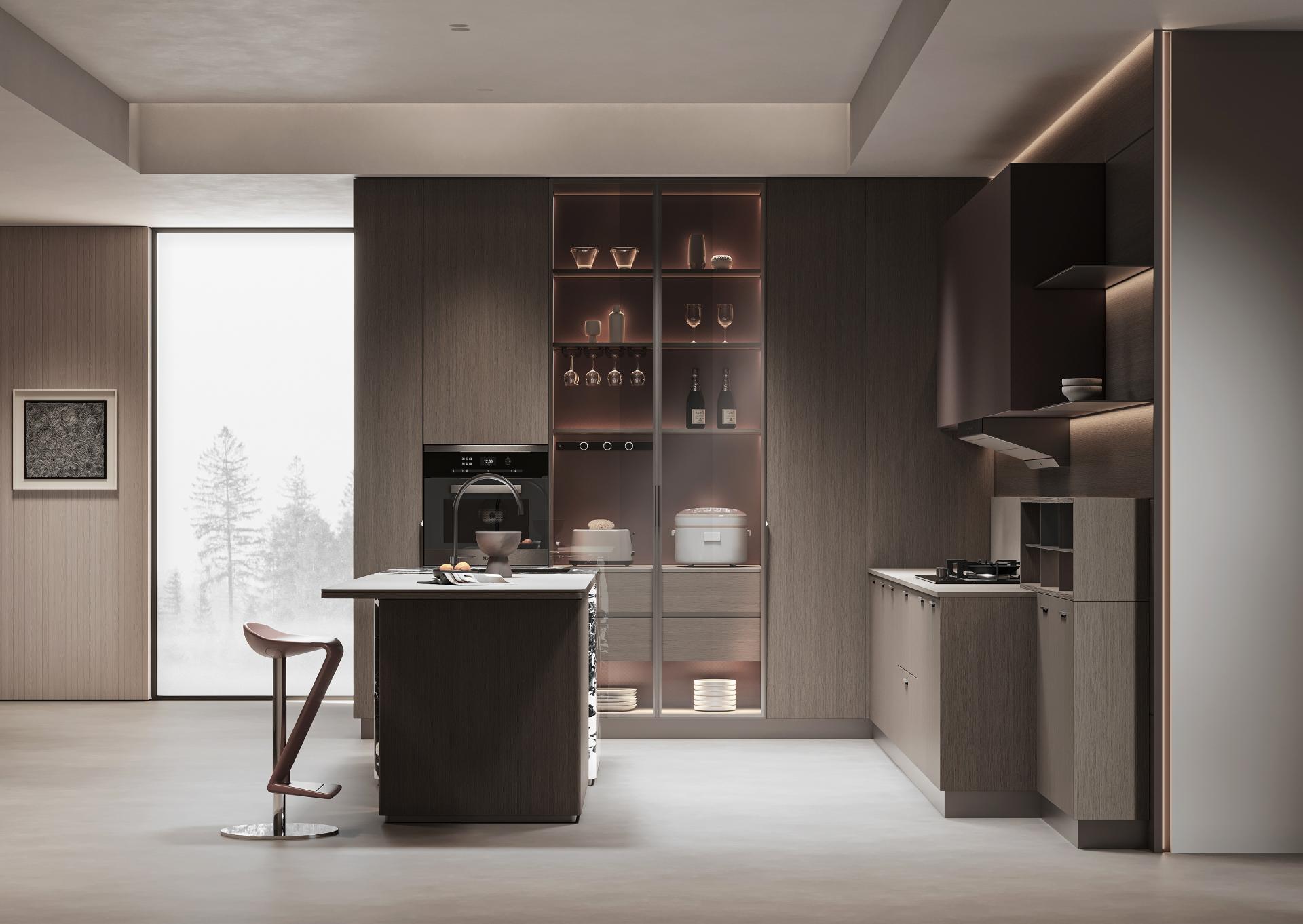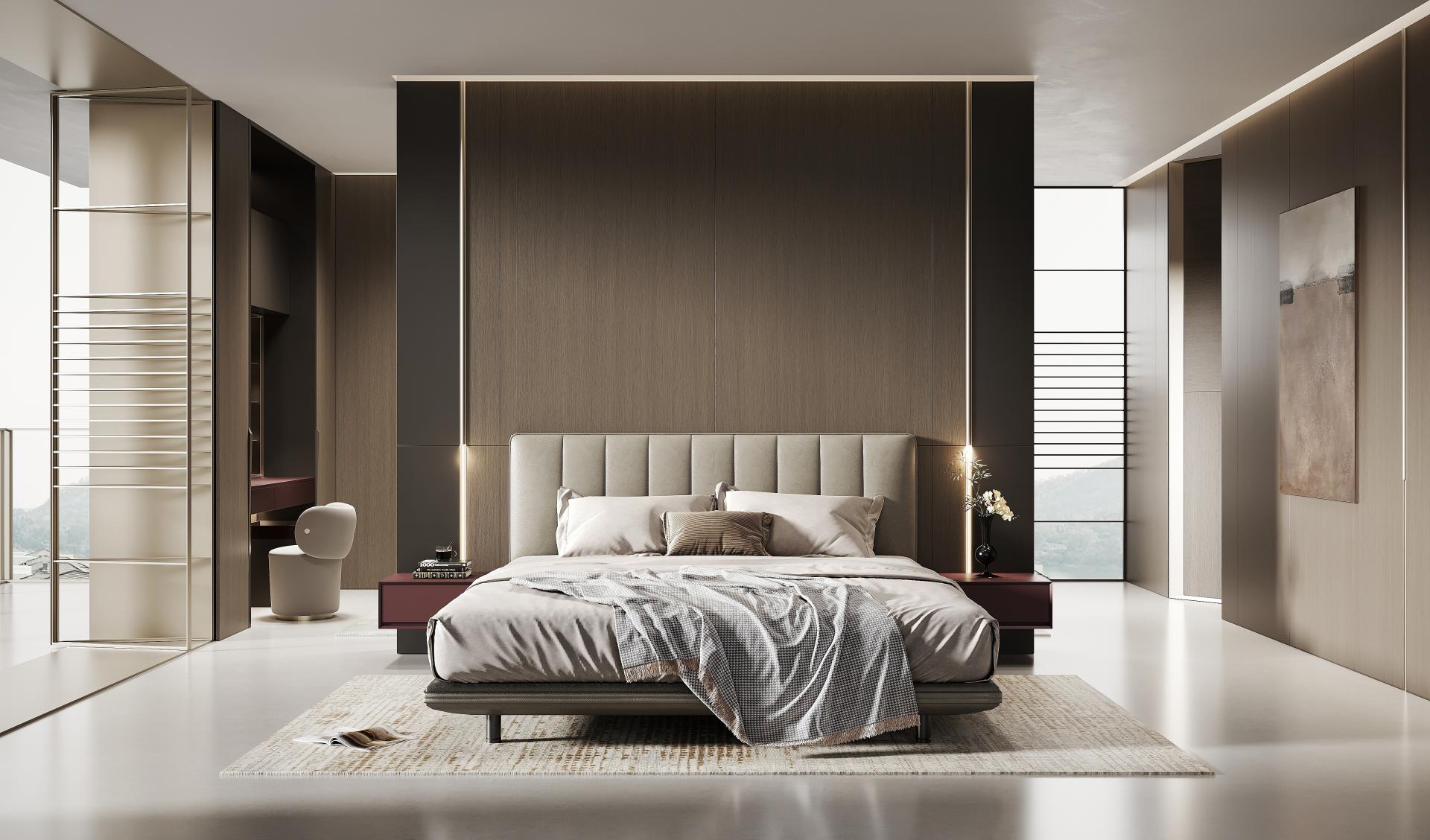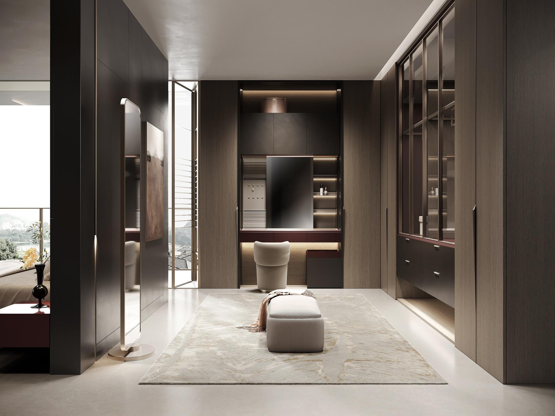 The JuYao series is meticulously designed for contemporary urban youth, with inspiration drawn from in-depth research into their living needs. In contrast to the "decluttering" philosophy of traditional minimalist design, this work introduces a new concept of "Inner Minimalism"—imbuing spaces with warmth and personality while maintaining visual order. It achieves a more emotionally nuanced balance through a harmonious combination of deep gray, warm wood, and metallic red. This design distinguishes itself from the starkness and detachment often associated with conventional minimalism, emphasizing instead the psychological comfort and spiritual resonance of the inhabitants. JuYao's formal language is centered on "restraint and contrast." The deep gray primary color provides a sense of stability, wood grain textures add tactile warmth, and metallic "star-pattern" details give the space focal points. The overall structure employs a linear layout with hidden edges, maintaining clean vertical surfaces; simultaneously, controlled gloss levels and refined surface textures create visual depth. This design keeps the space gentle and orderly within a clean geometric framework, offering both modern appeal and compatibility with various home furnishing styles. JuYao places material innovation at the core of its design. Through the "super-matte synchronous wood grain" process, co-developed with equipment manufacturers, traditional double-sided decorative panels achieve a visual and tactile performance closely approaching high-end PET finishes—offering both a soft matte texture and a delicate skin-like feel. This technology effectively elevates the perceived quality and expressive power of conventional materials, striking a balance between cost control and aesthetic experience, and giving the space a higher degree of recognition and modernity. The entire JuYao series uses ENF-grade environmentally friendly particleboard and OSB substrates, ensuring low formaldehyde emissions and safeguarding residential health. Its innovative, highly durable finishes offer properties such as wear resistance, scratch resistance, and anti-fingerprint, significantly extending product lifespan and reducing replacement and maintenance frequency. The production process utilizes pressed laminates instead of traditional spray painting, effectively avoiding VOC emissions and achieving a more energy-efficient and environmentally friendly manufacturing process. Through scientific material selection and refined process control, JuYao is committed to creating healthy, safe, and environmentally friendly sustainable living spaces.