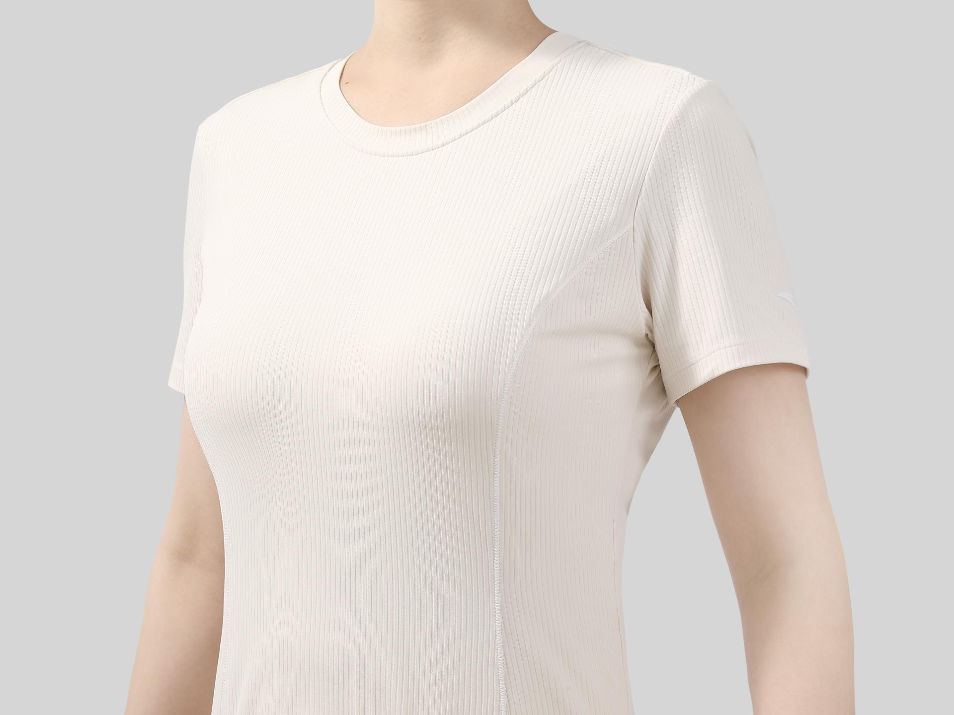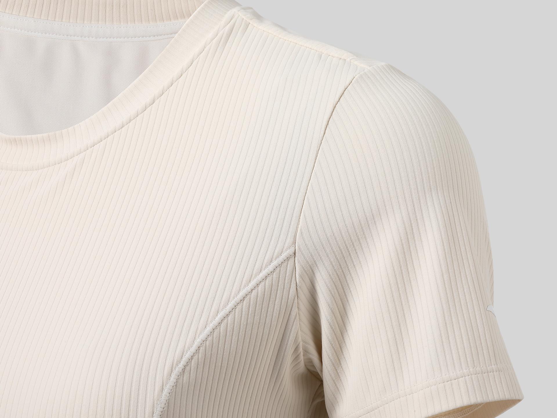The product conveys the charm of Eastern aesthetics. Drawing inspiration from upright and resilient bamboos, SculptLIte T-shirt incorporates a vertical ribbed texture, suggesting the powerful inner strength and resilient spirit of women. It also pays meticulous attention to structural innovation: the smile-curve design on the front hem subtly conceals the abdomen and raises the waistline; the seamless adhesive dispensing process instead of traditional elastic bands avoids deep indentations; the zoning design provides targeted compression to facilitate precise body sculpting; the ‘inner-tight, outer-loose’ dual-layer structure prevents an overly tight look, and gently wraps abdominal muscles to minimize vibration-induced damage during movement. In addition, the T-shirt strictly adheres to the principles of sustainability: it utilizes the A-PureDefense™ eco-friendly antibacterial material to inhibit odor-causing bacteria, greatly lowering the frequency of washing; the application of the naturally degradable fibers contributes to 100% carbon neutrality; the versatile product effectively eliminates the need of redundant clothing.