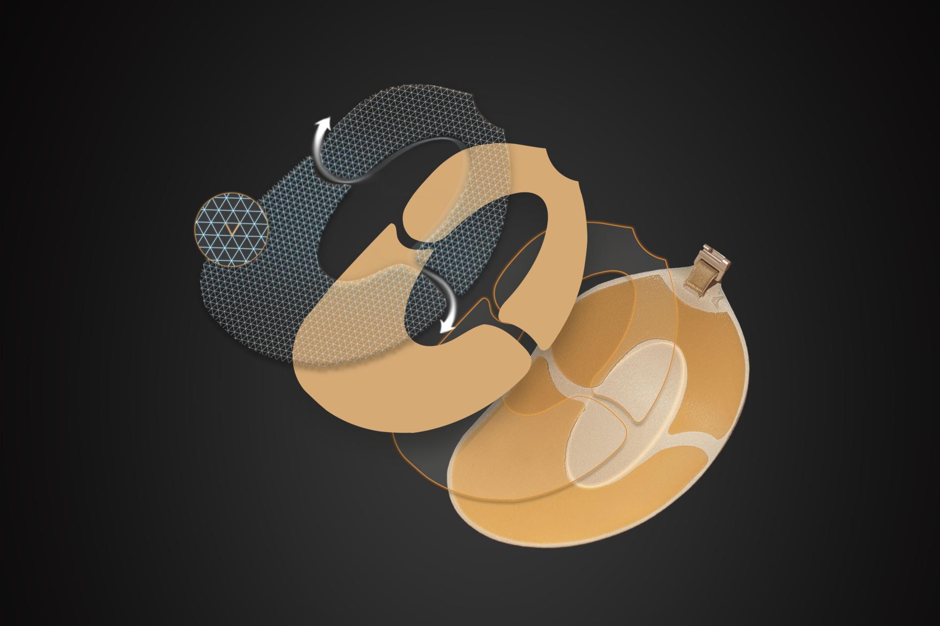 Inspired by the attract-and-release mechanism of magnets, the design replaces conventional full-surface adhesive with a Double-U Segmented Magnet-Inspired Adhesion Structure. Together with a dedicated Sweat Drainage Channel, it enables dynamic breathability and secure adhesion even during heat and motion—a second-skin experience that moves freely with the body.