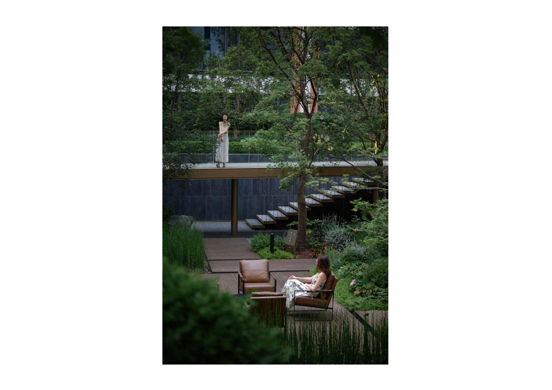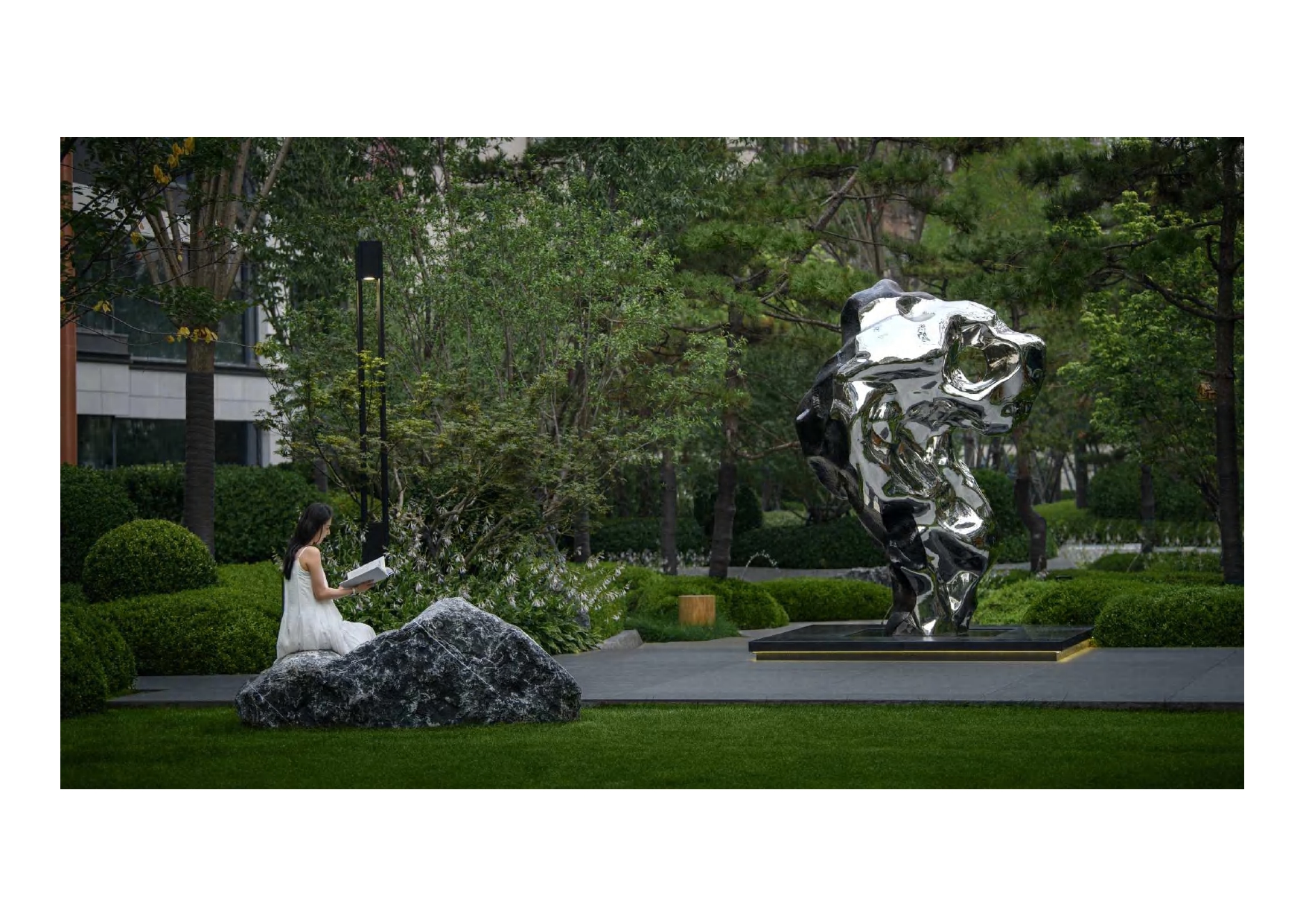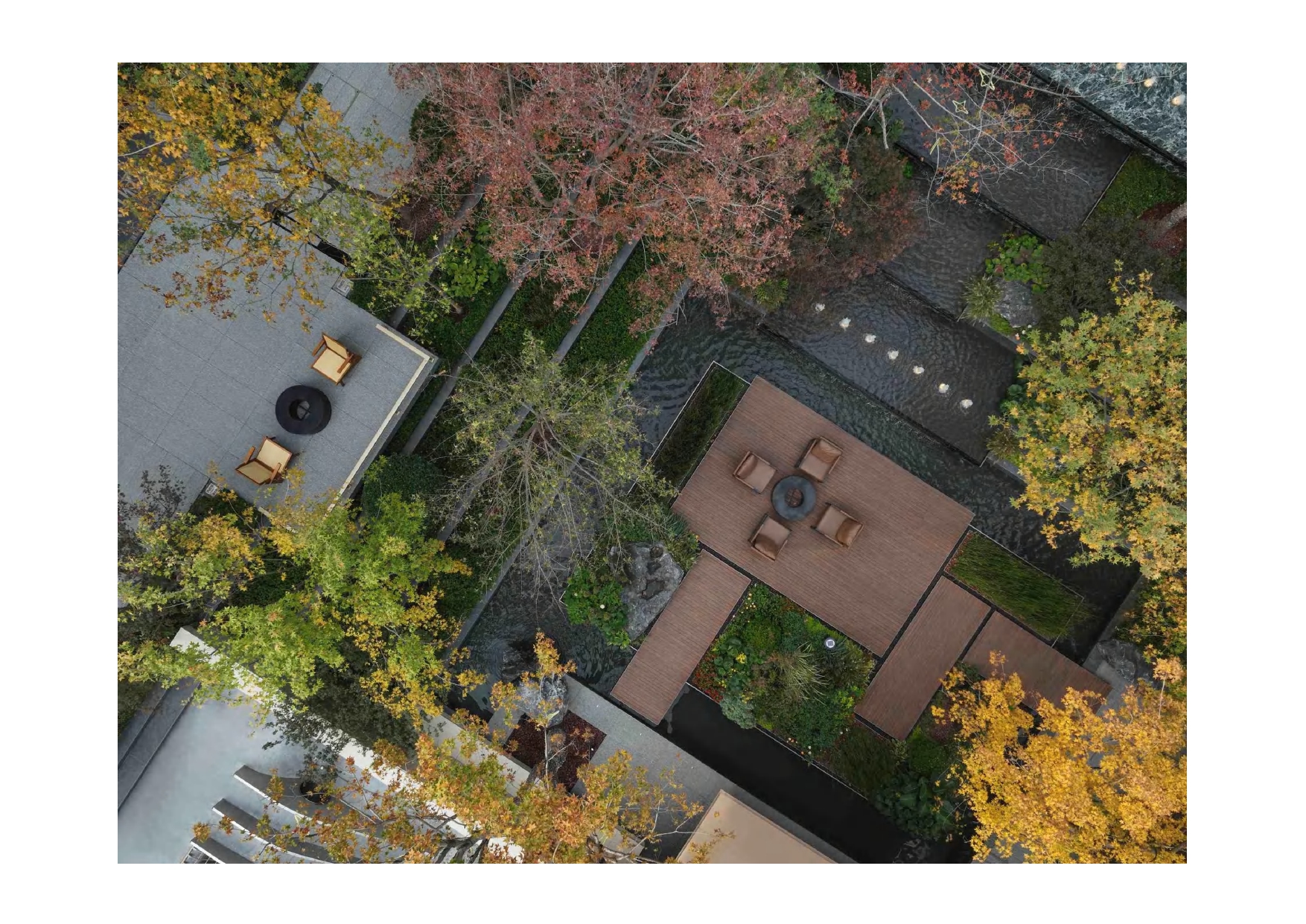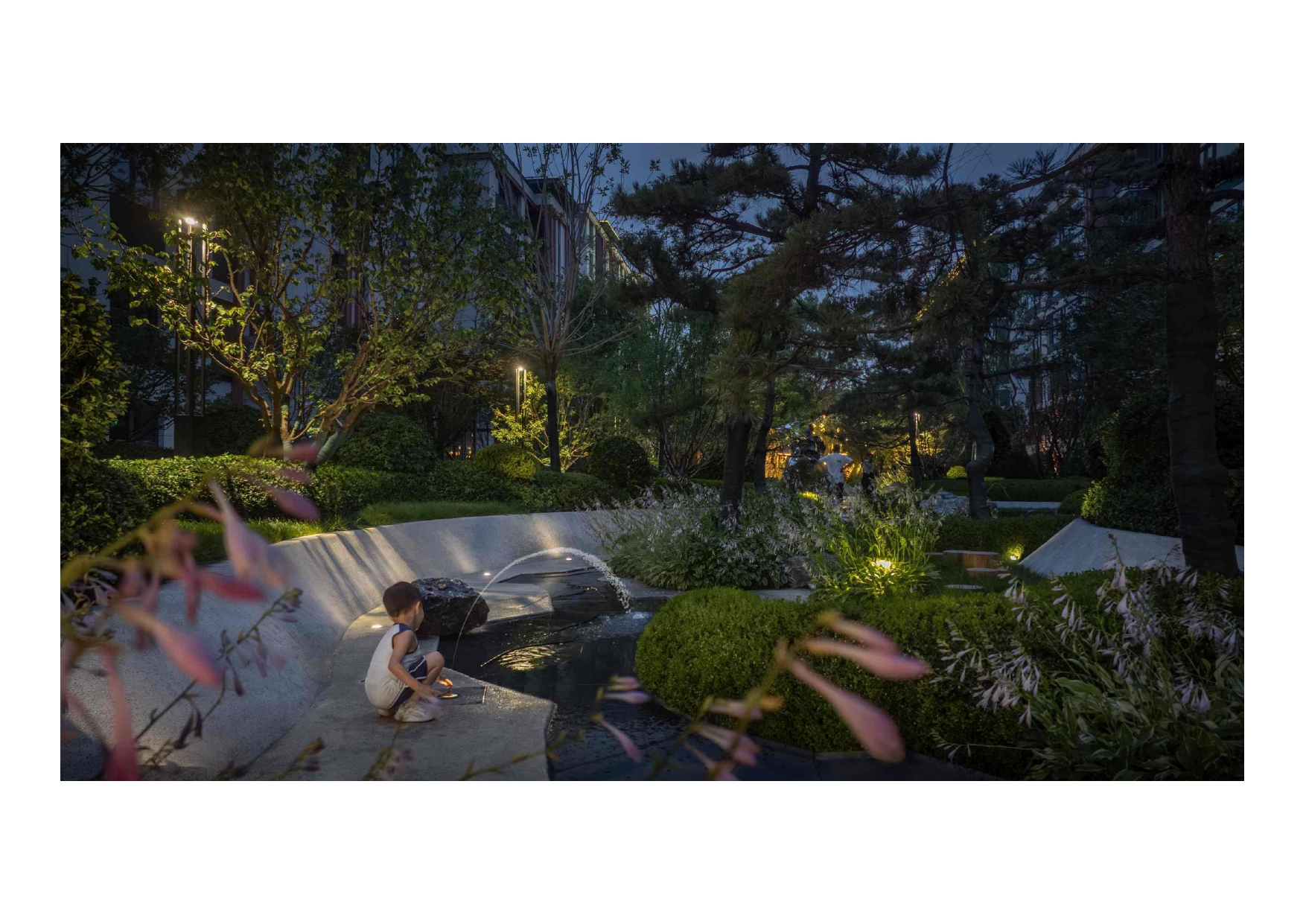 唐山臻如府的景观设计将此次旅程构思为一场穿越古典园林的现代之旅。我们汲取传统造园手法,精心策划每一处转角与回眸的风景。游走其间,步移景异,形成层次无比丰富的立体式游园体验。尤为巧妙的是,在场地本身无显著高差的条件下,我们创新性地运用“向下延伸”的塑造手法,打破平面的单调。这不仅在竖向维度上极大地丰富了空间的层次感与探索趣味,更塑造出一个承载交流、静思与自然互动的立体景观空间,使有限的场地焕发出无限的生活意趣。最终,臻如府呈现的不仅是一座园林,更是一种与自然共鸣的生活方式。它让古典美学在现代语境中重新呼吸,让每一次归家,都成为一场穿越喧嚣、回归本心的诗意巡游。