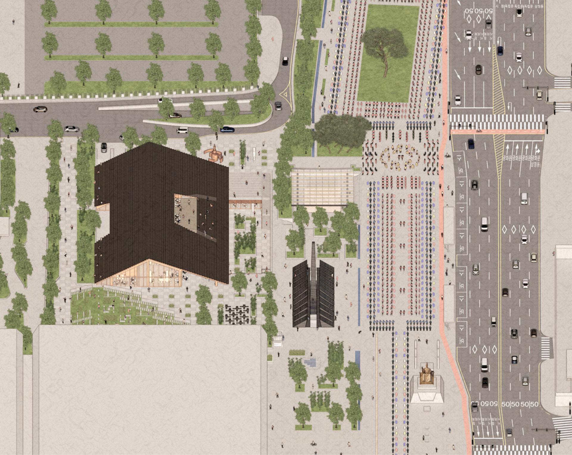 The memorial is located in front of Gyeongbokgung Palace and Gwanghwamun Gate, one of Korea’s most historic and symbolic sites. By placing the project at this prominent location, the design reinforces the cultural and historical depth of Gwanghwamun Square, creating a landmark that connects national memory with civic identity.