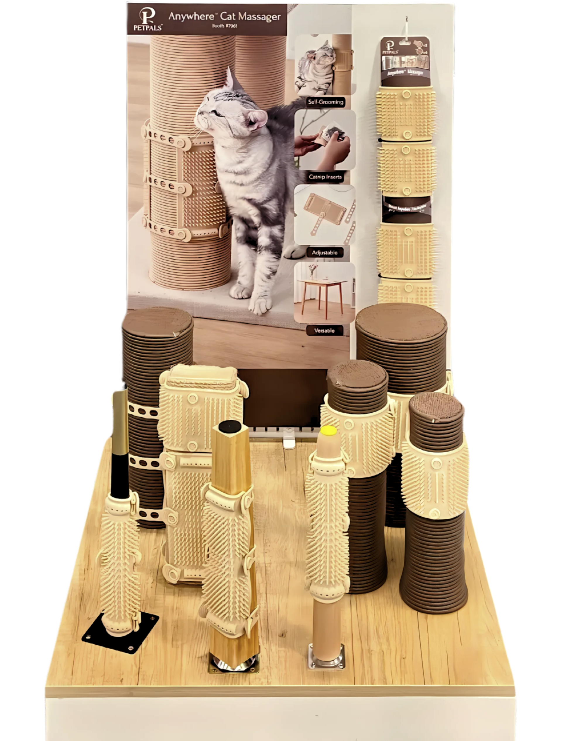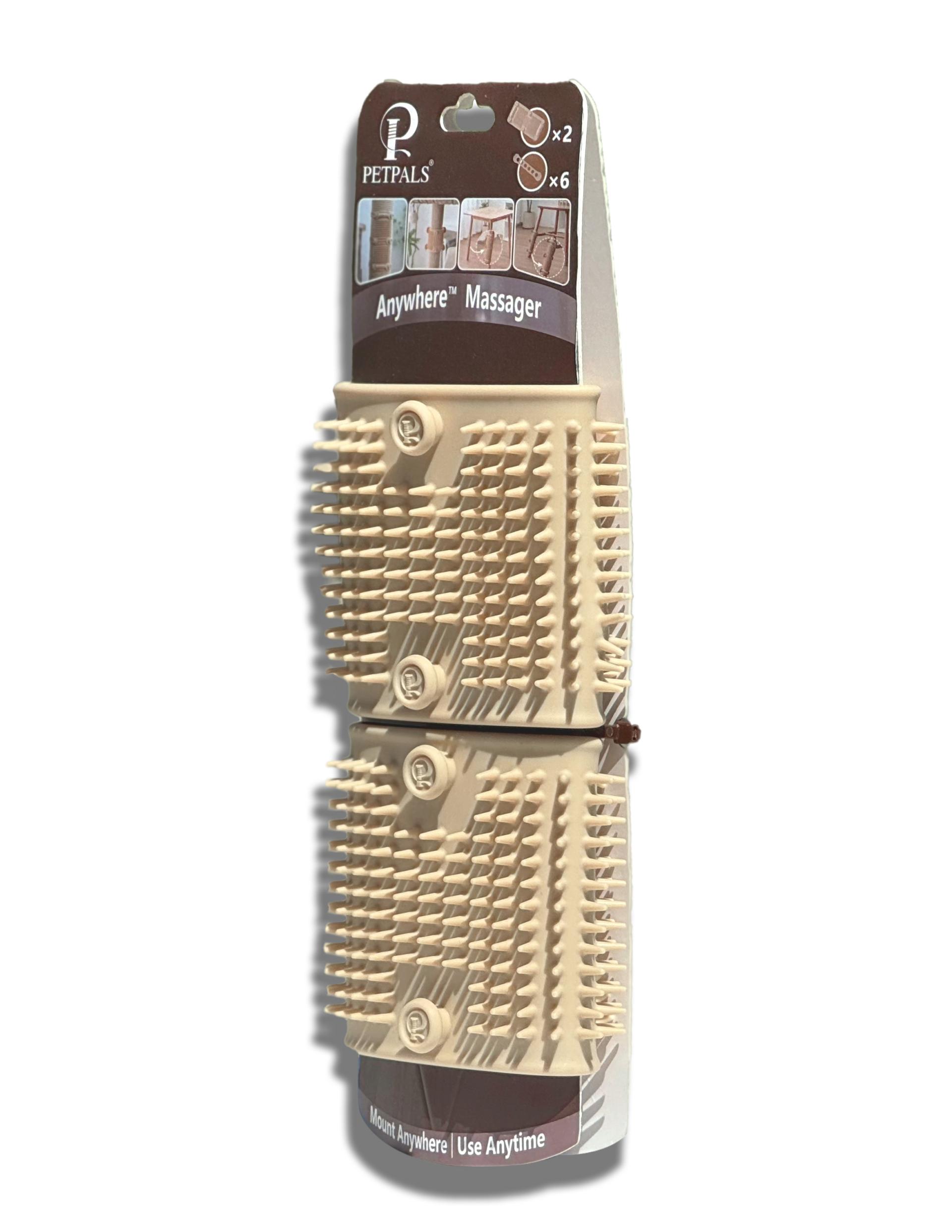 PetPals® Anywhere™ Massager gives your cat a soothing massage anytime, anywhere. Designed with flexibility in mind, this massager easily wraps around cat tree posts, scratchers, furniture legs, and more using its adjustable bands that fit a variety of shapes and sizes. Plus, catnip pockets to help encourage your cat! The Anywhere™ provides a textured surface cats can use as a licking mat. The soft silicone bristles provide gentle, comforting massages that help reduce stress, shed loose fur, and stimulate circulation for a healthier coat. An easy-to-clean accessory that's perfect for daily grooming, comfort, and relaxation—no matter where your cat likes to lounge.