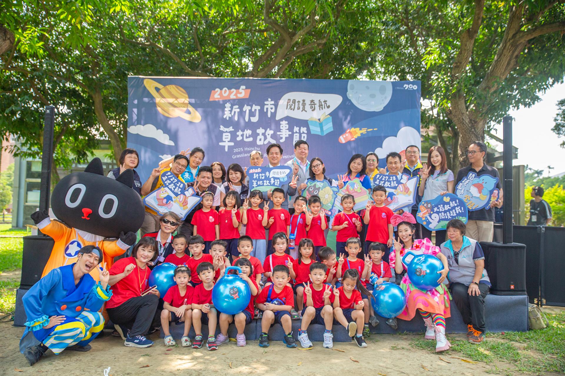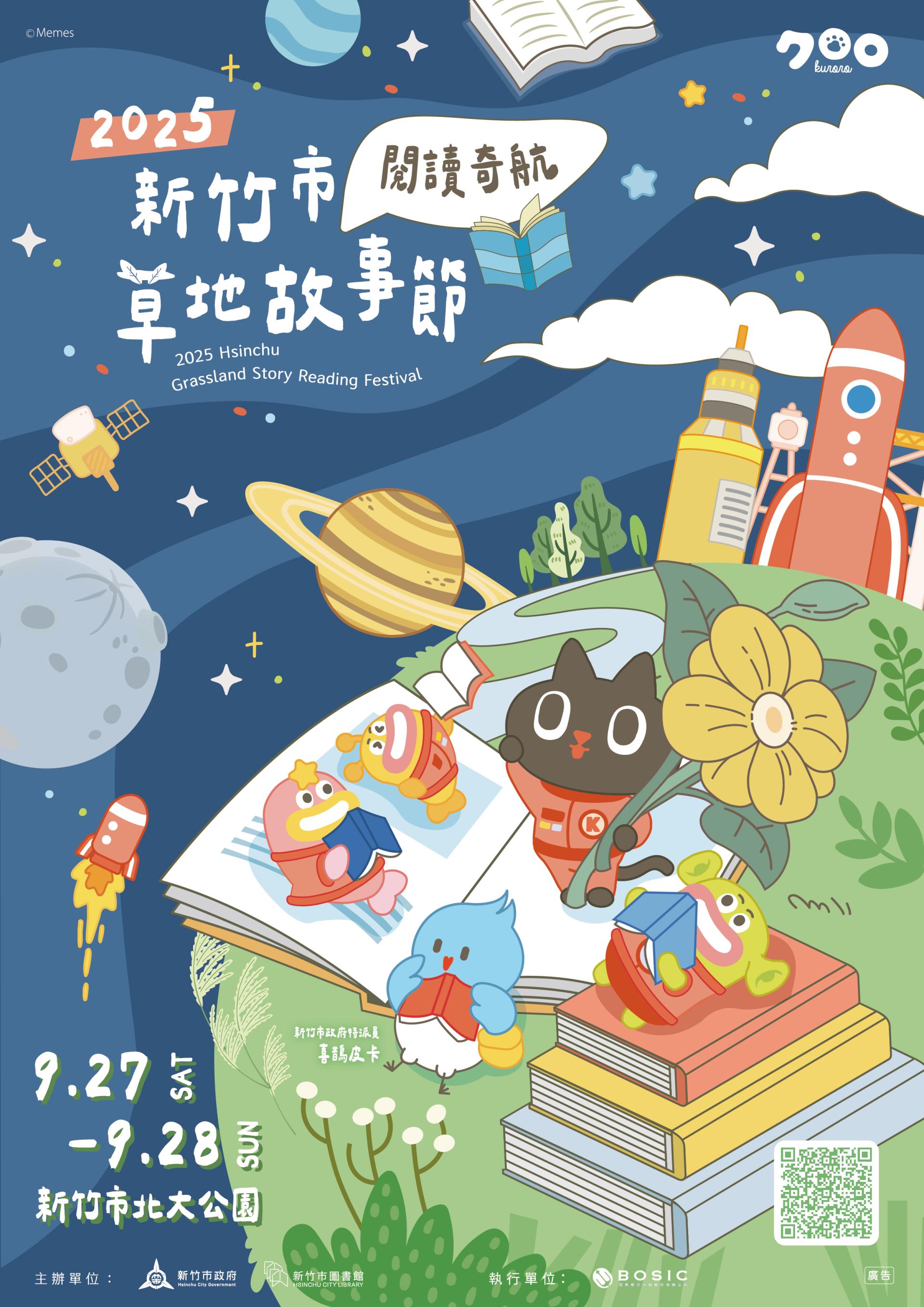 Hsinchu’s most anticipated family reading event, the 2025 Hsinchu Grassland Story Festival – “Voyage of Reading,” was held with great enthusiasm on September 27–28. Centered on the theme “Technology × Reading,” the festival collaborated with the beloved Taiwanese original IP character “Space Cat Kuroro.” The event presented a diverse program featuring stage performances, themed story houses, parent–child craft workshops, a mobile radio van, outdoor bookcases, reading missions, and a creative market.
