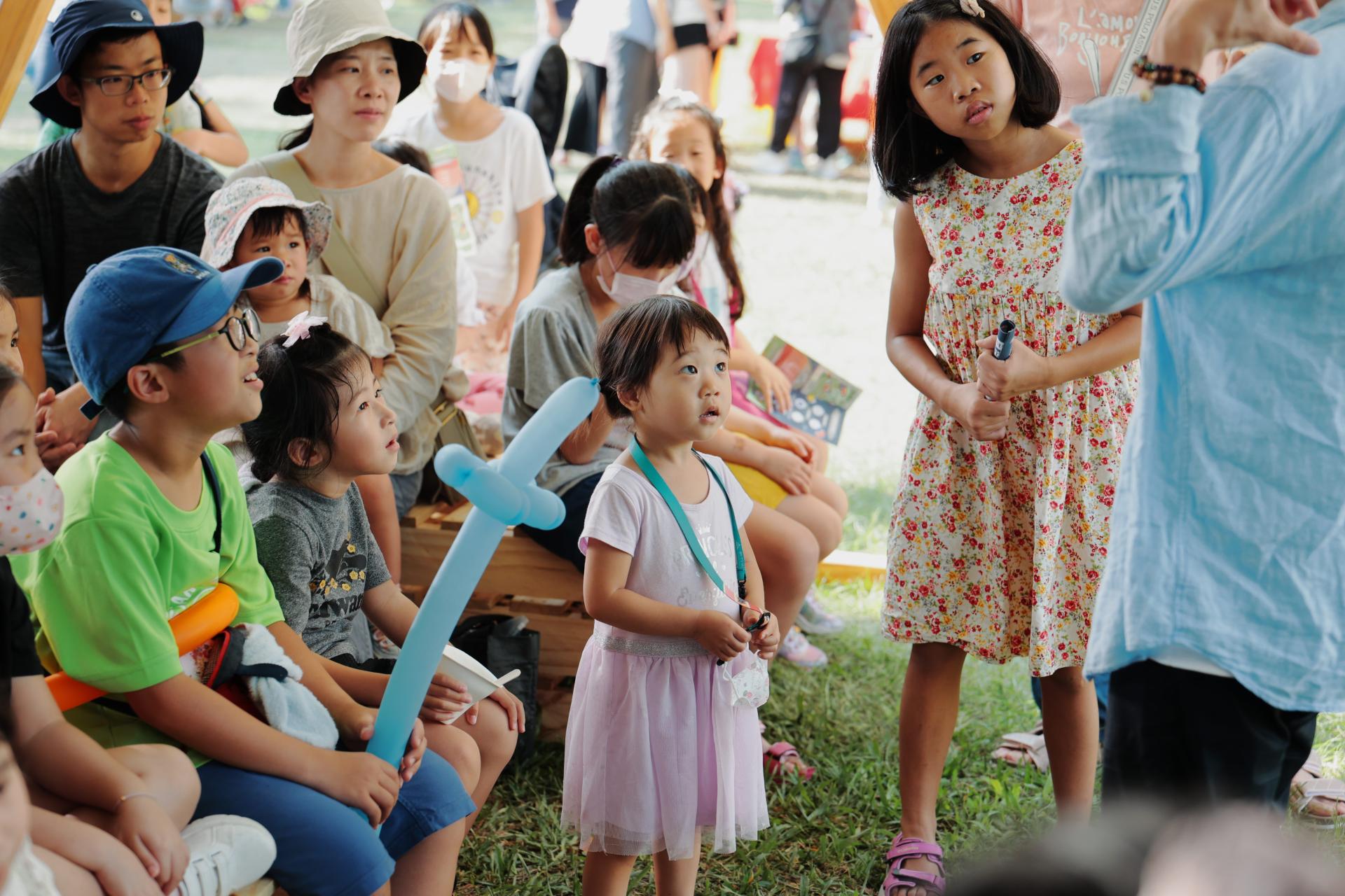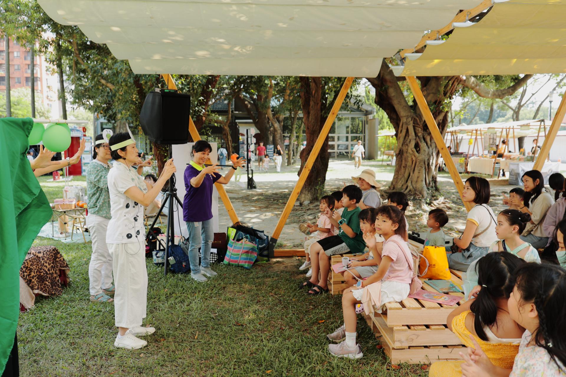 The “Planet Story Capsule” story house hosted rotating performances by groups such as the Hsinchu Storytelling Association, Open Picture Book Hall, Witch Theater, and others. Sign language–friendly sessions ensured every child could enjoy the wonder of storytelling in an inclusive environment.