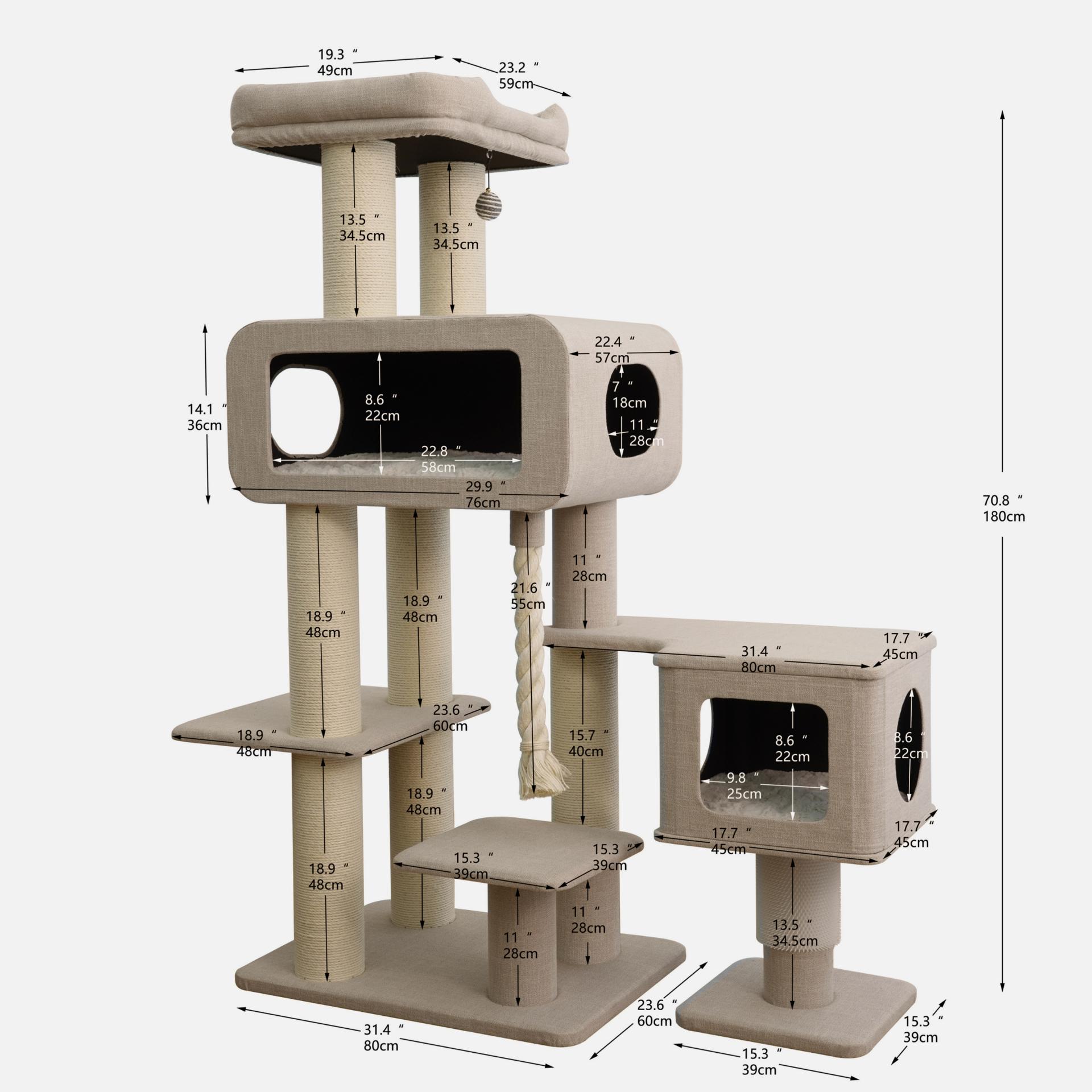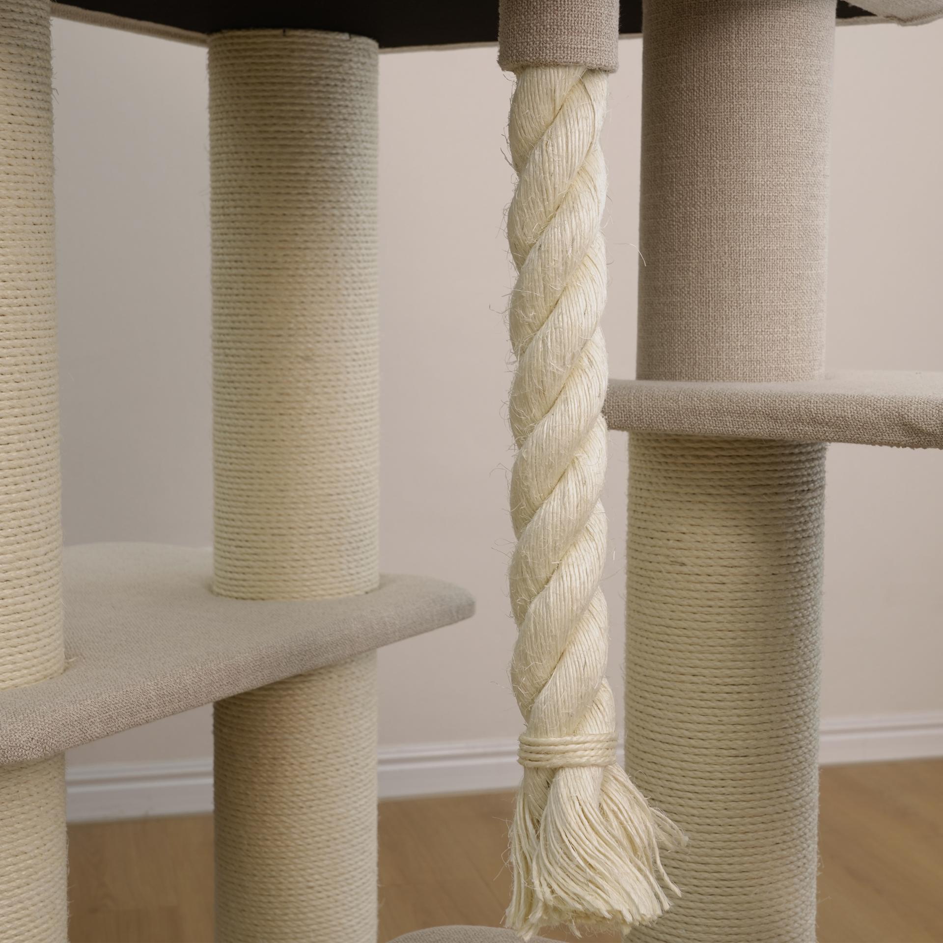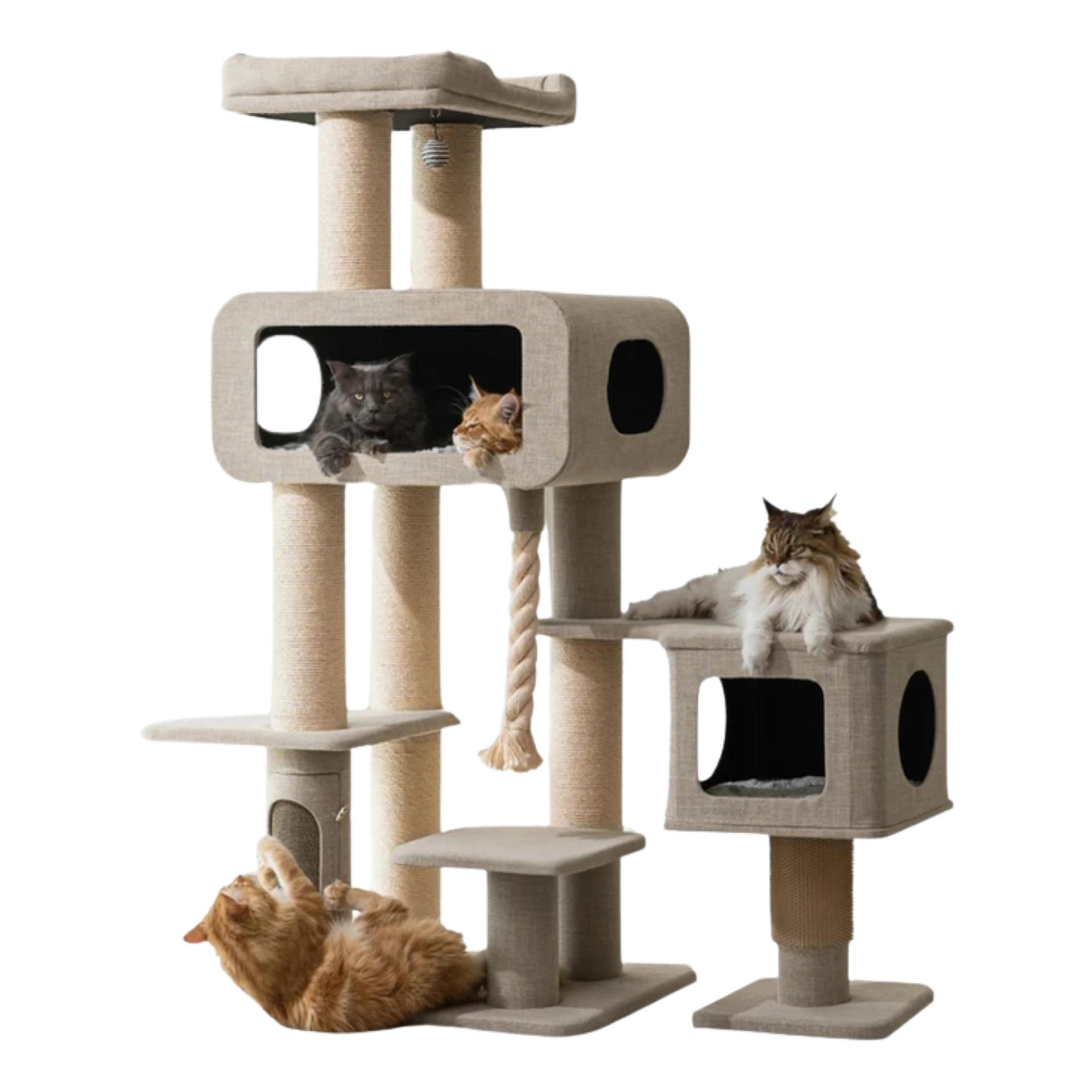 Introducing the PetPals® Ontario Grand Maine Coon™ Cat Tree, an extra-large tree built for climbing, relaxing, and stretching. Featuring six levels, a cozy hammock, a spacious condo, and six sisal scratching posts, it’s perfect for big cats and multi-cat homes. A built-in eco-scratcher lets you easily replace worn cardboard with our Eco-Scratcher refills. Crafted from sustainable materials, it offers washable beds, rose-print cushions, and an interchangeable toy and massager for endless fun. Engineered with Tuff Built™ for maximum strength and durability, this tree is part of our Big & Tall collection—designed to be the ultimate playground. With our EZ Twist™ system, you can conveniently order replacement parts to keep your tree looking and performing like new.