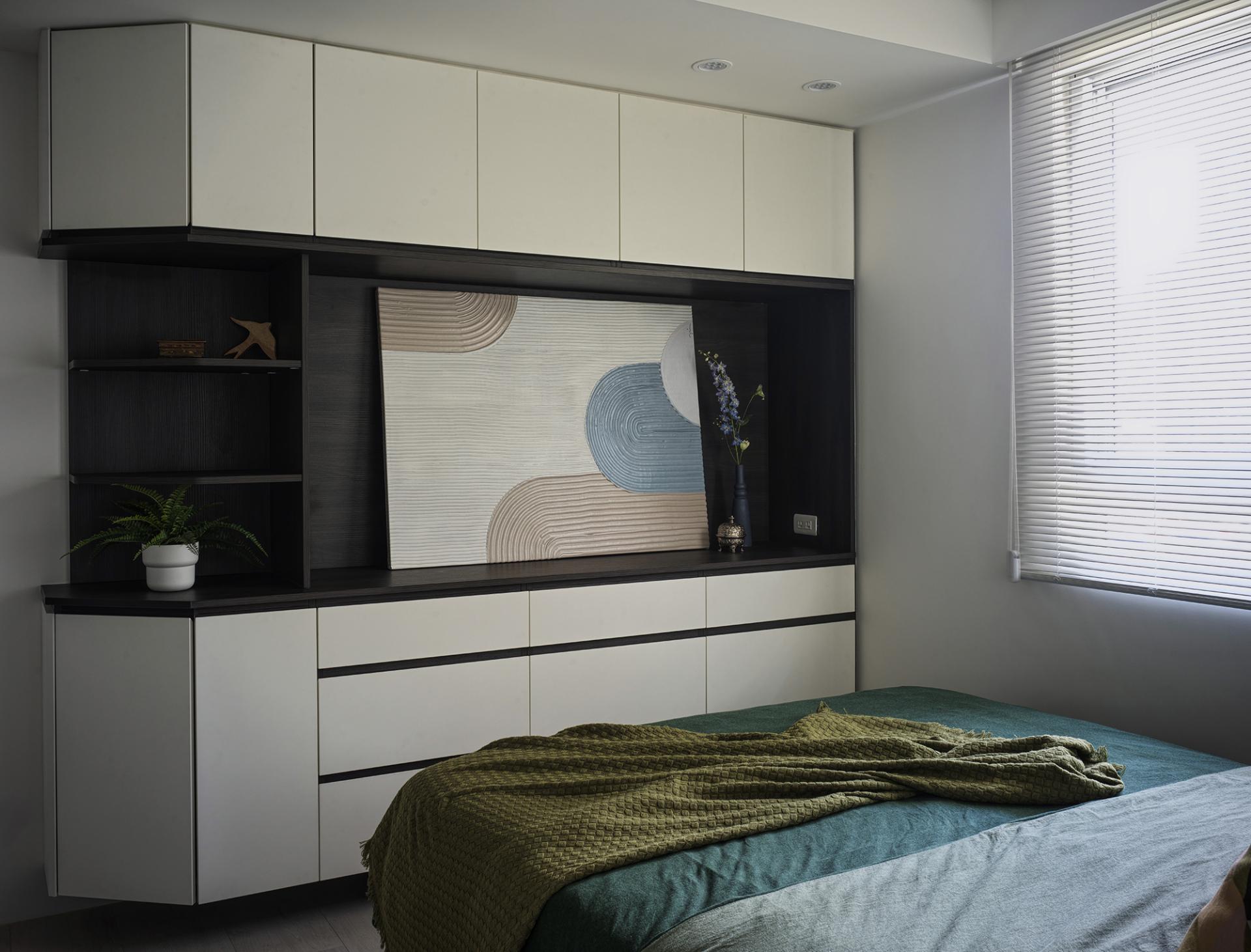 The site is a new apartment delivered after pre-sale modifications. The homeowners, who have lived abroad in the United States for many years, envisioned it as a retreat during visits to Taiwan and eventually as a retirement residence. Within a compact space, they sought ample storage, natural daylight, and a hotel-like sense of relaxation. The design team intervened during the construction phase, retaining only the electrical and plumbing points while redistributing the entire plan from empty. The core strategy was to use the concept of “between open and closed” to extend light and visual continuity. Aluminum-framed reeded glass sliding doors were installed for the master bedroom, study, and bathroom, allowing side-window daylight to enter private areas and link into the living-dining space, ensuring that the small residence remains bright and fluid.