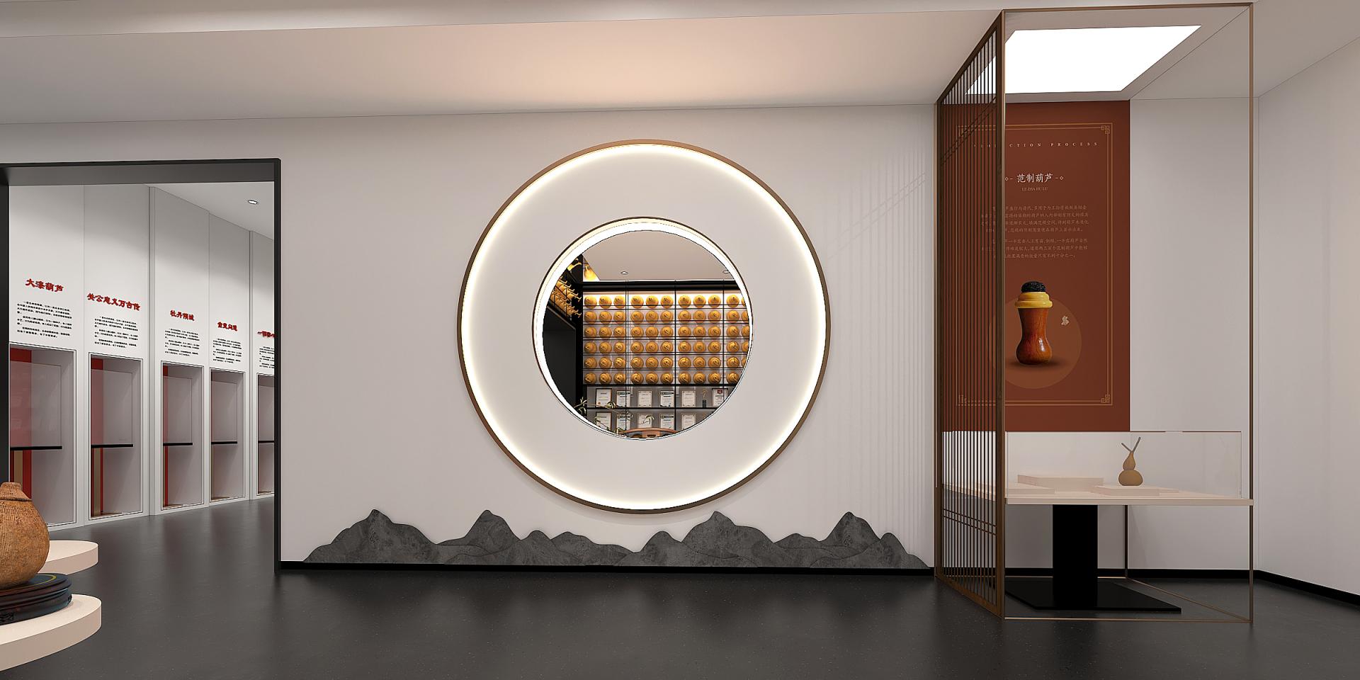 空间营造融合传统中式美学与现代展陈思维,入口处木质纵深感结构搭配 “福” 字葫芦标识、山水微塑,开篇便勾勒出自然与文化交融的意境。