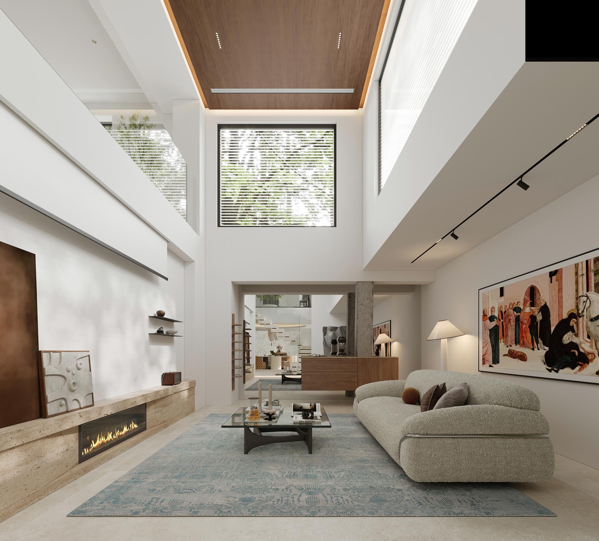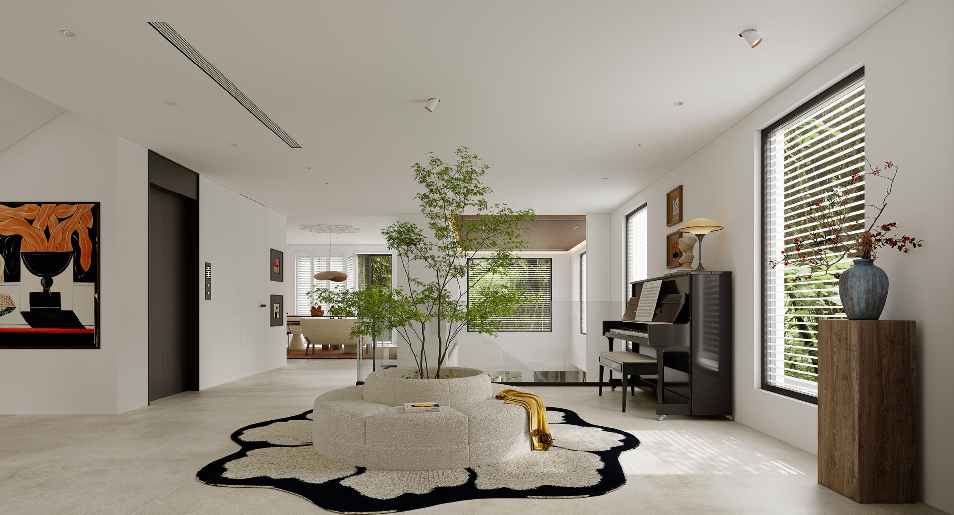 As the visual core of the space, the double-height structure not only stretches the vertical dimension to allow natural light to flow unobstructed between the upper and lower floors, but also breaks the limitation of a single plane, clearly establishing a vertical hierarchical system featuring "private rest on the upper floor - interactive socializing on the middle floor - functional bearing on the lower floor".