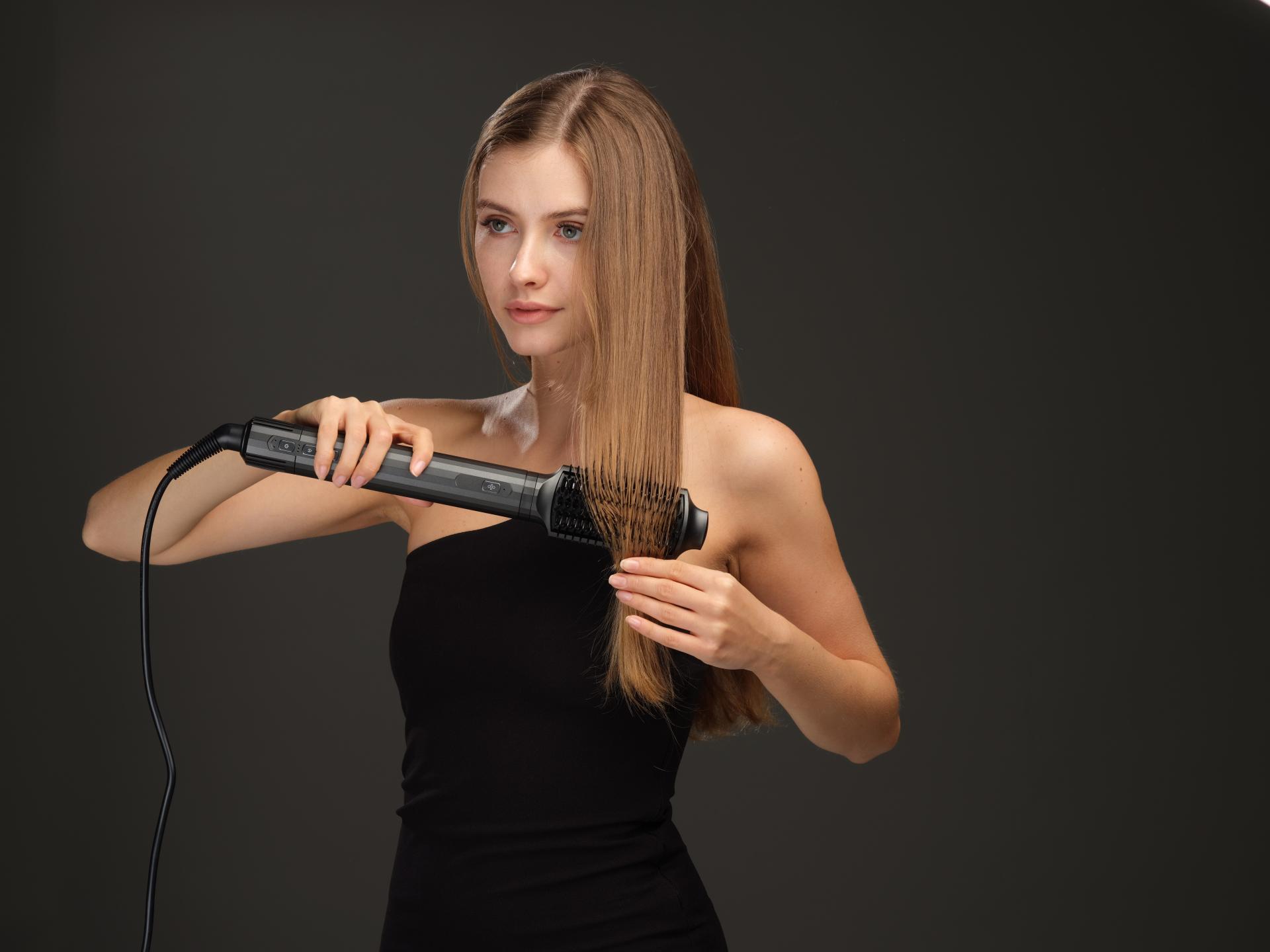GLAMUP FusionPro™ 6-in-1 Hot Air Styler is a professional-grade hot air styler, born from the "by women for women" philosophy, designed for modern women who seek both sophistication and efficiency. Equipped with a ThermaFlow™ brush, TurboBlade™ wrap curler, round brush, volumizer, concentrator, and a blowing base, it's like having your own team of dedicated stylists, catering to a variety of hair types and styling needs. Whether you want to achieve smooth and straight hair for thick, wavy, or frizzy textures; create salon-level volume for fine hair; sculpt classic beach waves and root lift, all become effortlessly attainable.