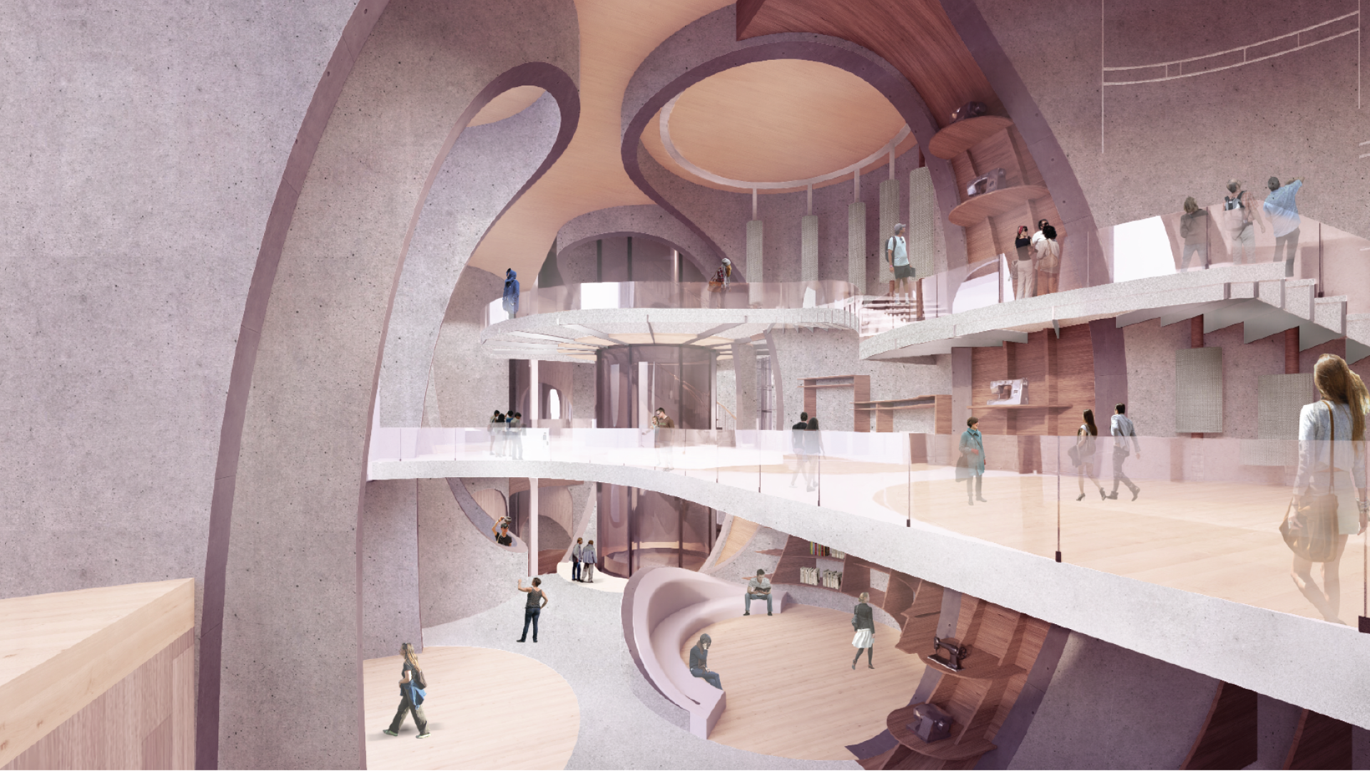 The project adopts adaptive reuse as its primary sustainable act, preserving the massive concrete silos to minimize embodied carbon. The existing structure is carved to introduce natural ventilation shafts and daylight wells, turning the once-enclosed barrels into breathable, light-filled spaces. Curved glass panels replace sections of concrete, providing transparency while maintaining insulation.