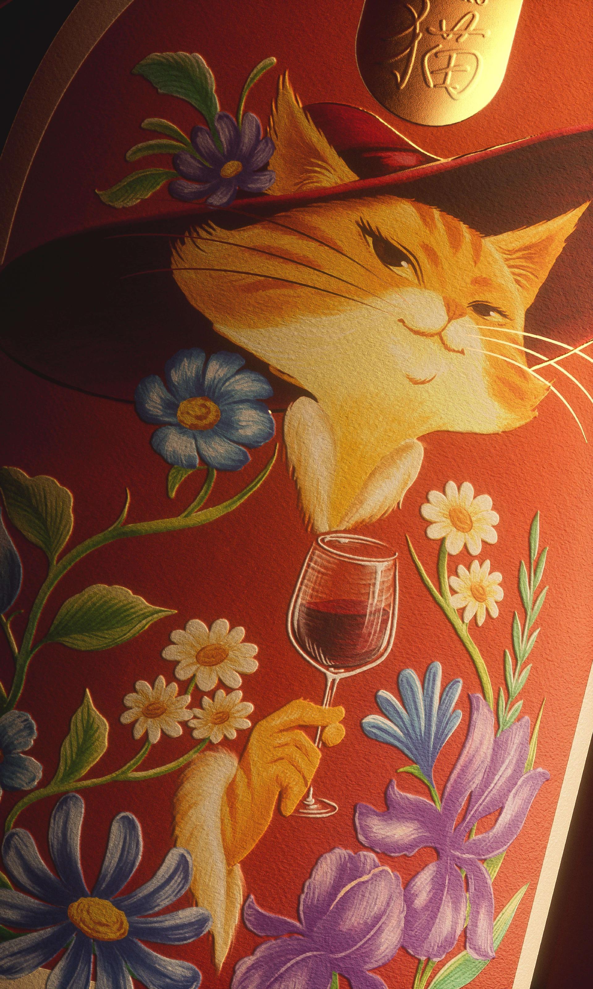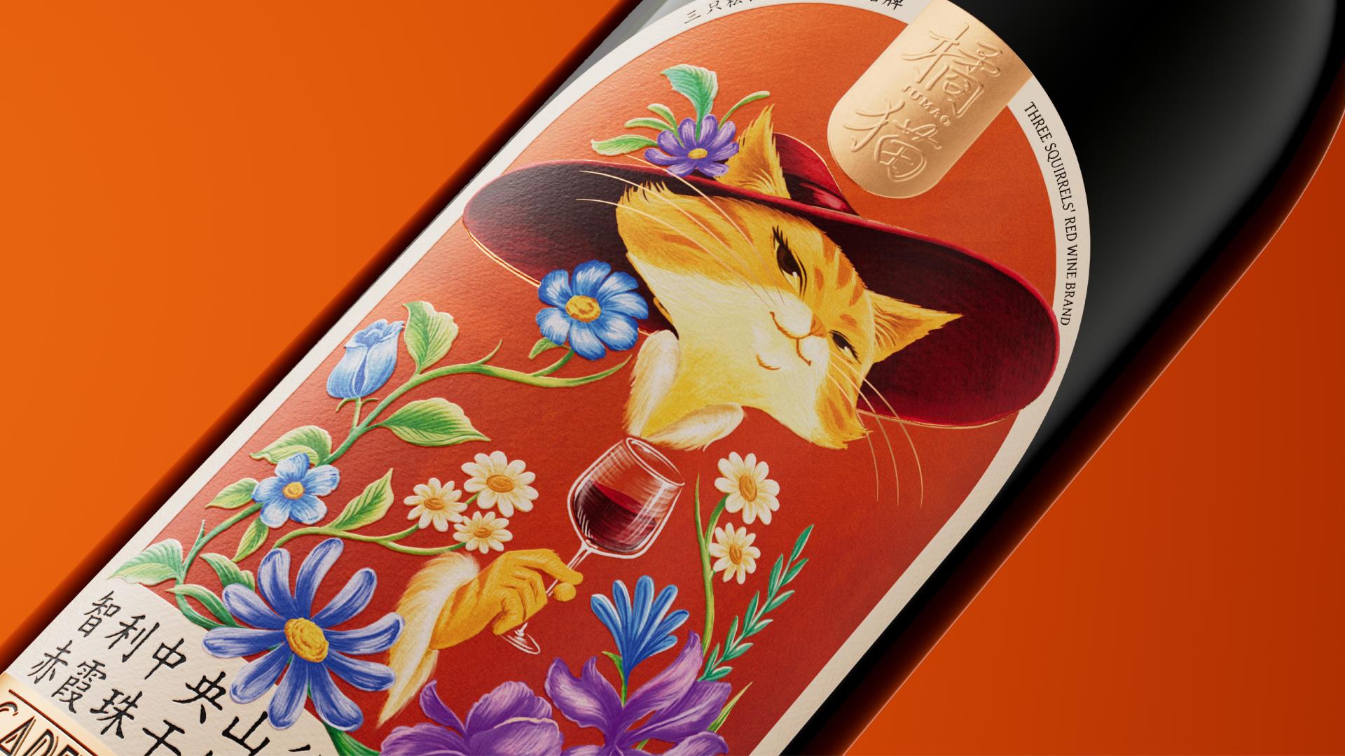 The overall design continues the youthful DNA of the Three Squirrels brand while elevating the product’s perceived value through artistic expression. It successfully creates a distinctive red wine identity that balances aesthetic sophistication with strong market differentiation, blending emotional resonance with elegant visual storytelling.