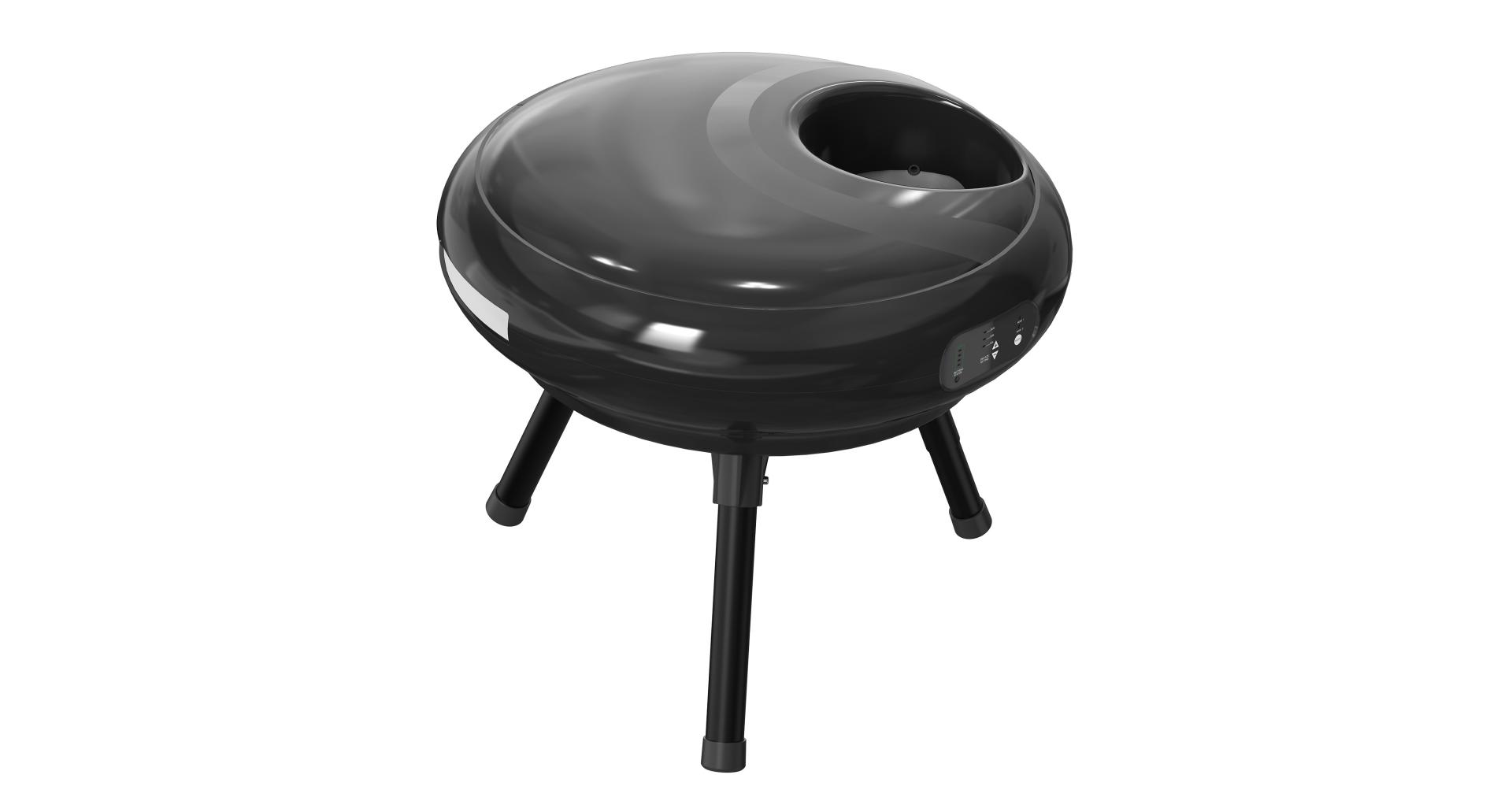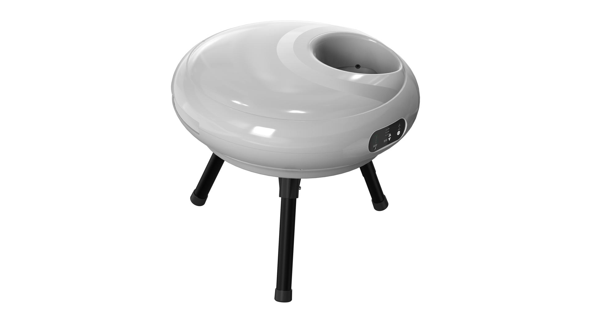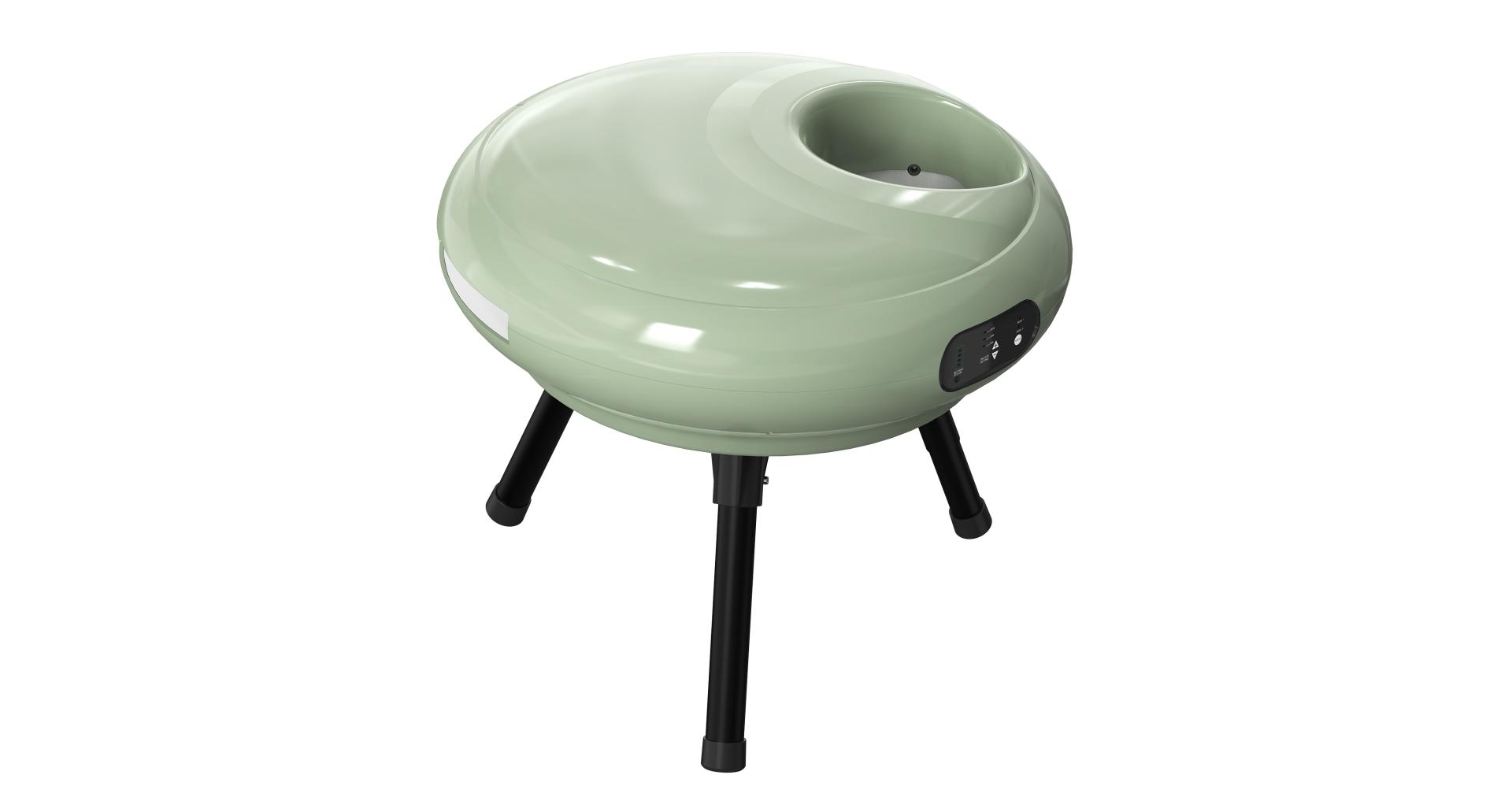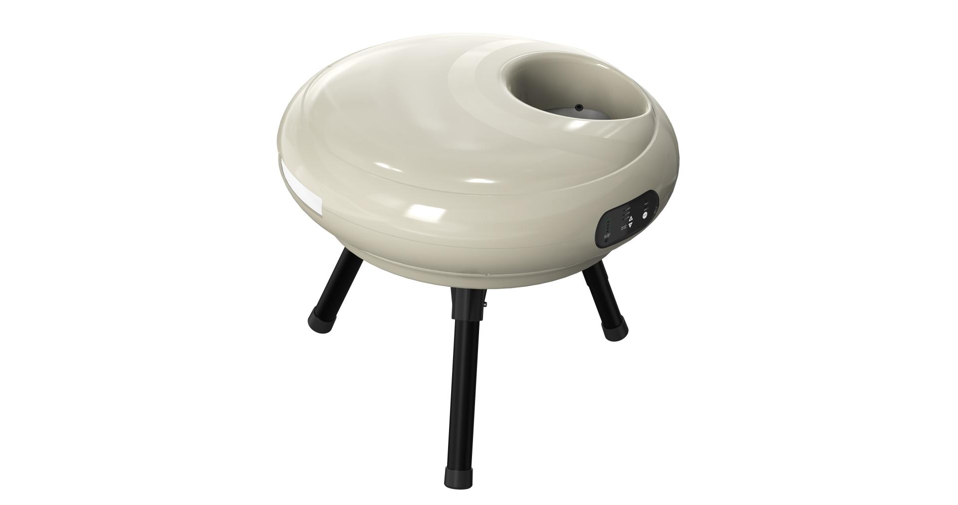 The design is simple and rounded, inspired by streamlined aerodynamic forms that balance style with technology. Multiple color options are available, paired with black foldable legs that ensure stability and easy storage. The frisbee loading port and control panel are arranged for both practicality and aesthetics. With lightweight EPP frisbees combined with an ABS shell, the overall appearance is light and dynamic.
